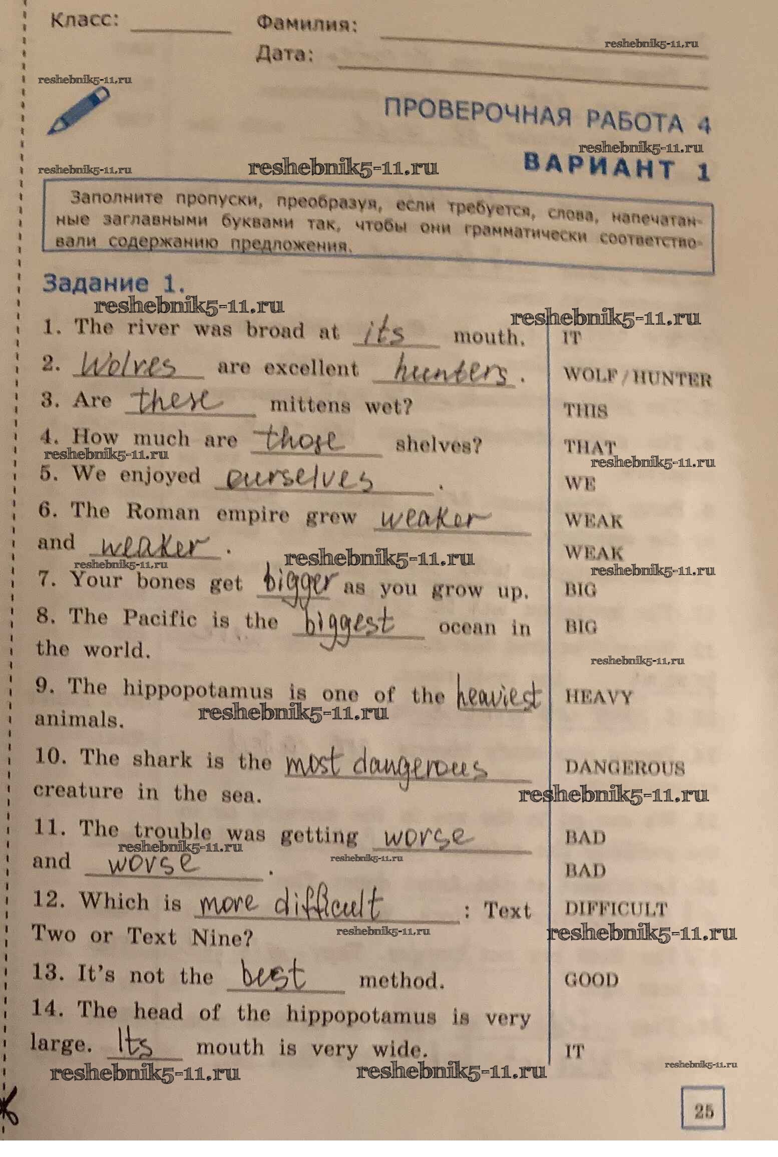 Готовая домашняя работа с ответами по Английскому языку за 6 класс Барашкова Проверочные работы УМК Экзамен 2017 ФГОС - Проверочная работа №4 вариант 1