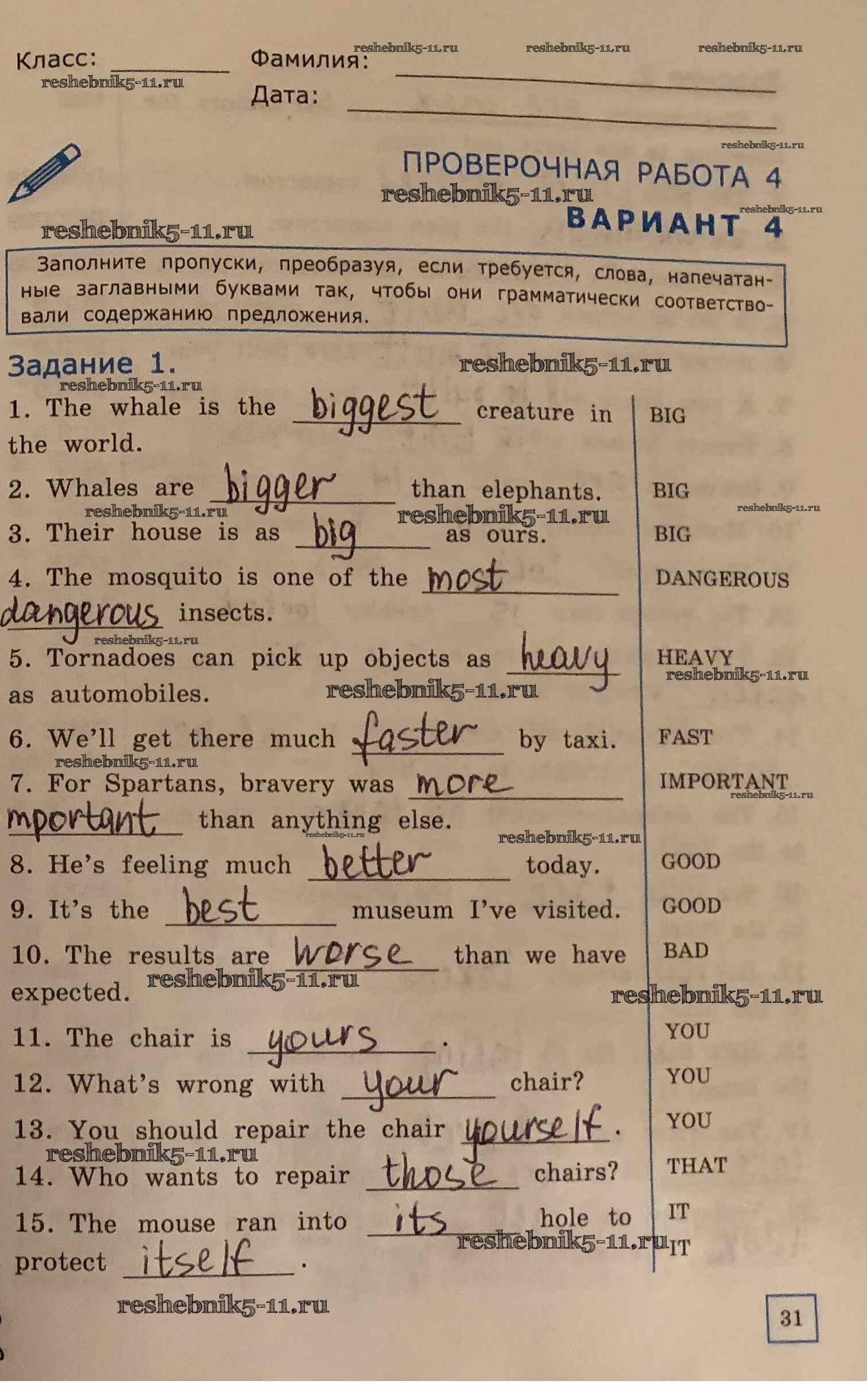 Готовая домашняя работа с ответами по Английскому языку за 6 класс Барашкова Проверочные работы УМК Экзамен 2017 ФГОС - Проверочная работа №4 вариант 4