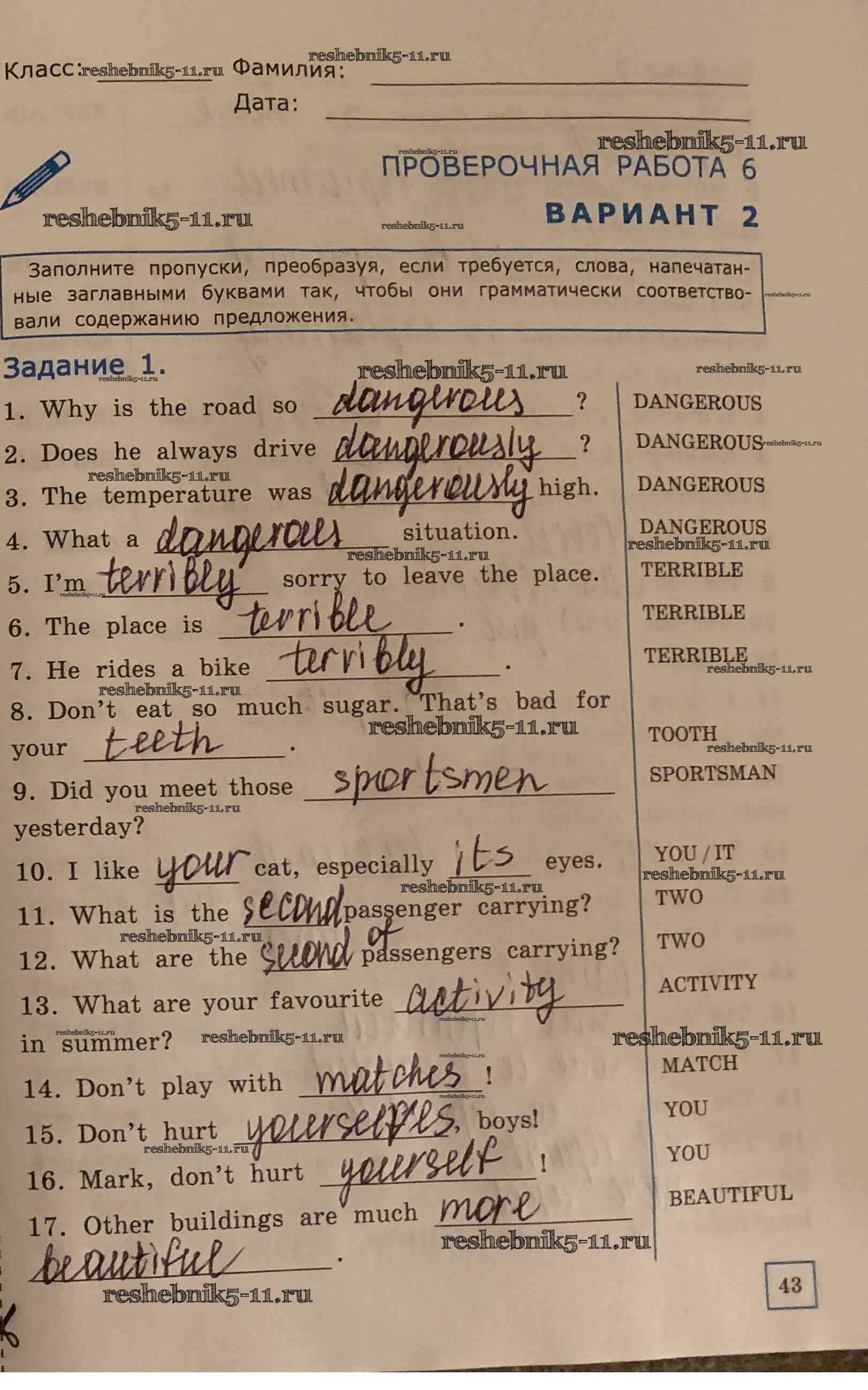 Готовая домашняя работа с ответами по Английскому языку за 6 класс Барашкова Проверочные работы УМК Экзамен 2017 ФГОС - Проверочная работа №6 вариант 2
