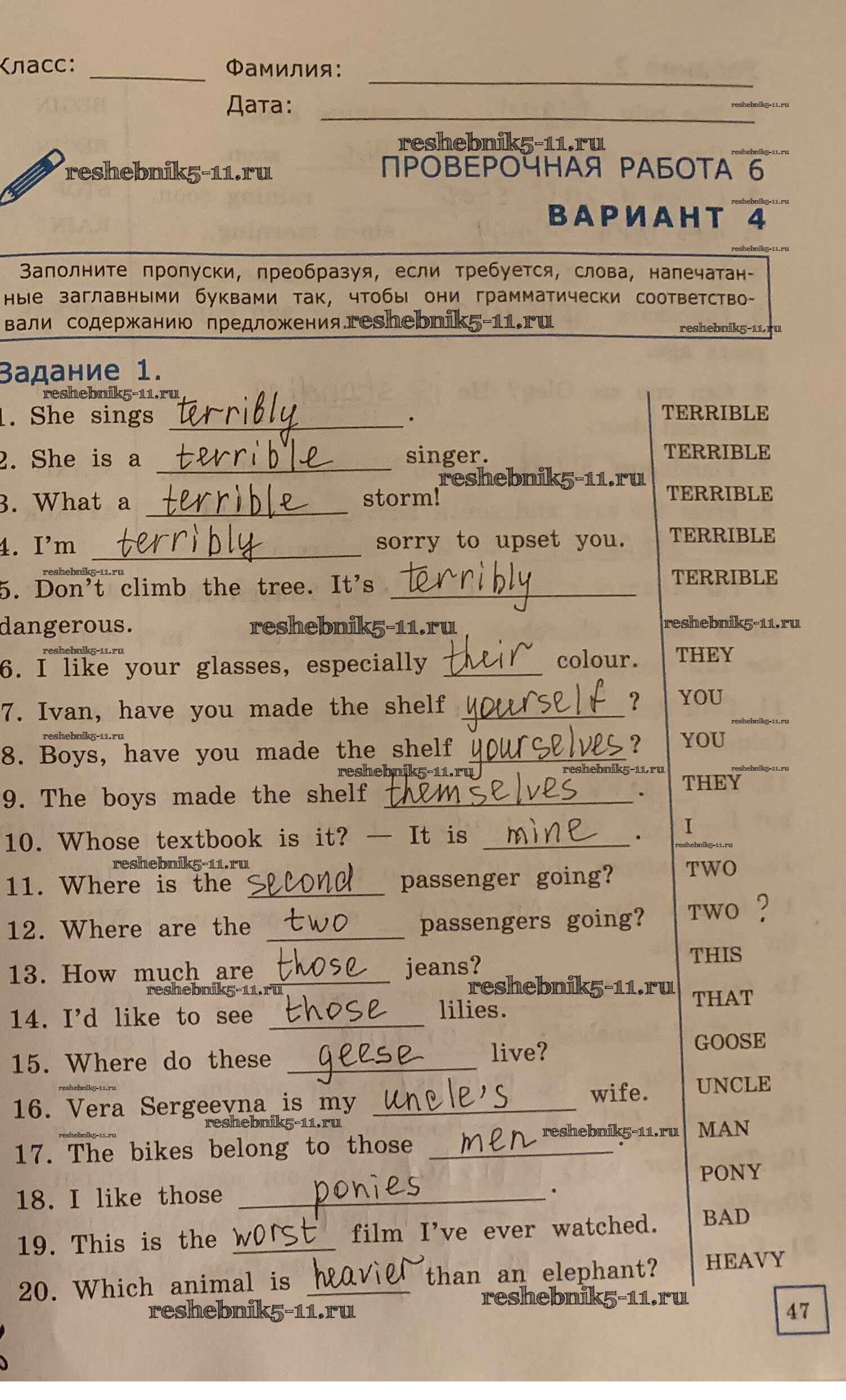 Готовая домашняя работа с ответами по Английскому языку за 6 класс Барашкова Проверочные работы УМК Экзамен 2017 ФГОС - Проверочная работа №6 вариант 4