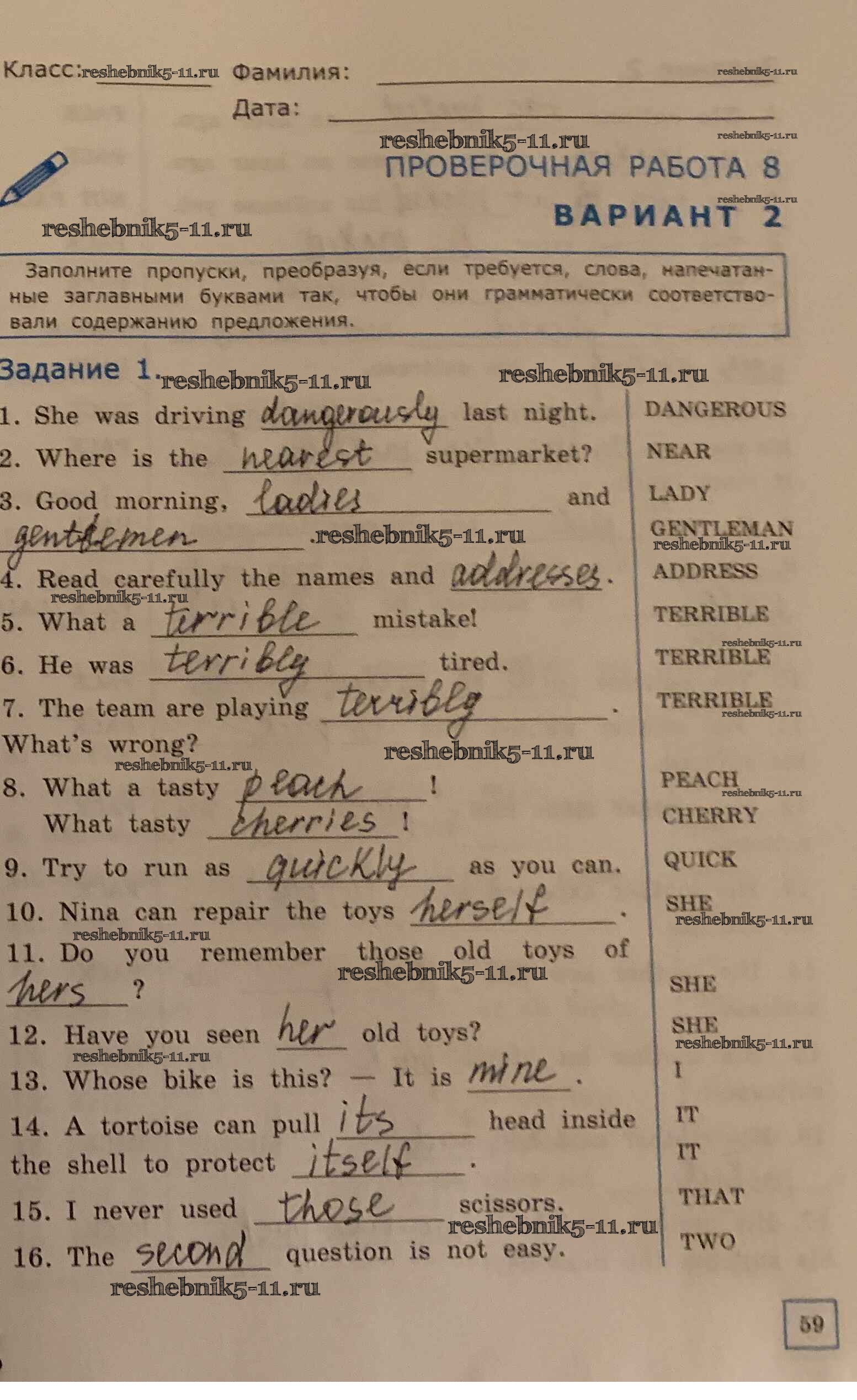 Готовая домашняя работа с ответами по Английскому языку за 6 класс Барашкова Проверочные работы УМК Экзамен 2017 ФГОС - Проверочная работа №8 вариант 2