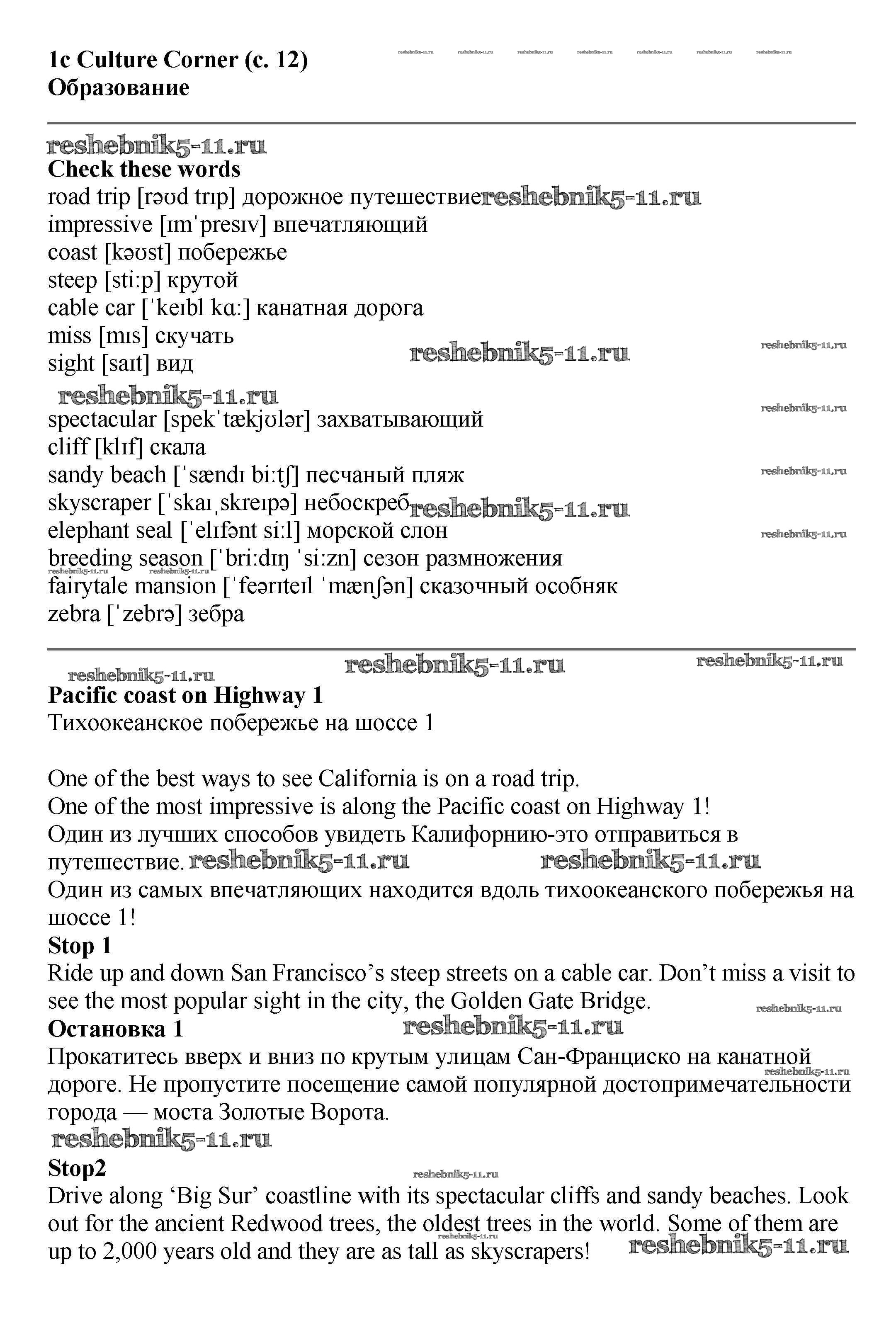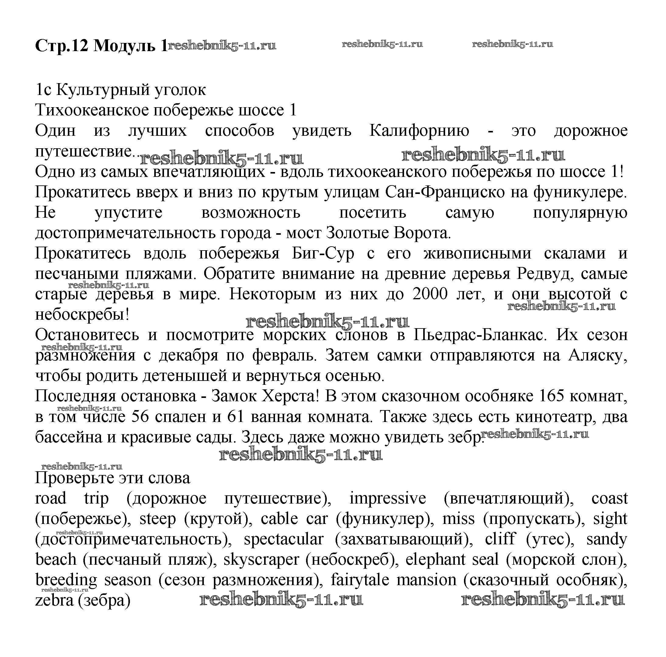 Английский язык за 6 класс Баранова Учебник Starlight Углубленный уровень Просвещение module 1 стр.12