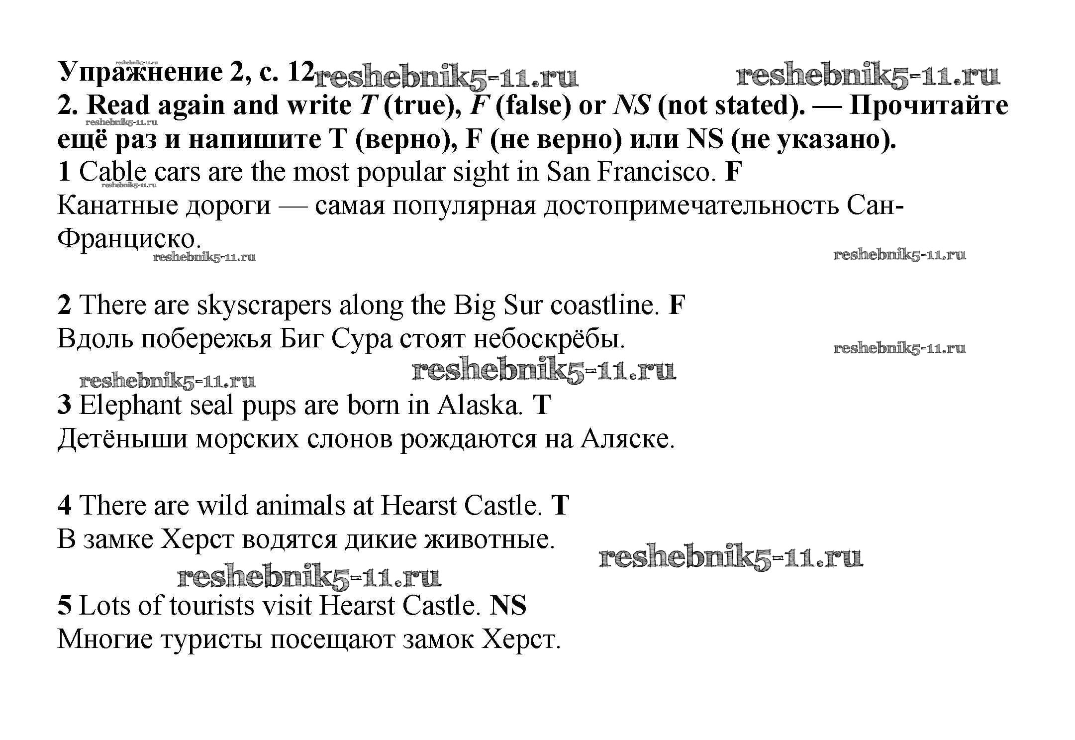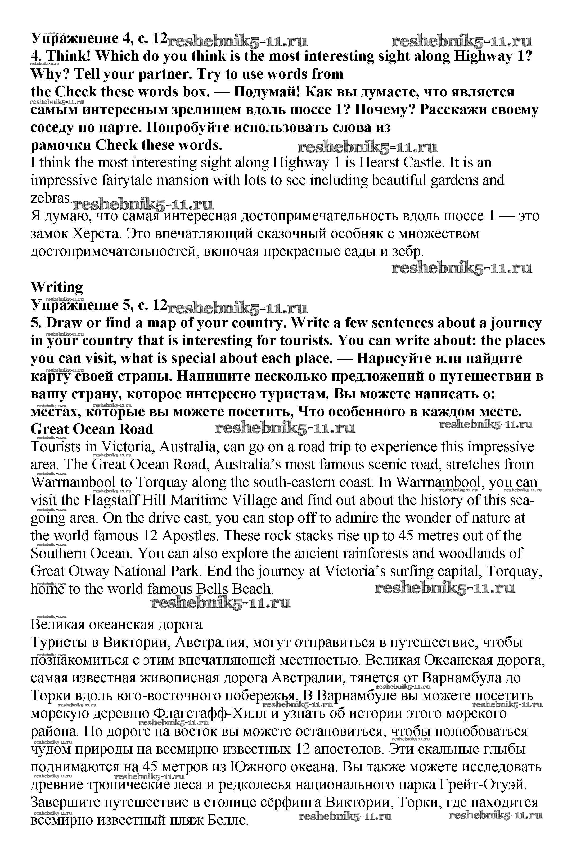 Готовая домашняя работа с ответами по Английскому языку за 6 класс Баранова, Дули, Эванс, Копылова, Мильруд Учебник Starlight Углубленный уровень Просвещение 2017 ФГОС - Module 1. Home and away стр.12
