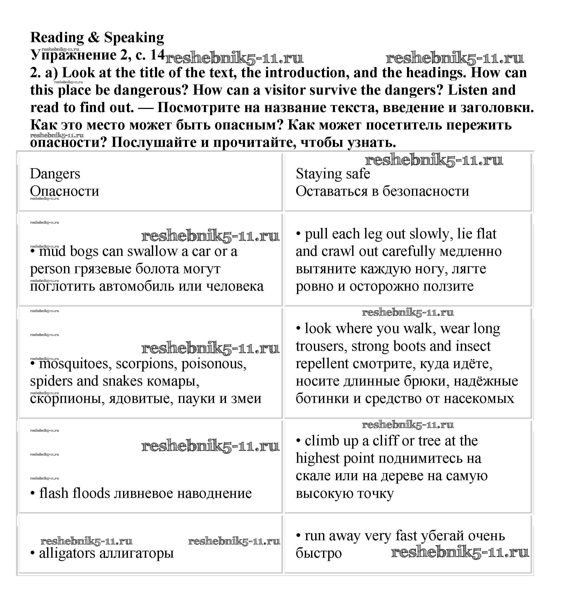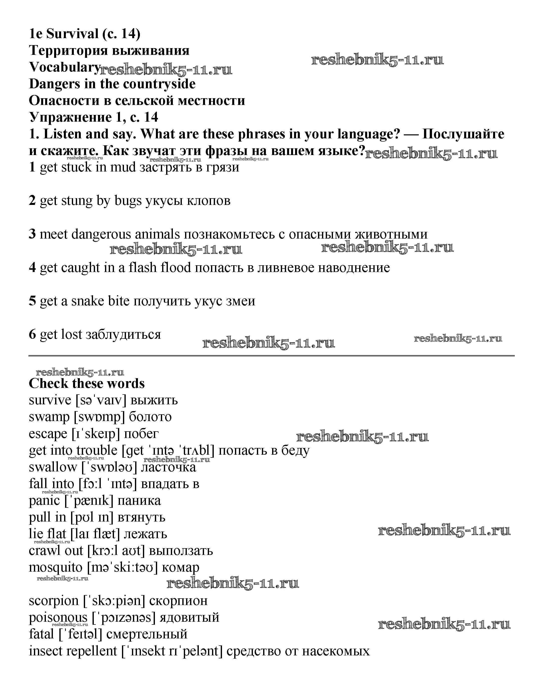 Готовая домашняя работа с ответами по Английскому языку за 6 класс Баранова, Дули, Эванс, Копылова, Мильруд Учебник Starlight Углубленный уровень Просвещение 2017 ФГОС - Module 1. Home and away стр.14