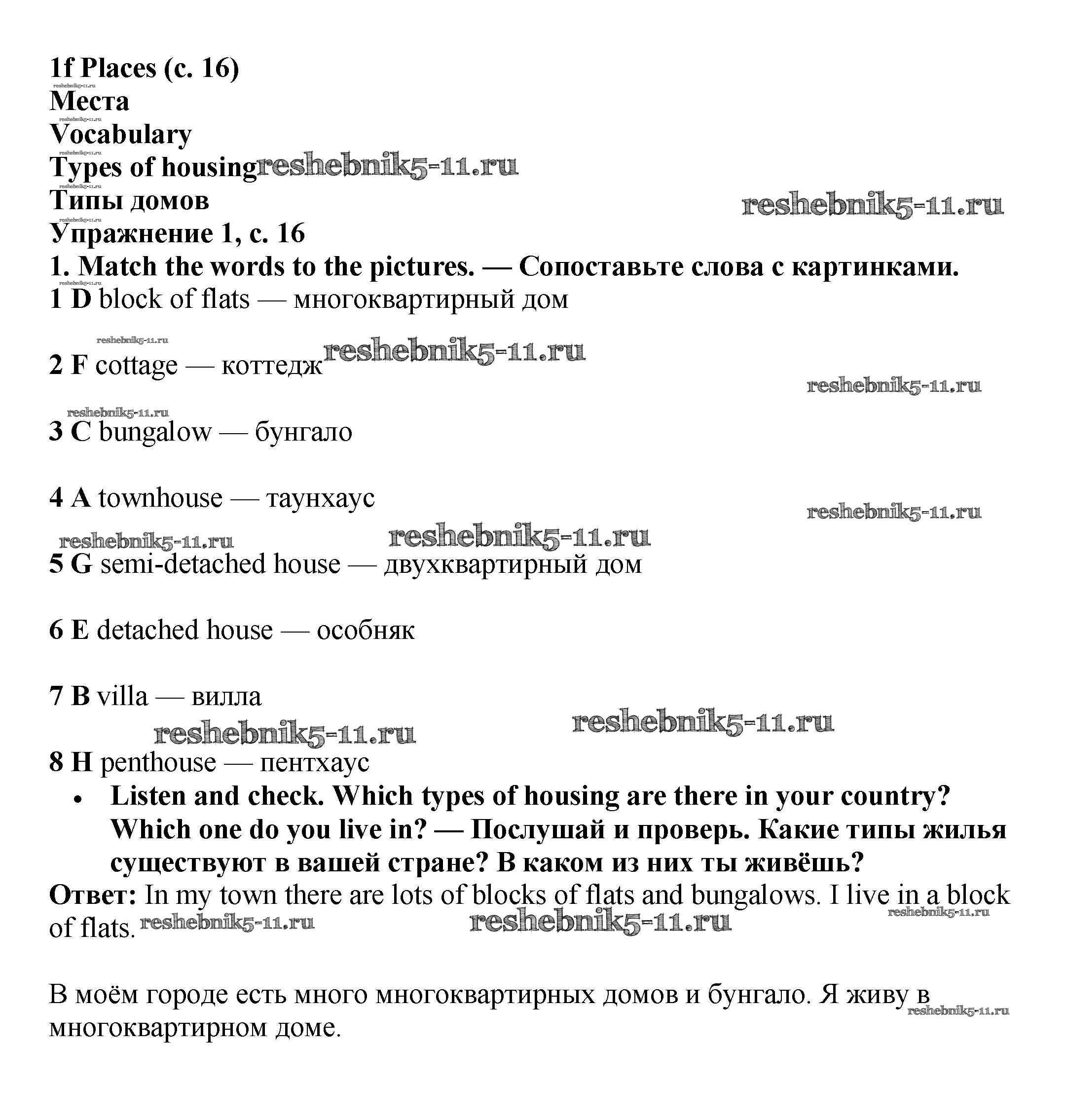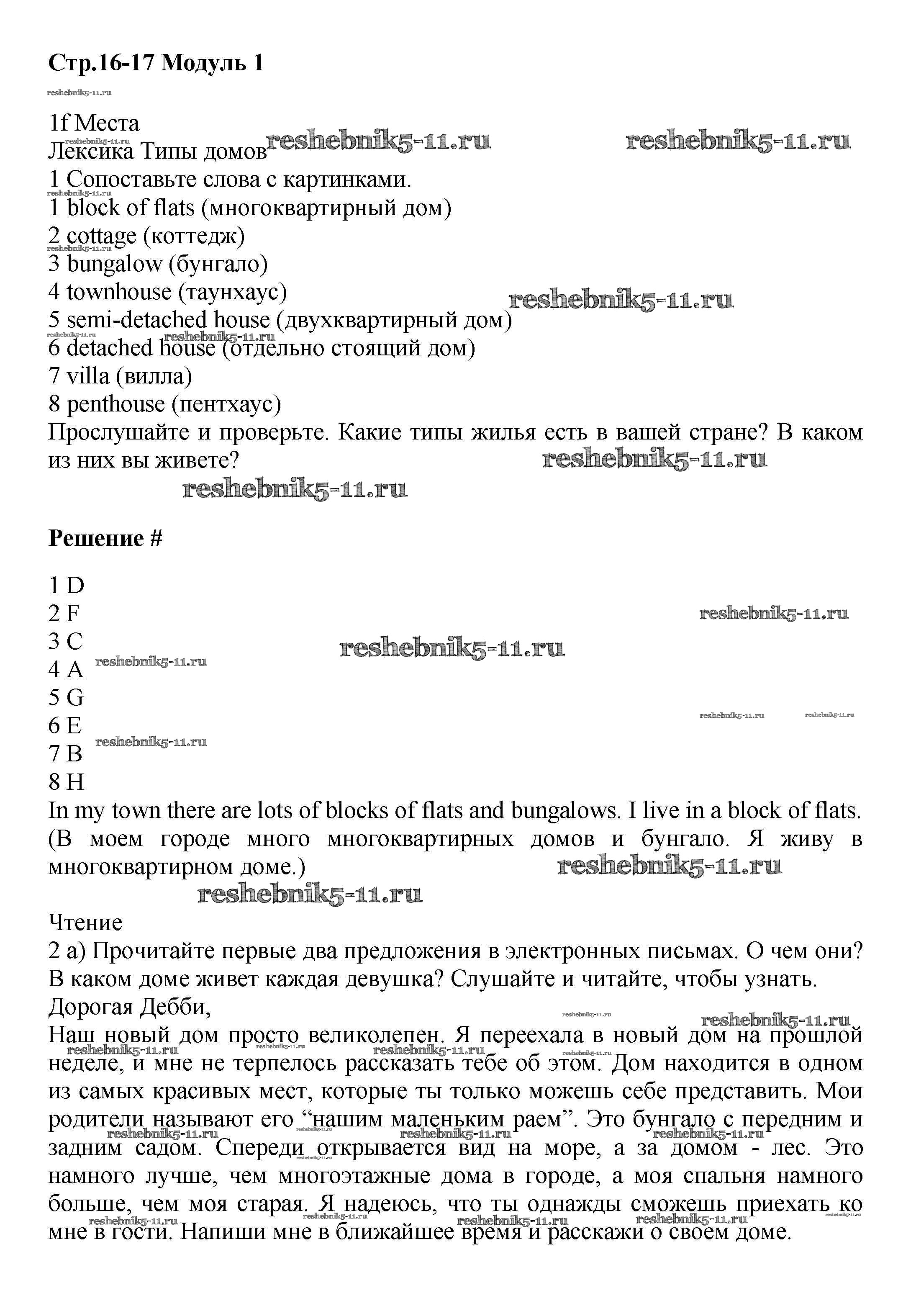 Готовая домашняя работа с ответами по Английскому языку за 6 класс Баранова, Дули, Эванс, Копылова, Мильруд Учебник Starlight Углубленный уровень Просвещение 2017 ФГОС - Module 1. Home and away стр.16-17