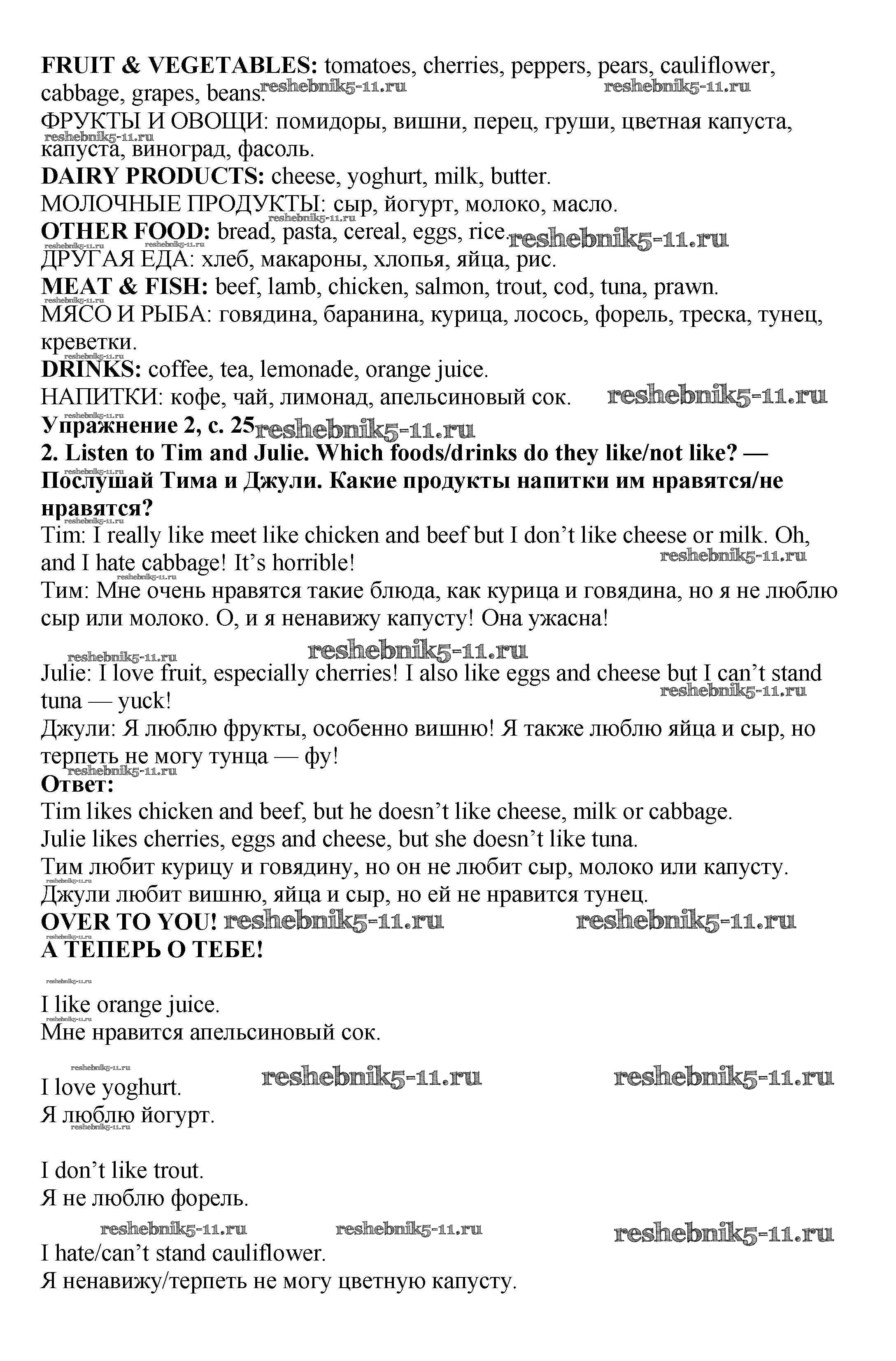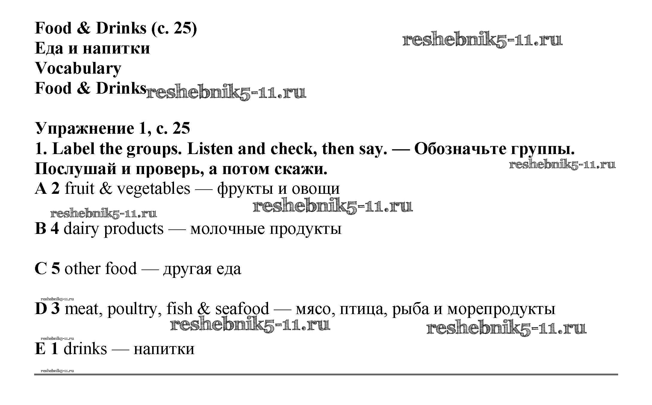 Готовая домашняя работа с ответами по Английскому языку за 6 класс Баранова, Дули, Эванс, Копылова, Мильруд Учебник Starlight Углубленный уровень Просвещение 2017 ФГОС - Module 2. Food & Drinks стр.25
