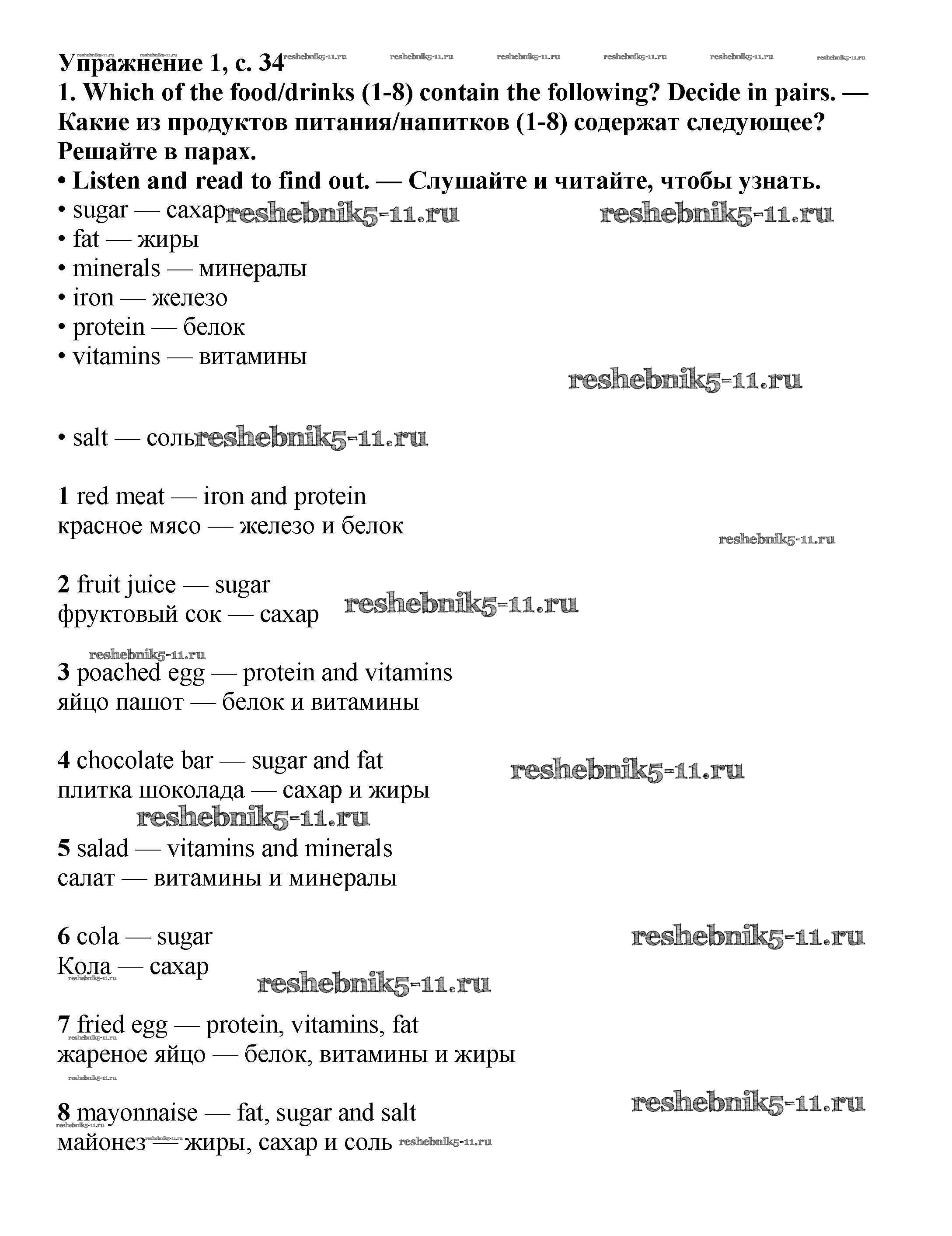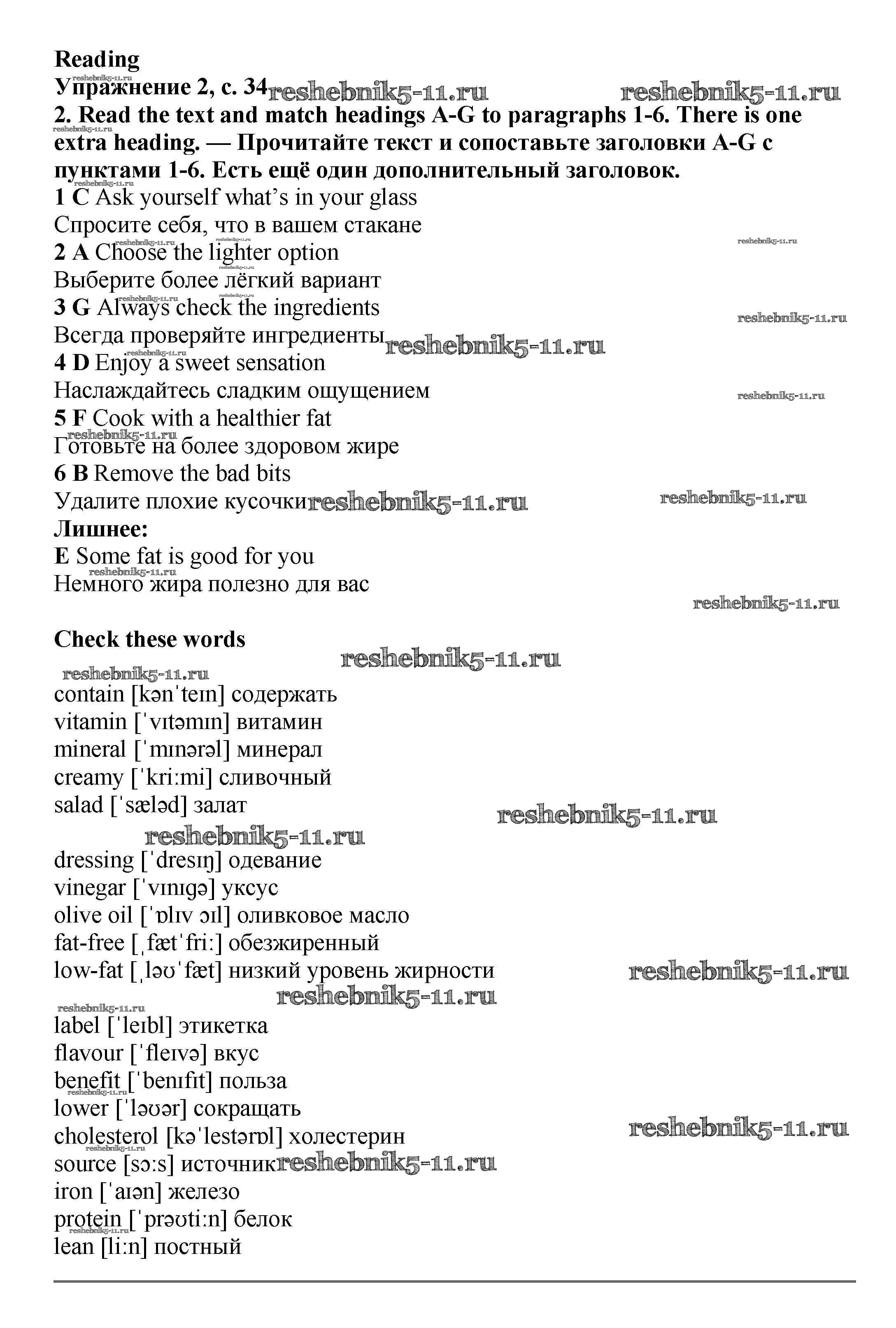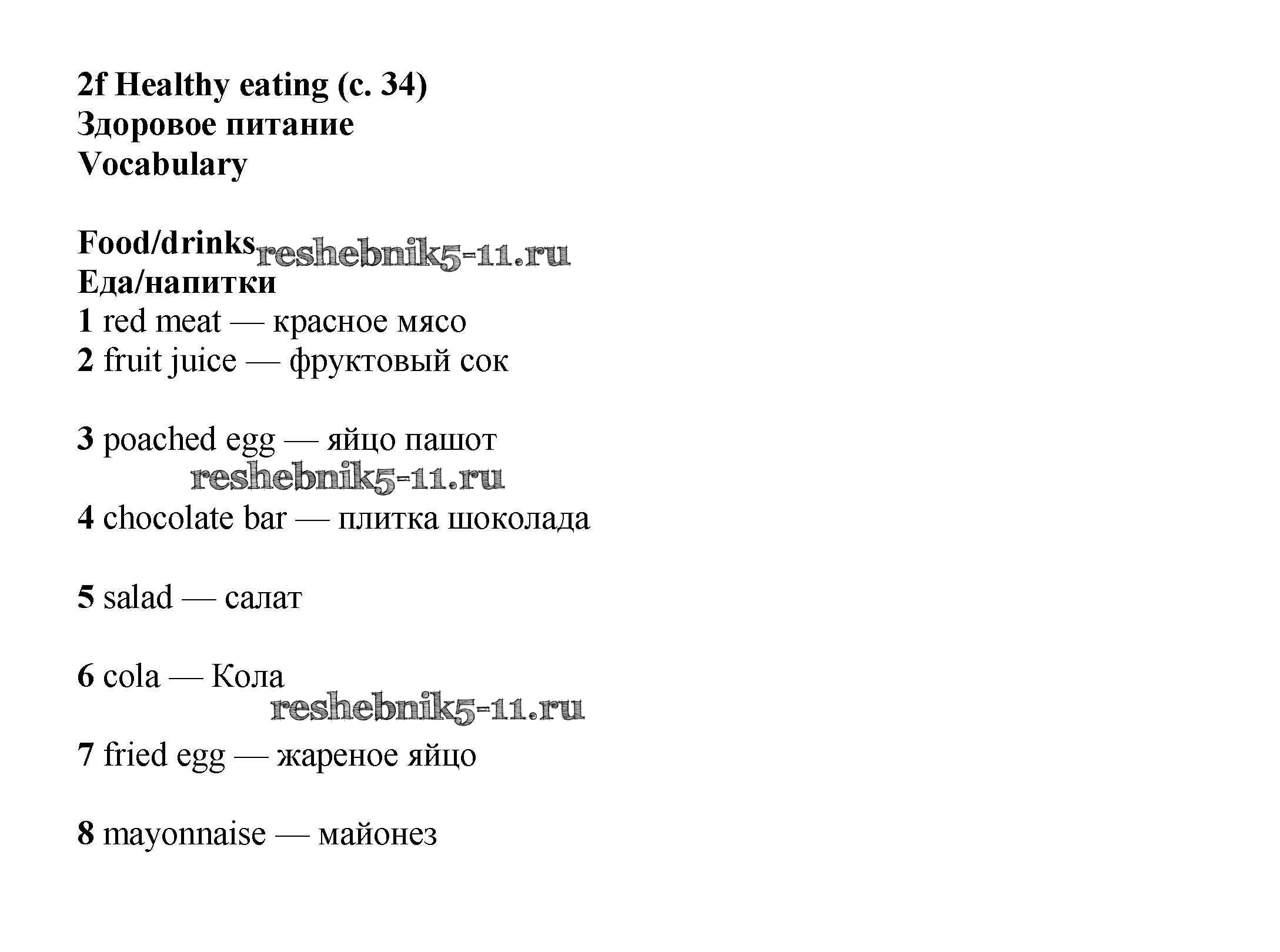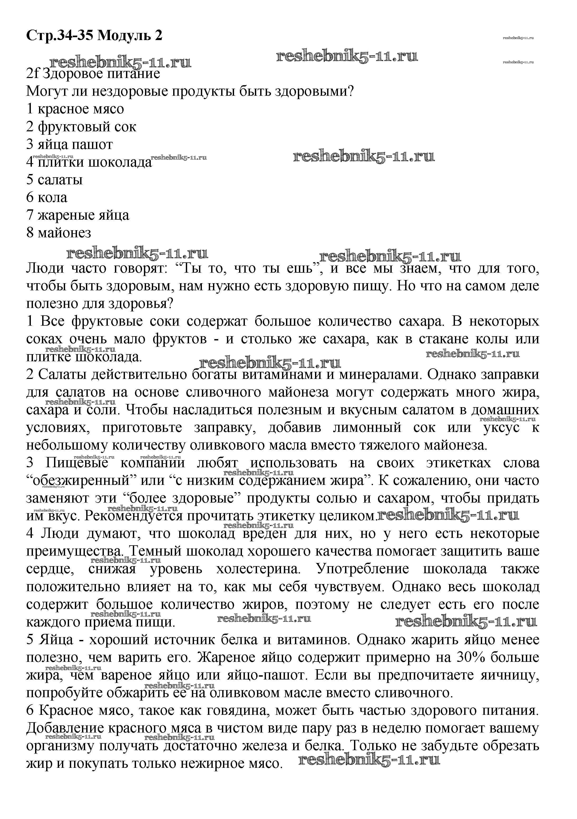 Готовая домашняя работа с ответами по Английскому языку за 6 класс Баранова, Дули, Эванс, Копылова, Мильруд Учебник Starlight Углубленный уровень Просвещение 2017 ФГОС - Module 2. Food & Drinks стр.34-35