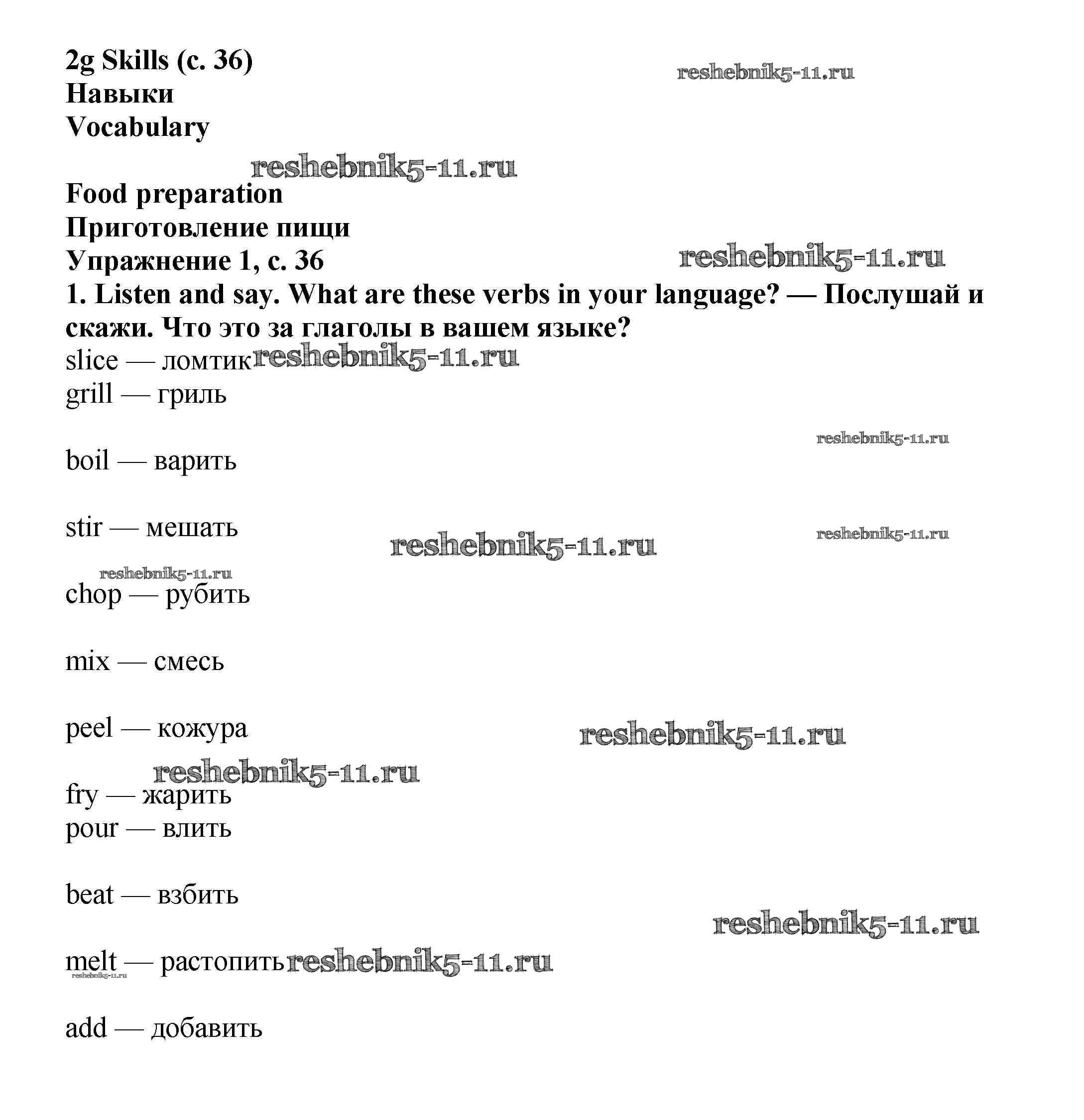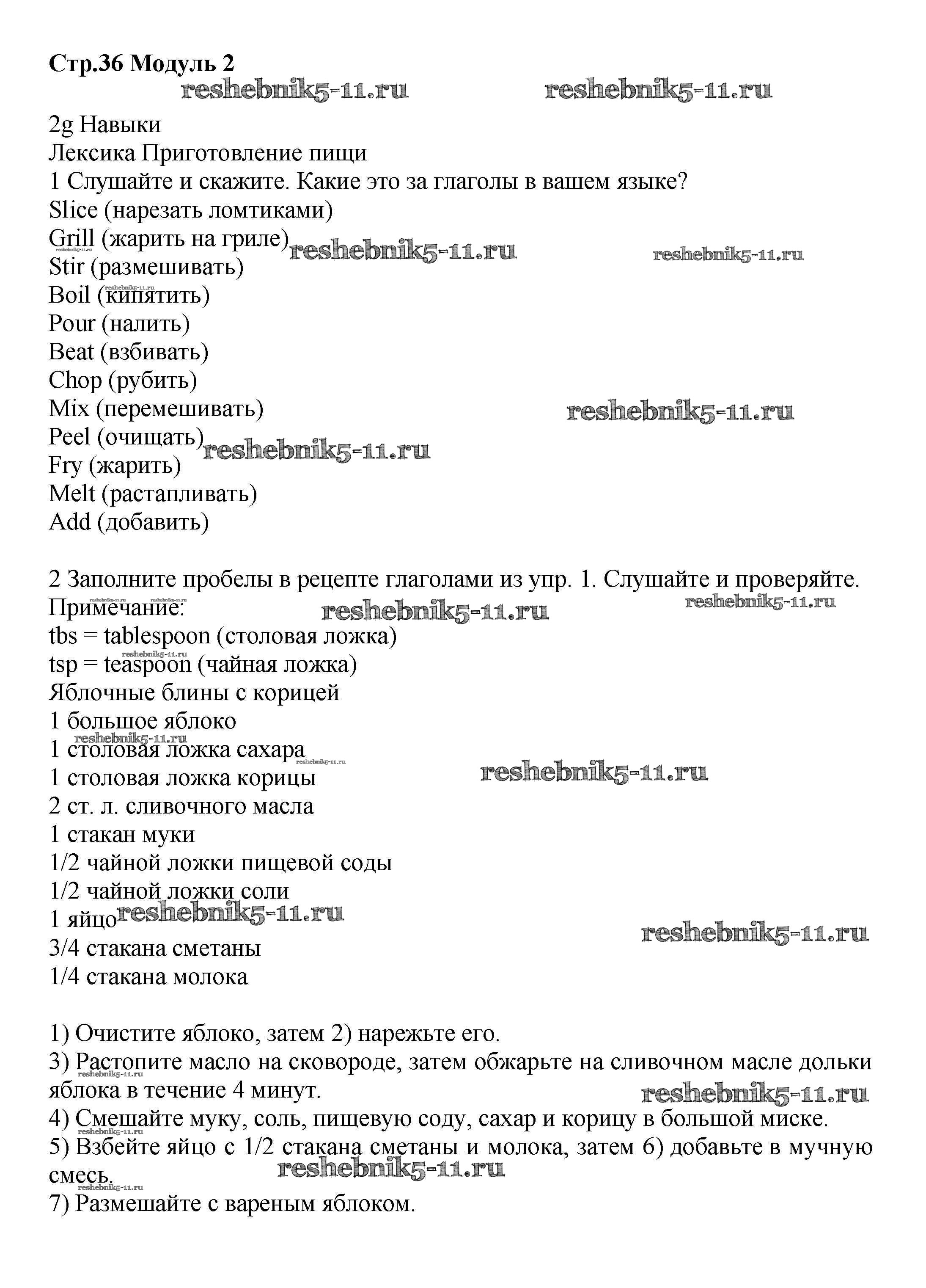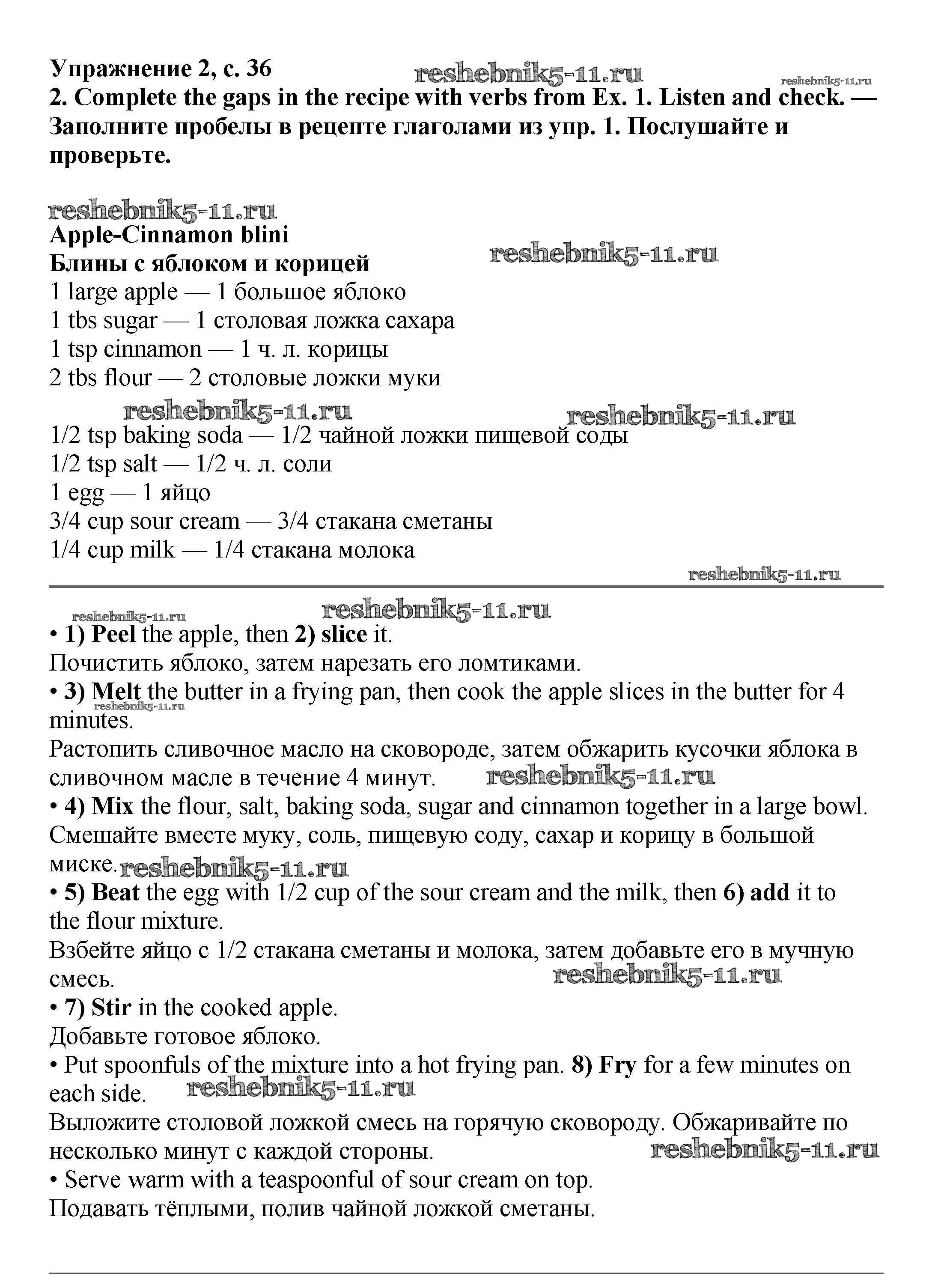 Готовая домашняя работа с ответами по Английскому языку за 6 класс Баранова, Дули, Эванс, Копылова, Мильруд Учебник Starlight Углубленный уровень Просвещение 2017 ФГОС - Module 2. Food & Drinks стр.36