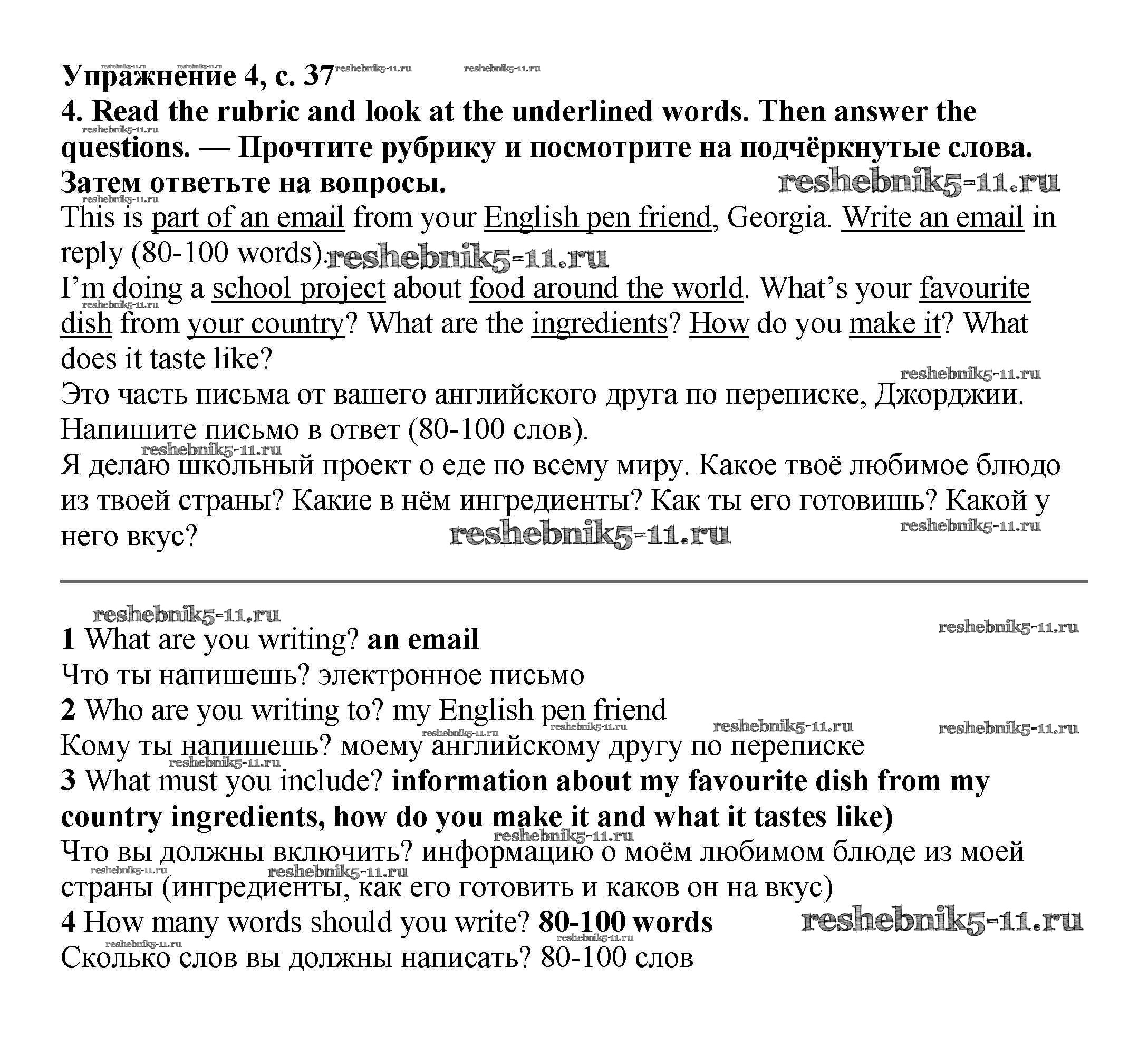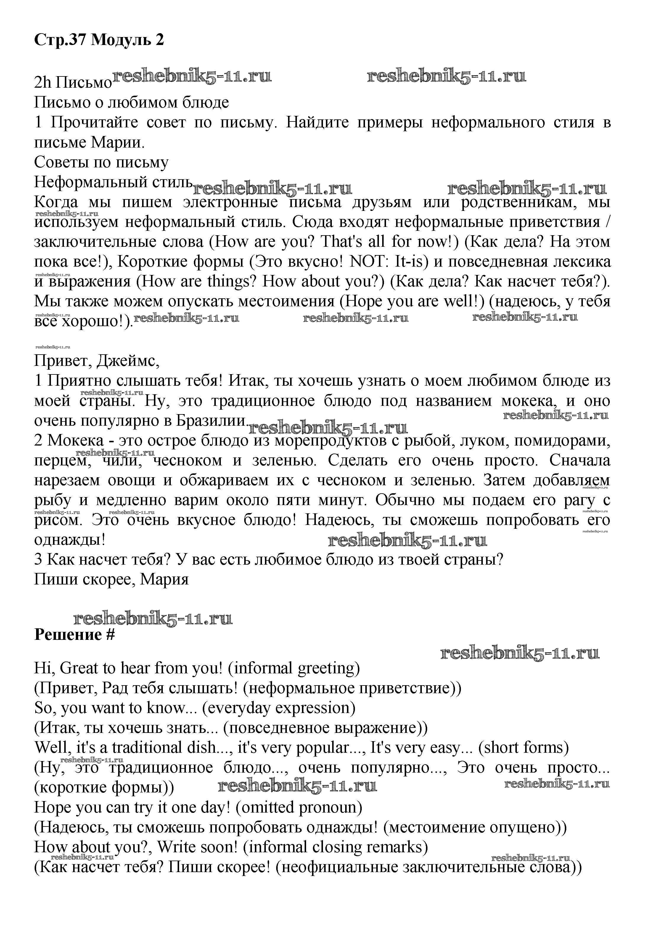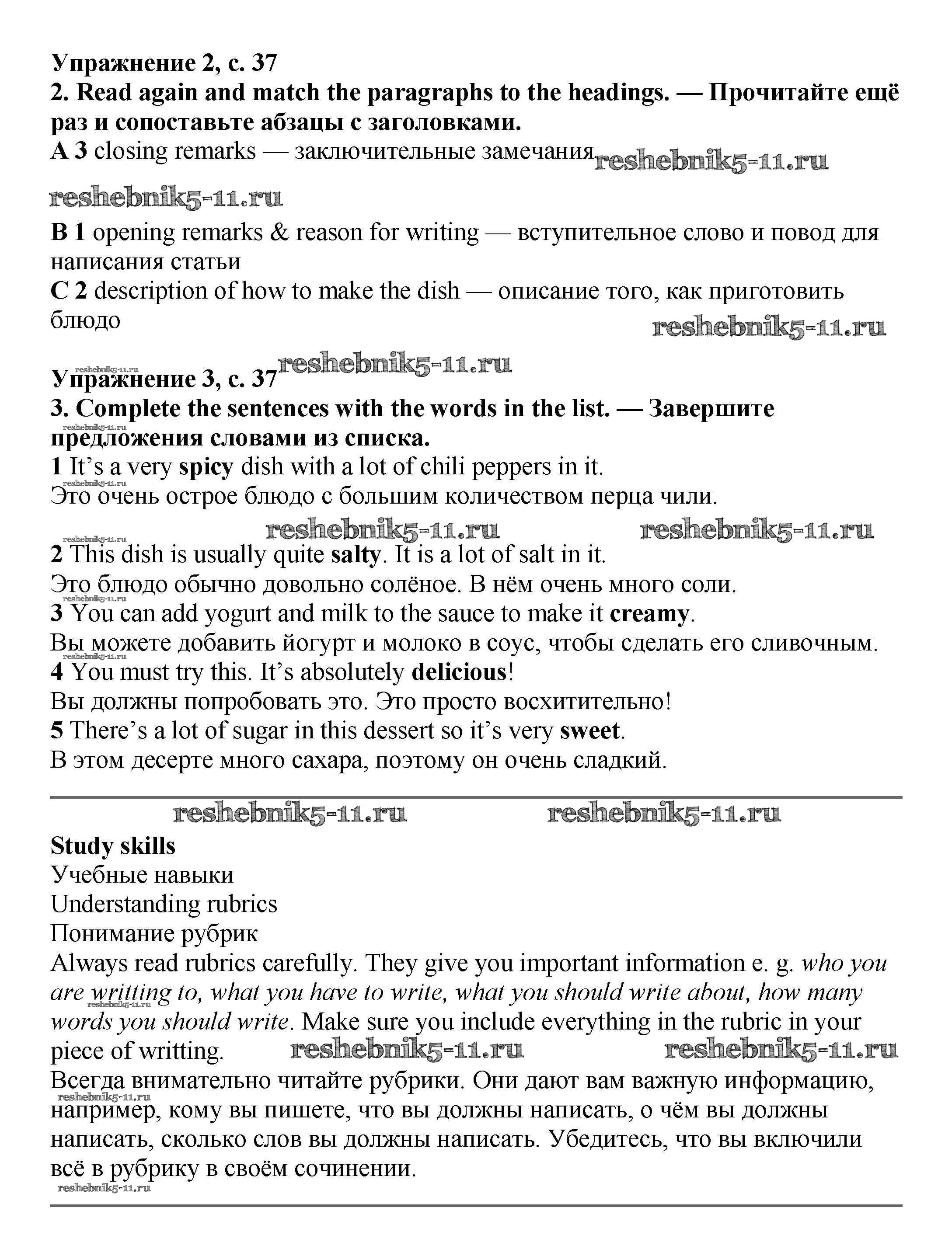 Готовая домашняя работа с ответами по Английскому языку за 6 класс Баранова, Дули, Эванс, Копылова, Мильруд Учебник Starlight Углубленный уровень Просвещение 2017 ФГОС - Module 2. Food & Drinks стр.37