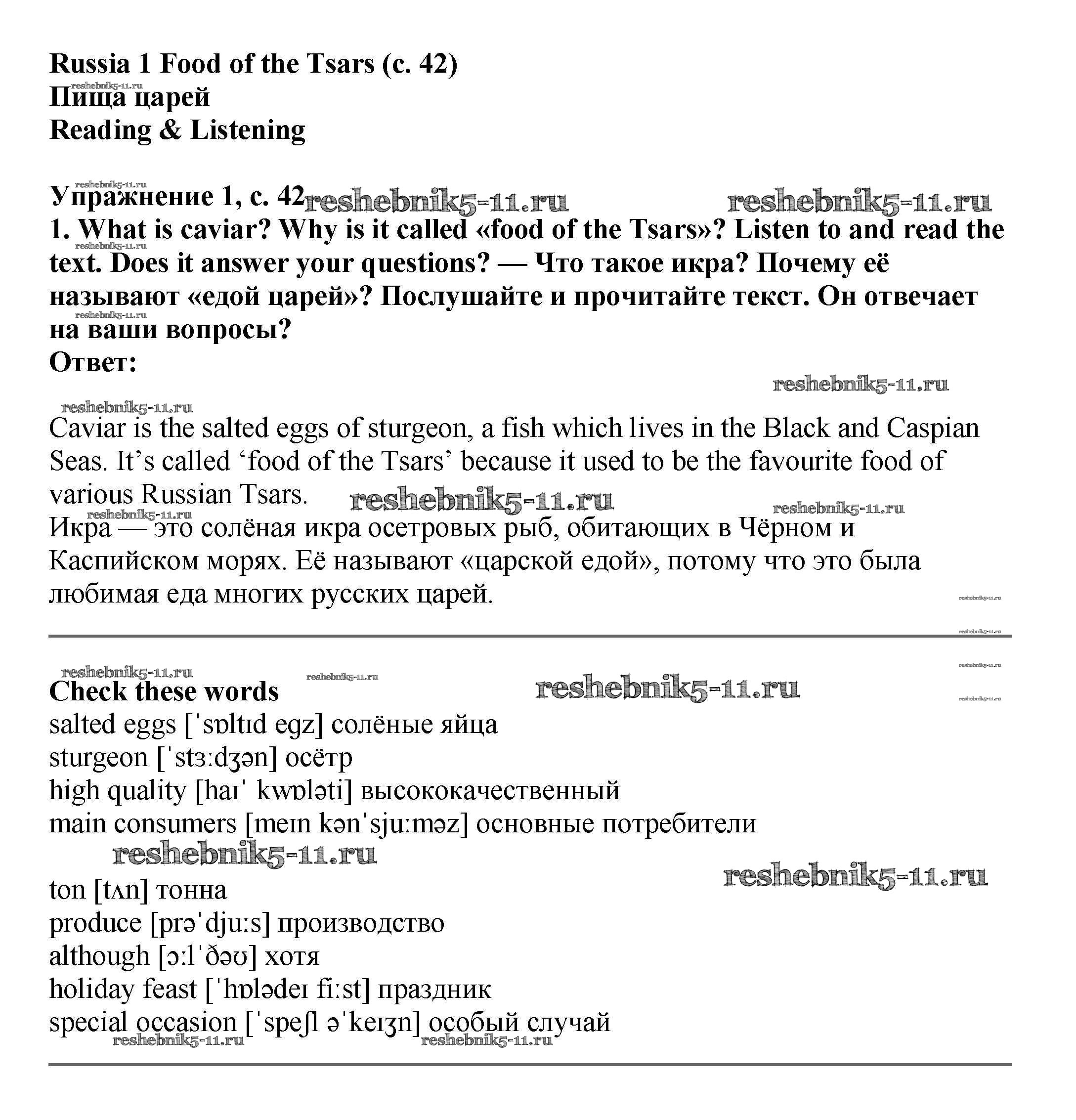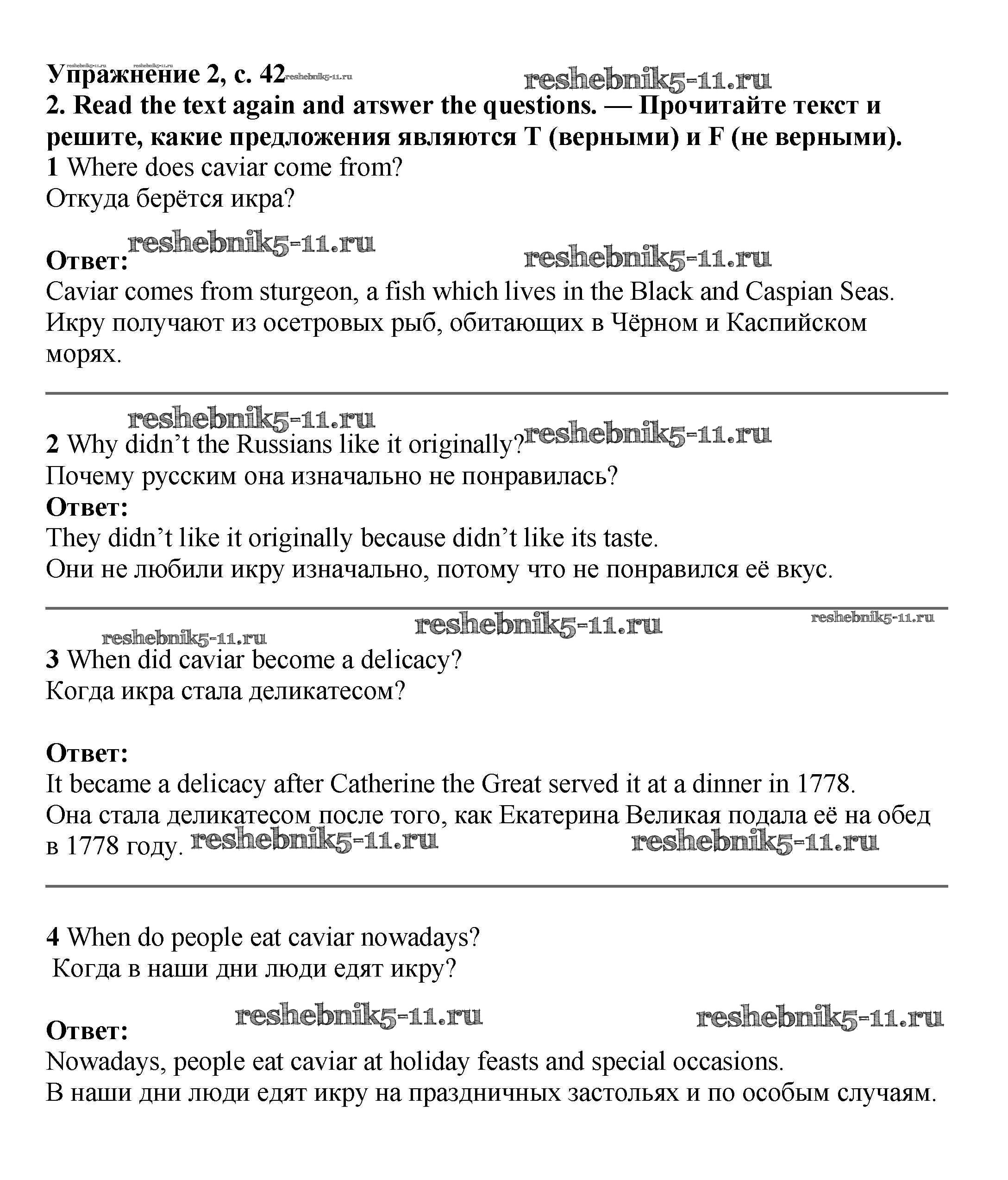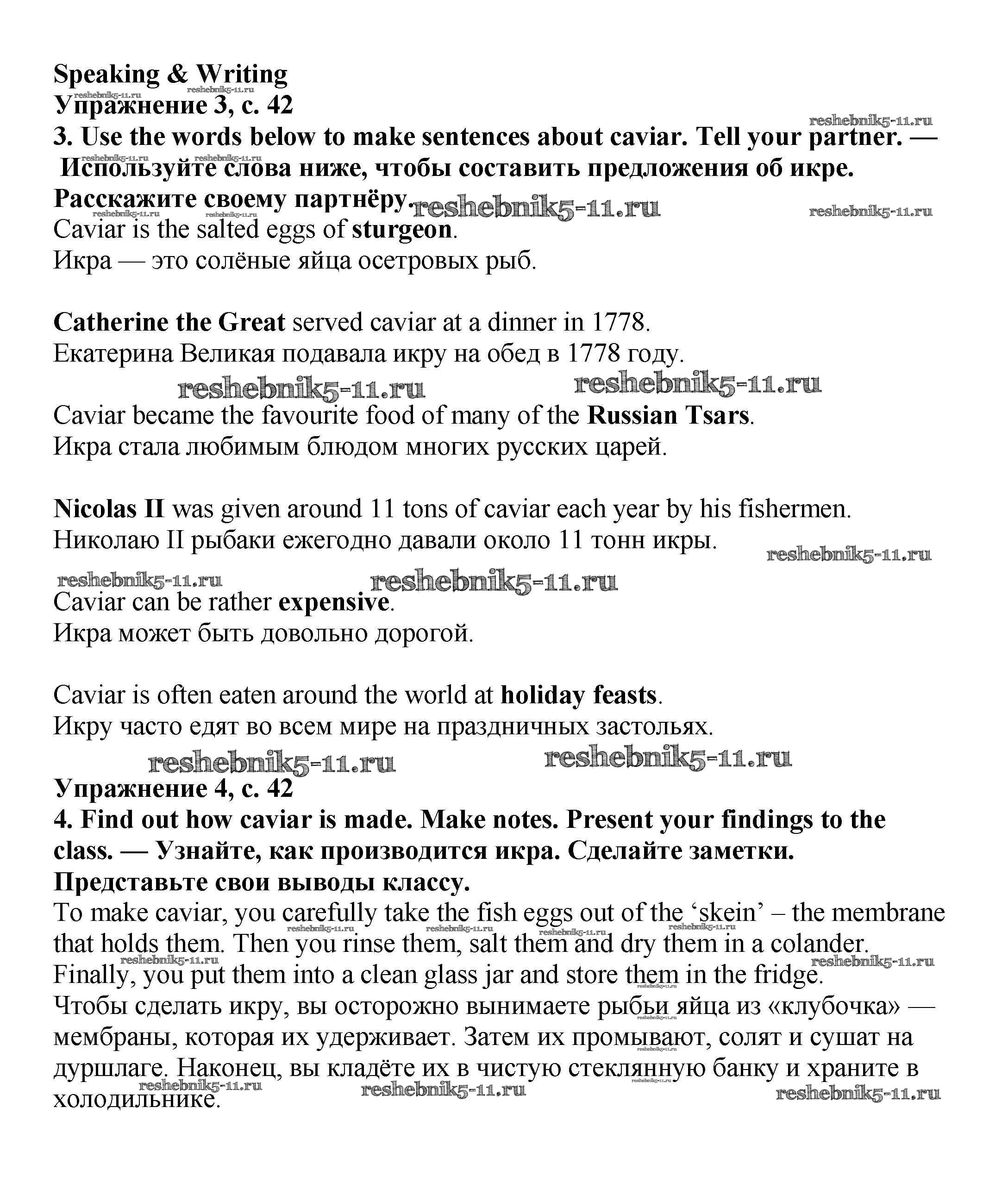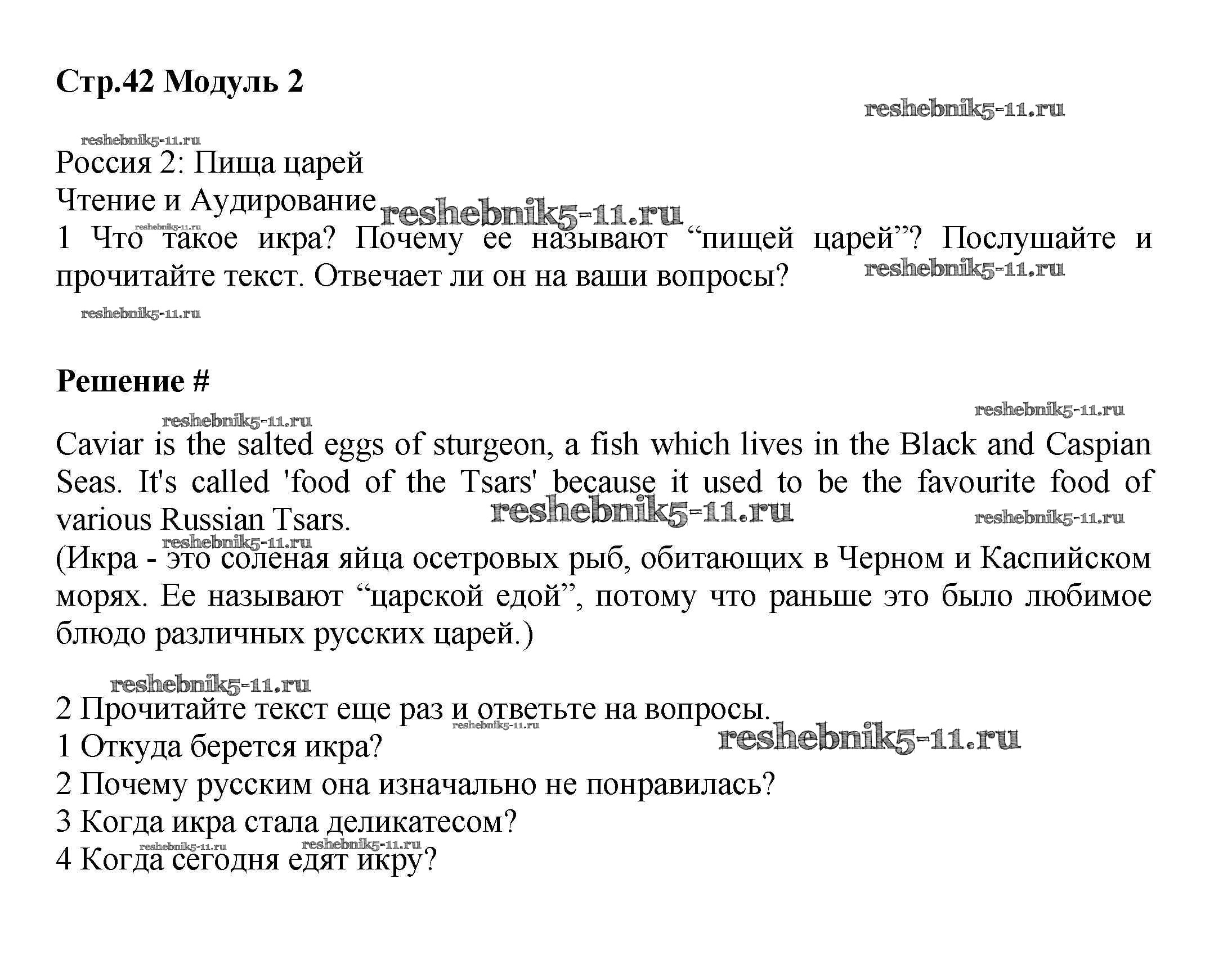 Готовая домашняя работа с ответами по Английскому языку за 6 класс Баранова, Дули, Эванс, Копылова, Мильруд Учебник Starlight Углубленный уровень Просвещение 2017 ФГОС - Module 2. Food & Drinks стр.42
