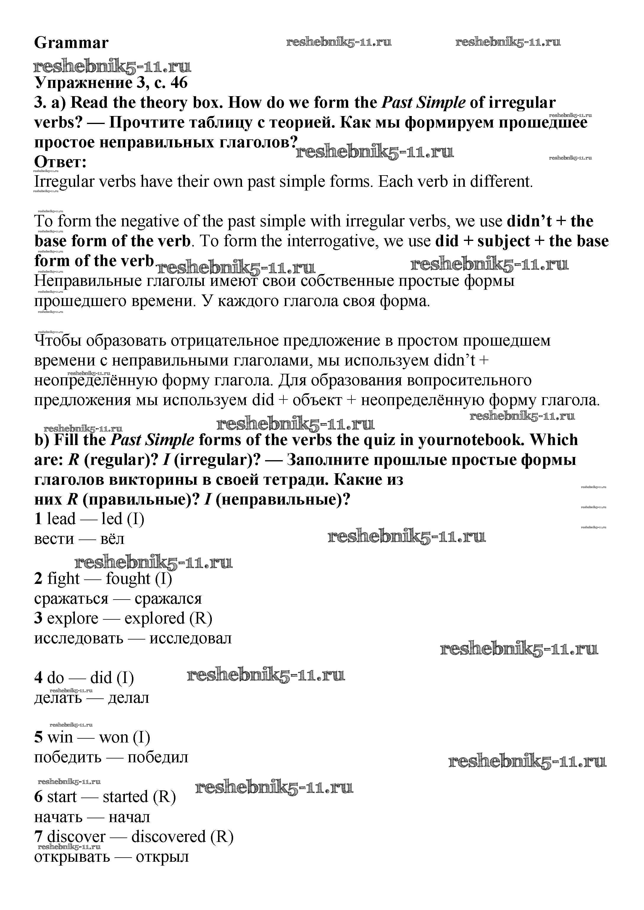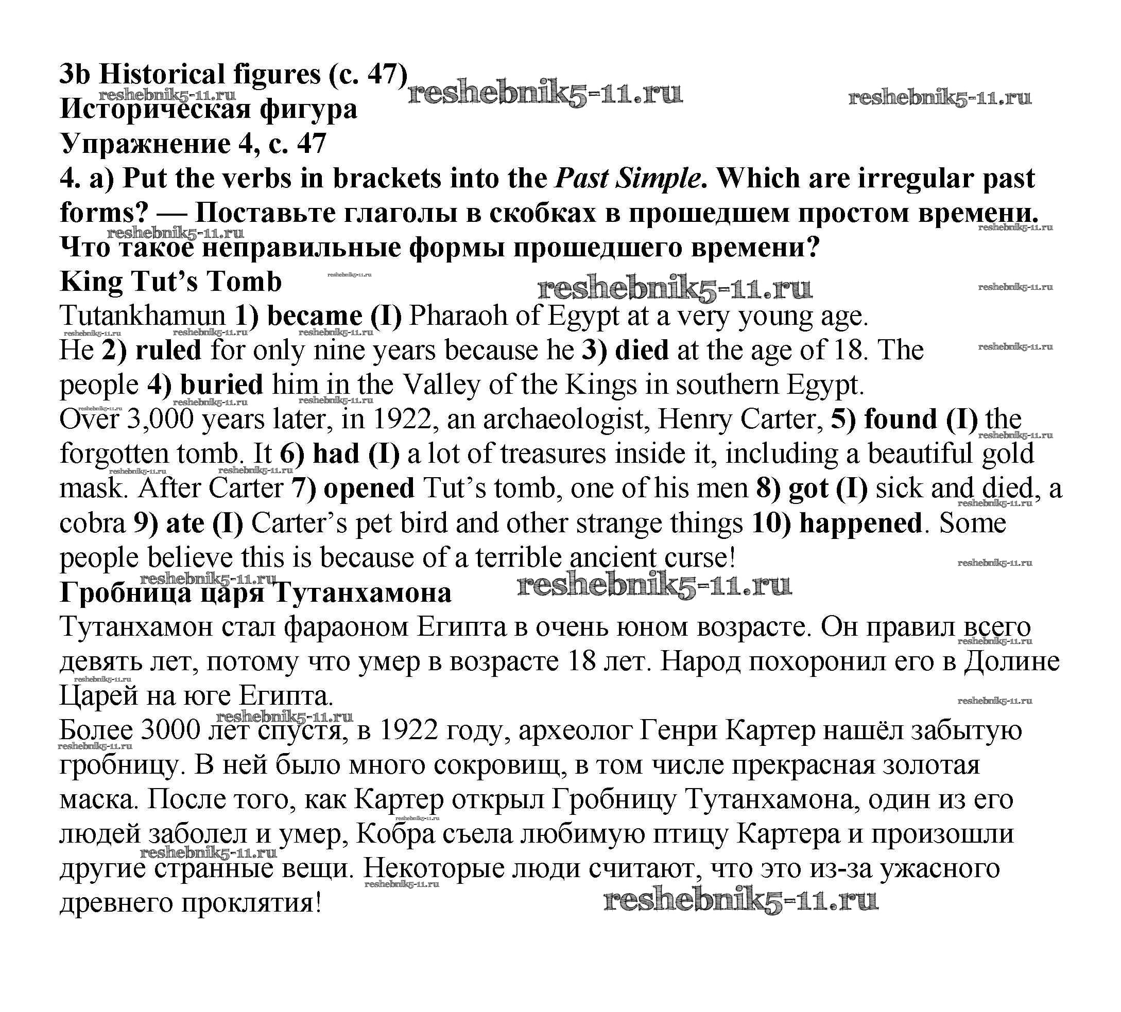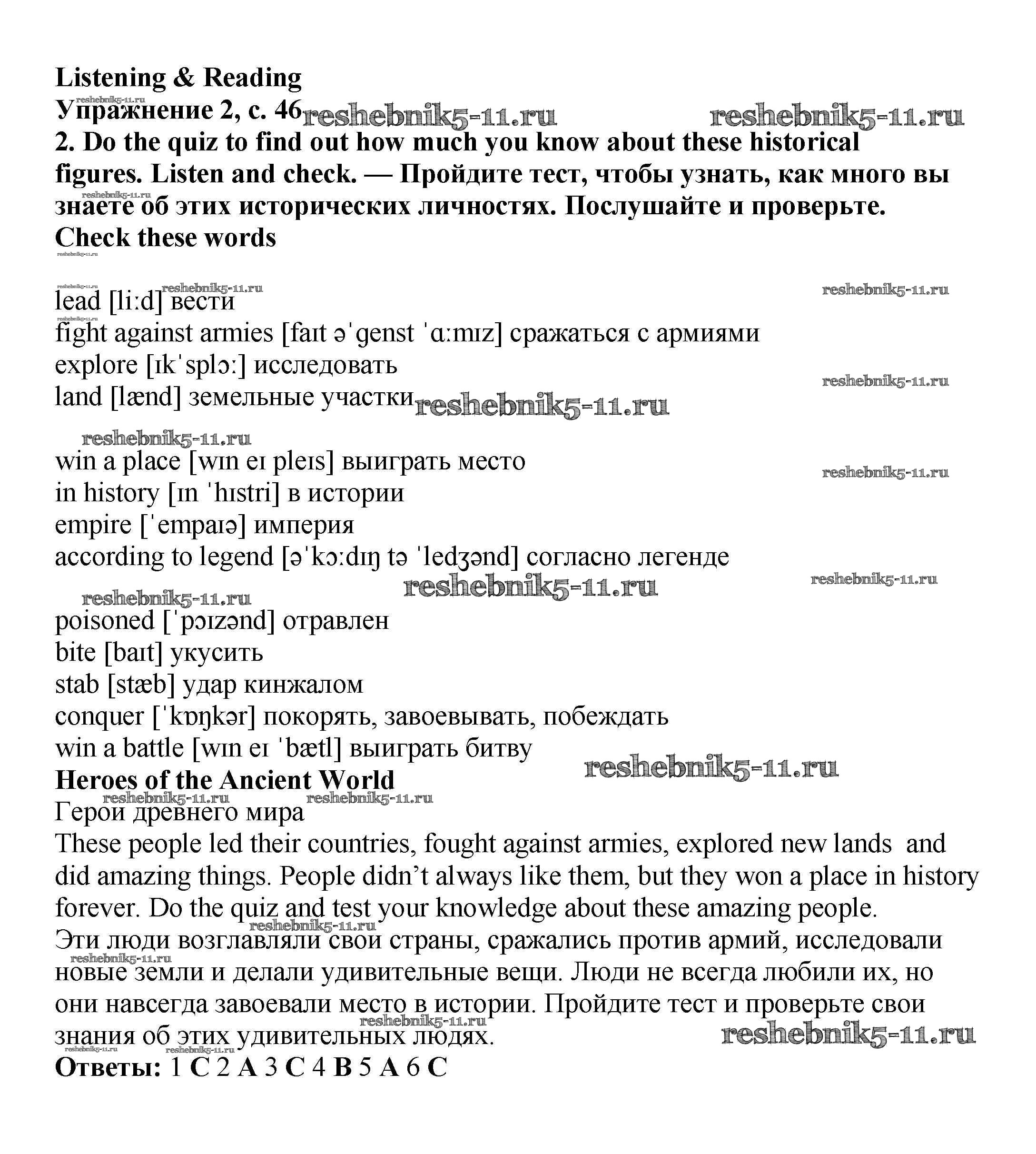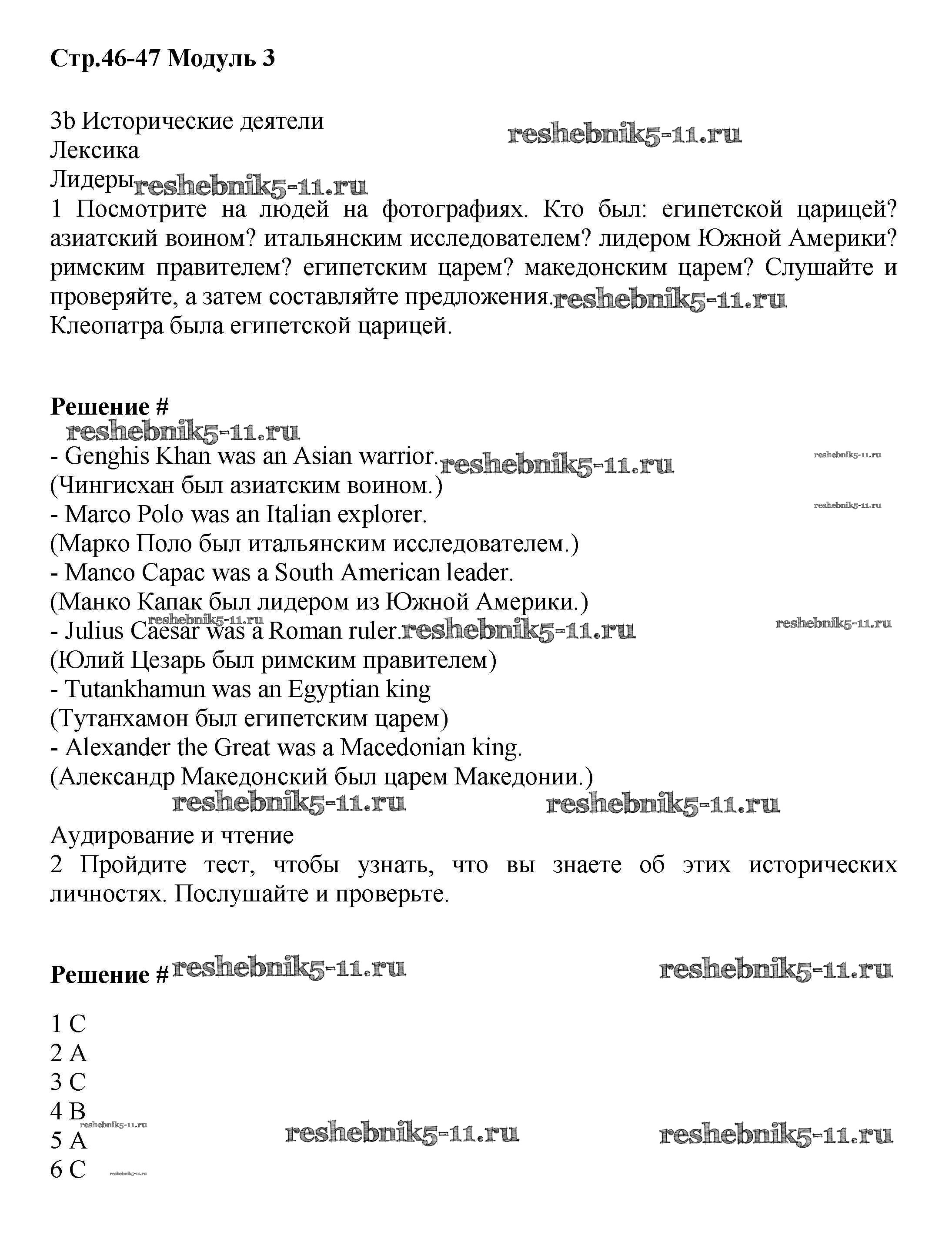 Готовая домашняя работа с ответами по Английскому языку за 6 класс Баранова, Дули, Эванс, Копылова, Мильруд Учебник Starlight Углубленный уровень Просвещение 2017 ФГОС - Module 3. Great people & legends стр.46-47