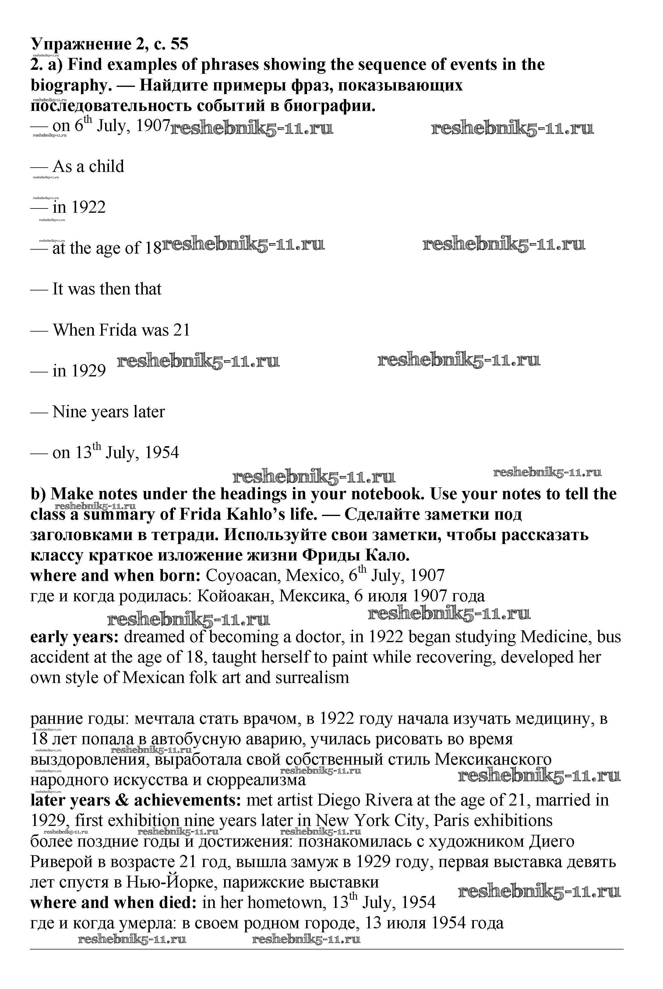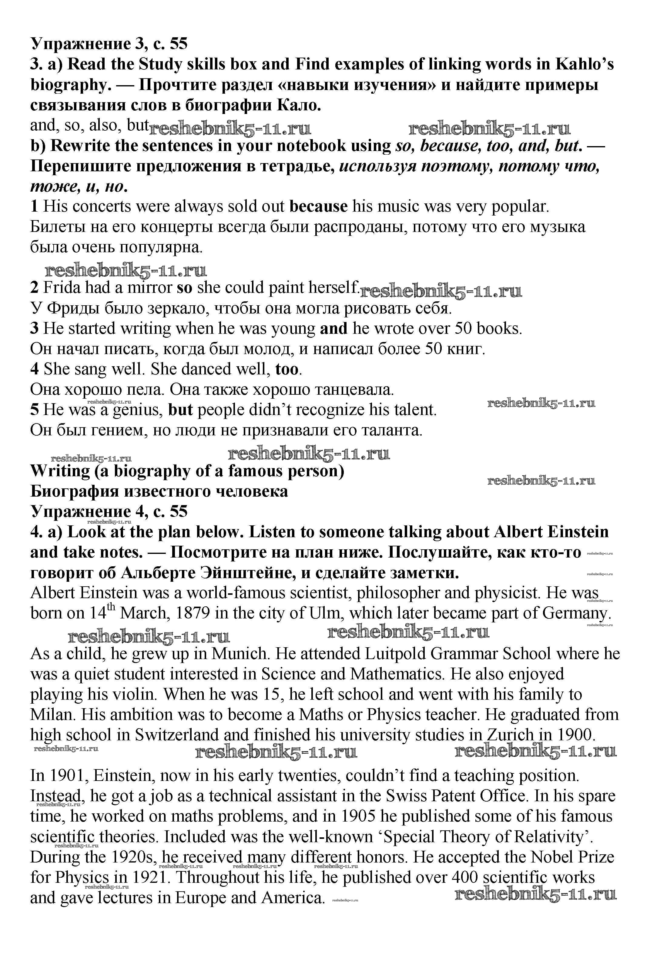 Готовая домашняя работа с ответами по Английскому языку за 6 класс Баранова, Дули, Эванс, Копылова, Мильруд Учебник Starlight Углубленный уровень Просвещение 2017 ФГОС - Module 3. Great people & legends стр.55