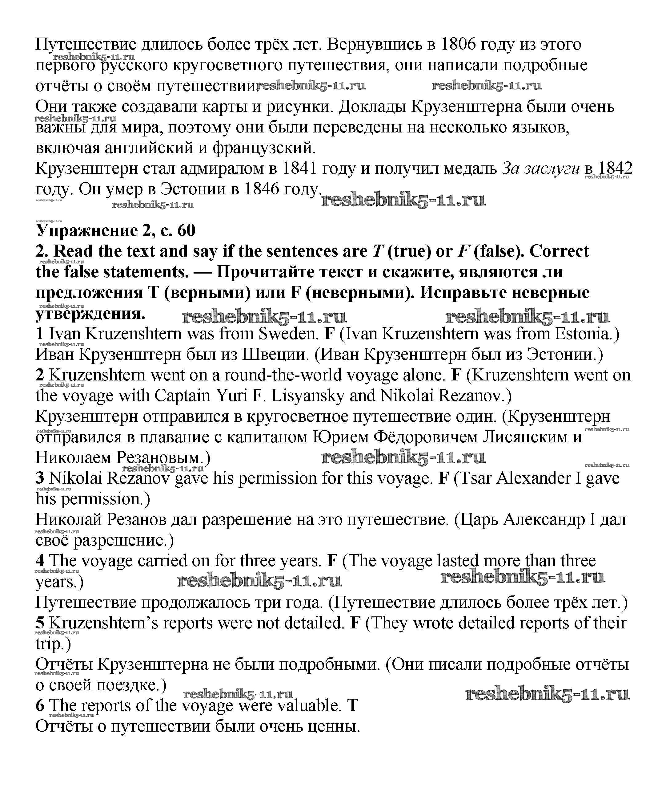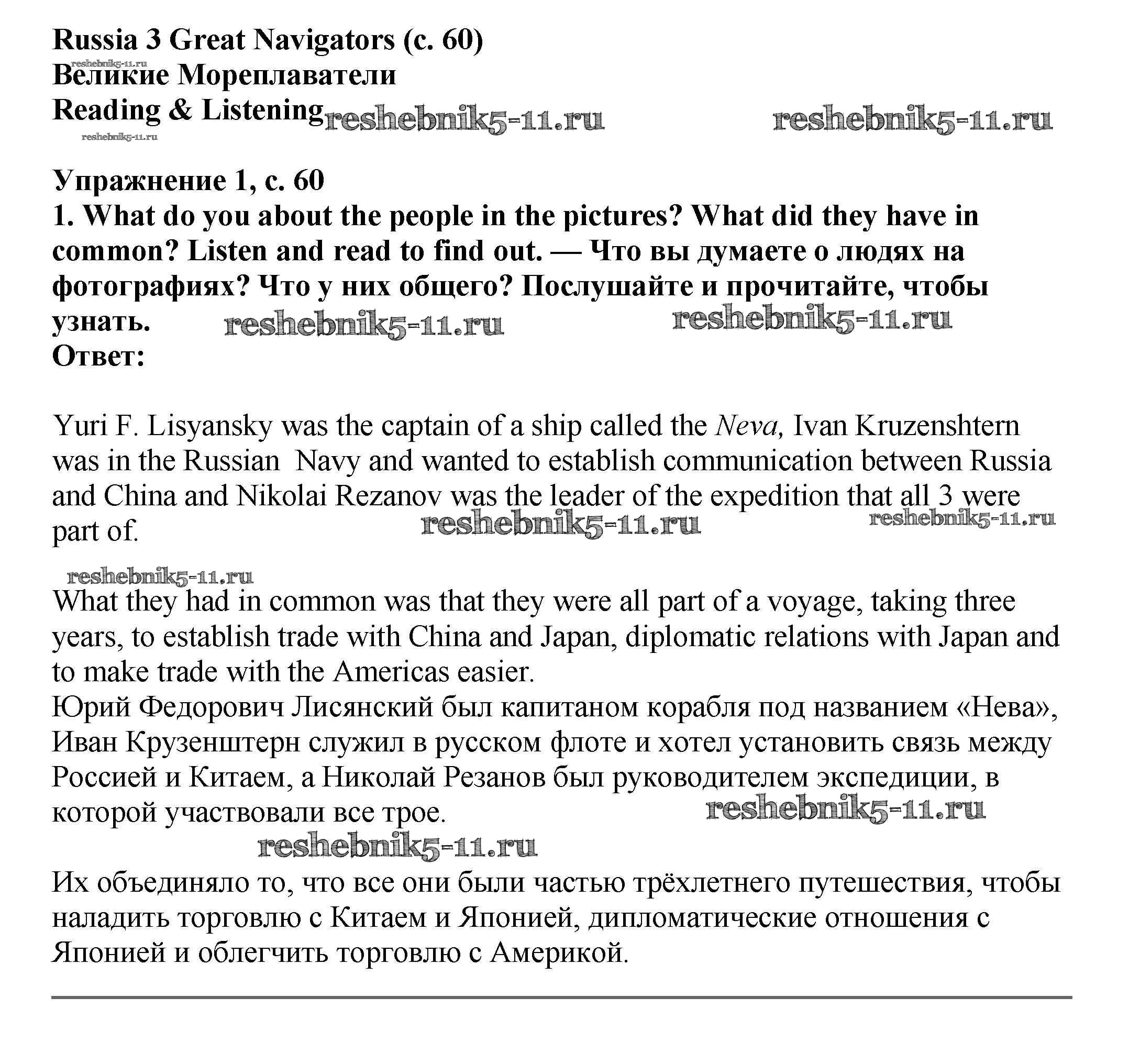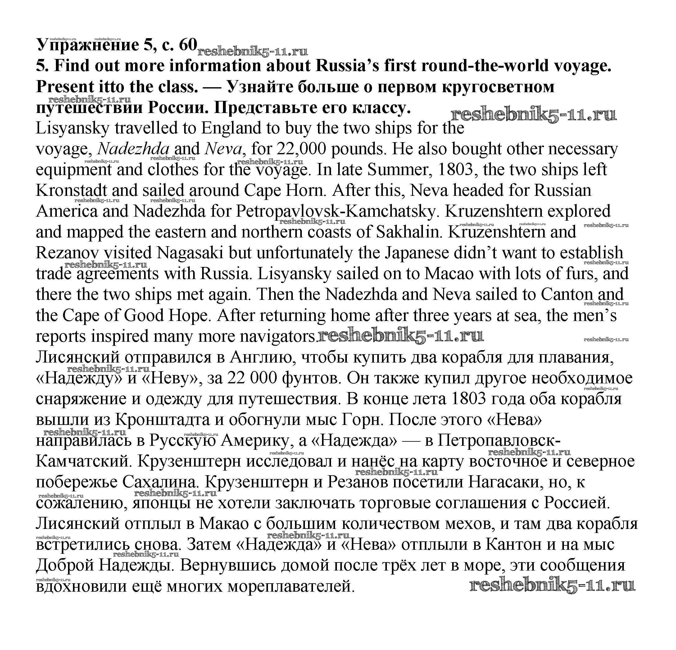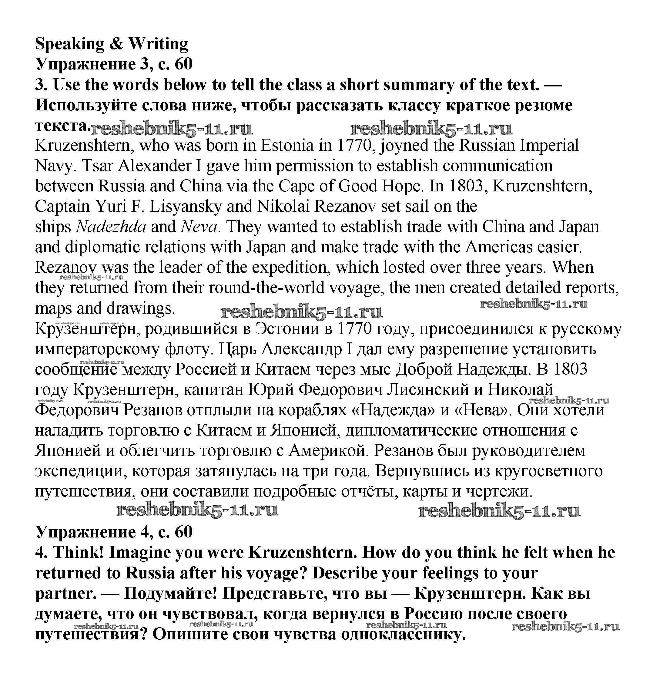 Готовая домашняя работа с ответами по Английскому языку за 6 класс Баранова, Дули, Эванс, Копылова, Мильруд Учебник Starlight Углубленный уровень Просвещение 2017 ФГОС - Module 3. Great people & legends стр.60