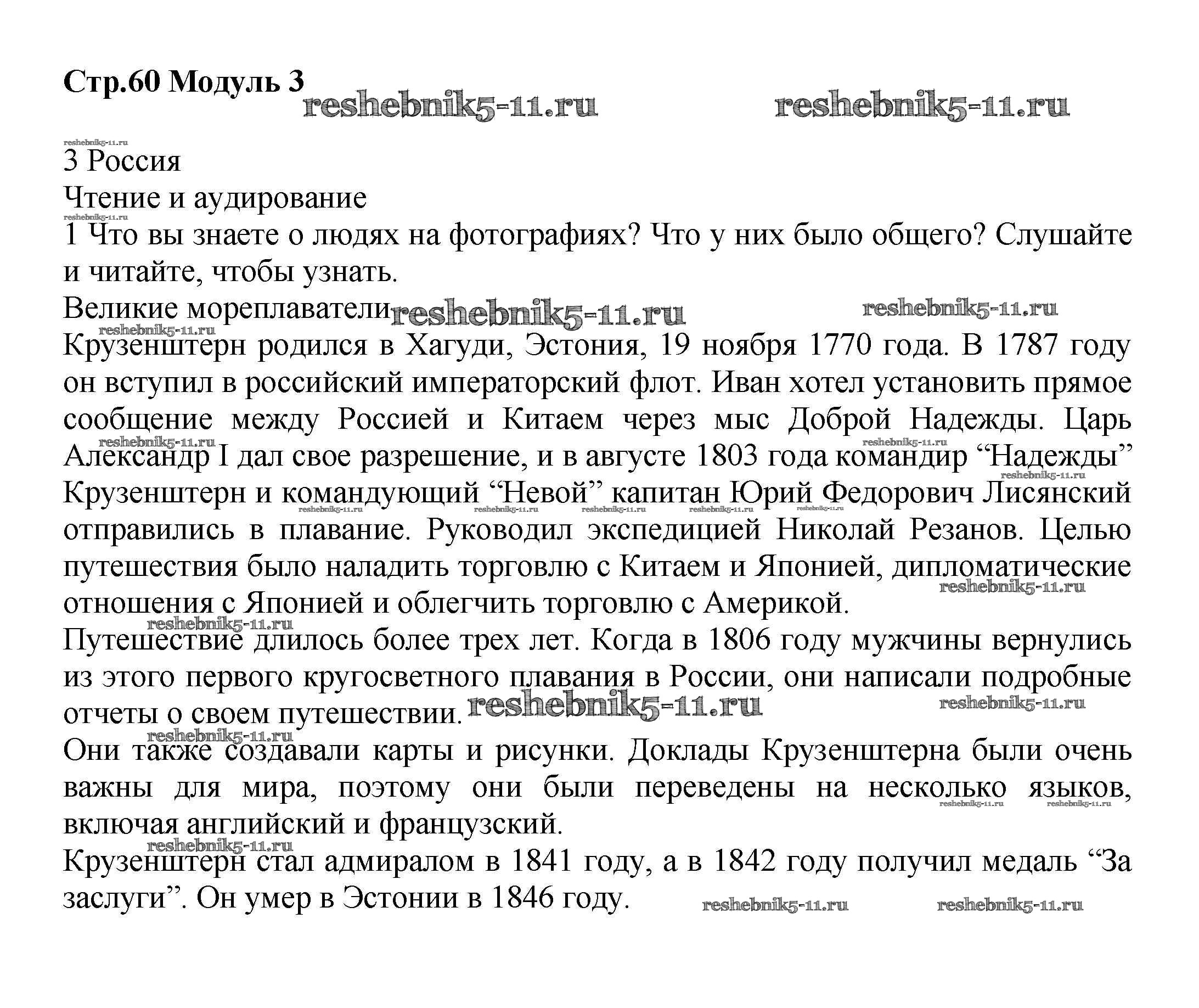 Английский язык за 6 класс Баранова Учебник Starlight Углубленный уровень Просвещение module 3 стр.60