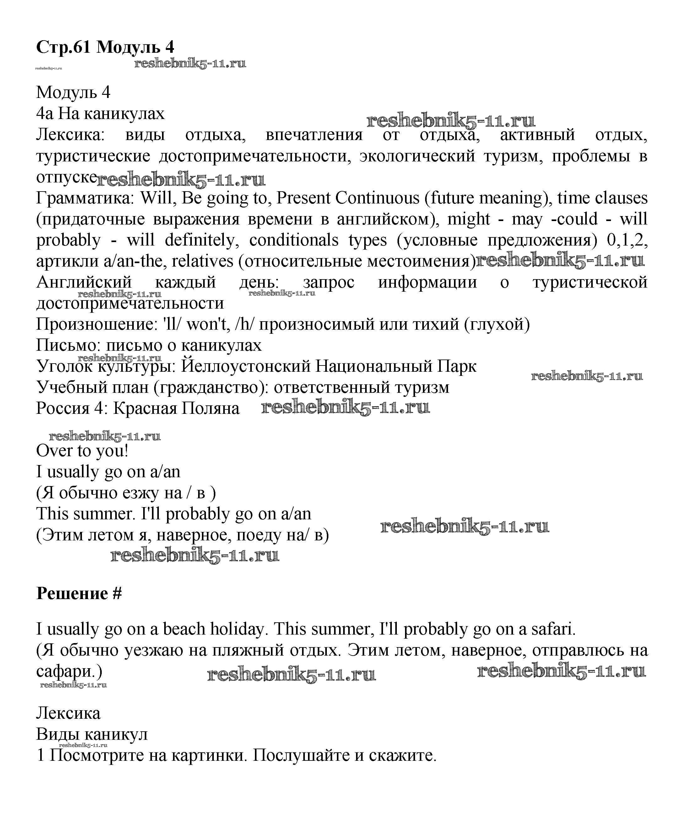 Готовая домашняя работа с ответами по Английскому языку за 6 класс Баранова, Дули, Эванс, Копылова, Мильруд Учебник Starlight Углубленный уровень Просвещение 2017 ФГОС - Module 4. On holiday стр.61