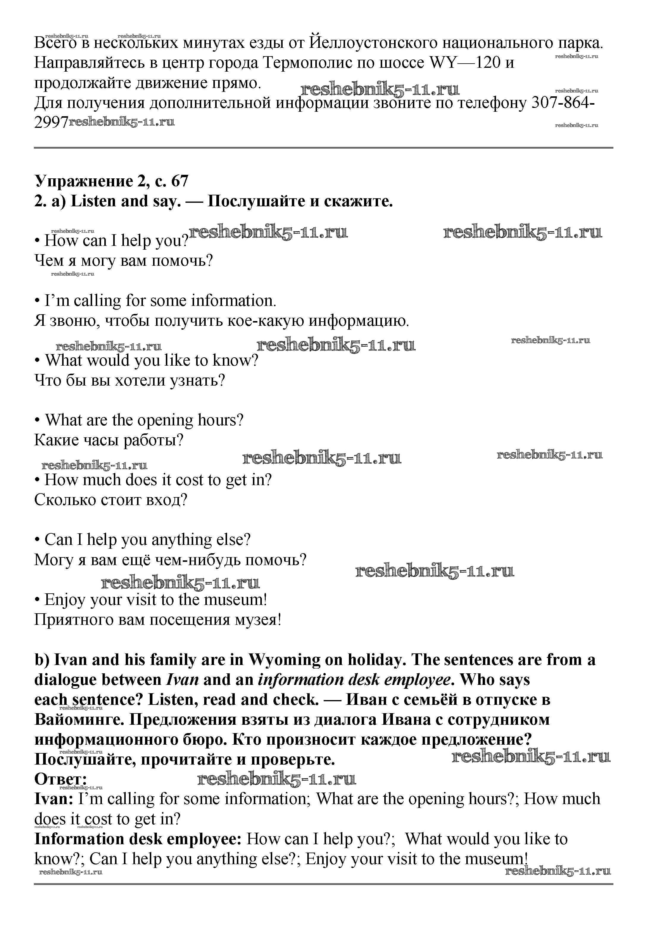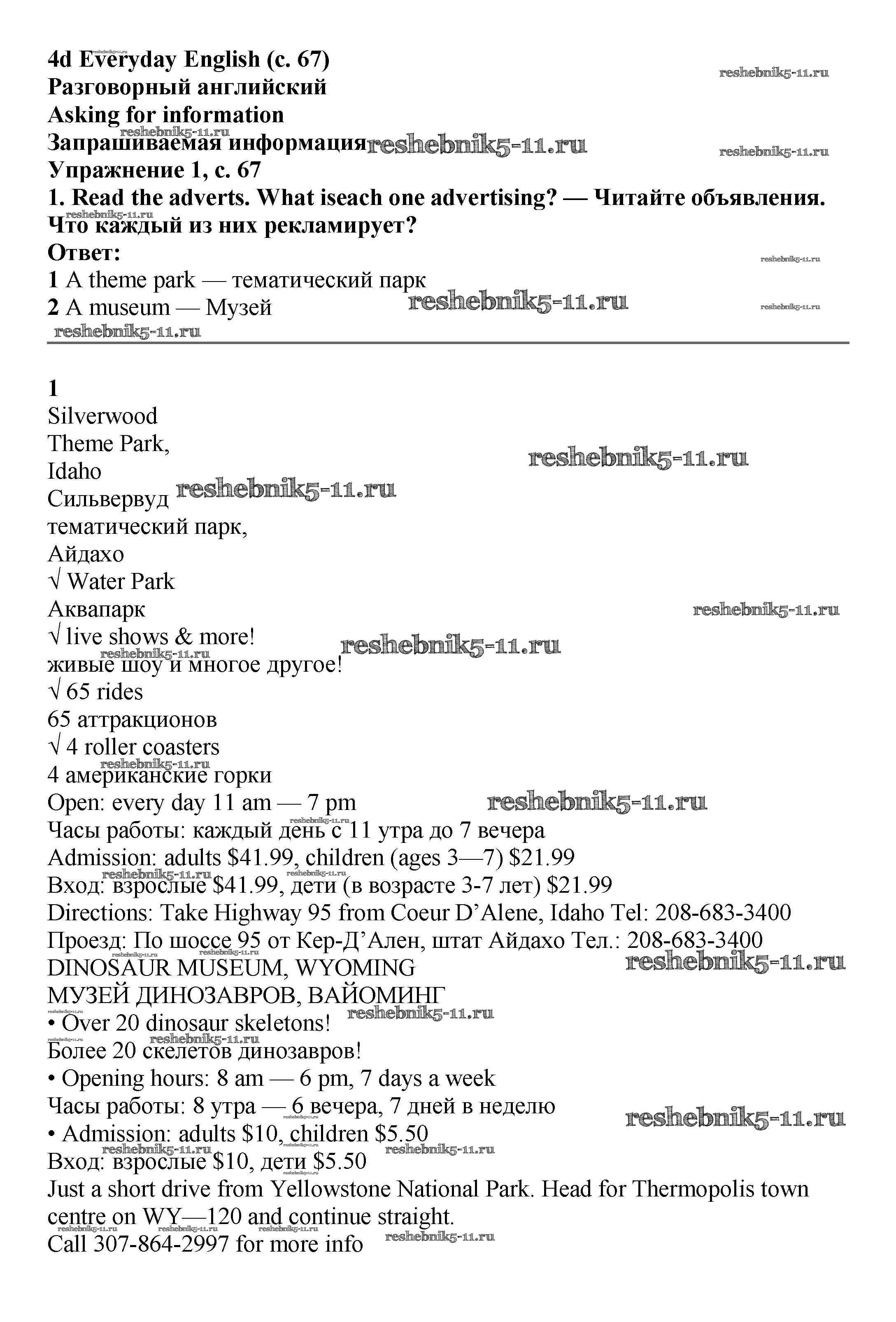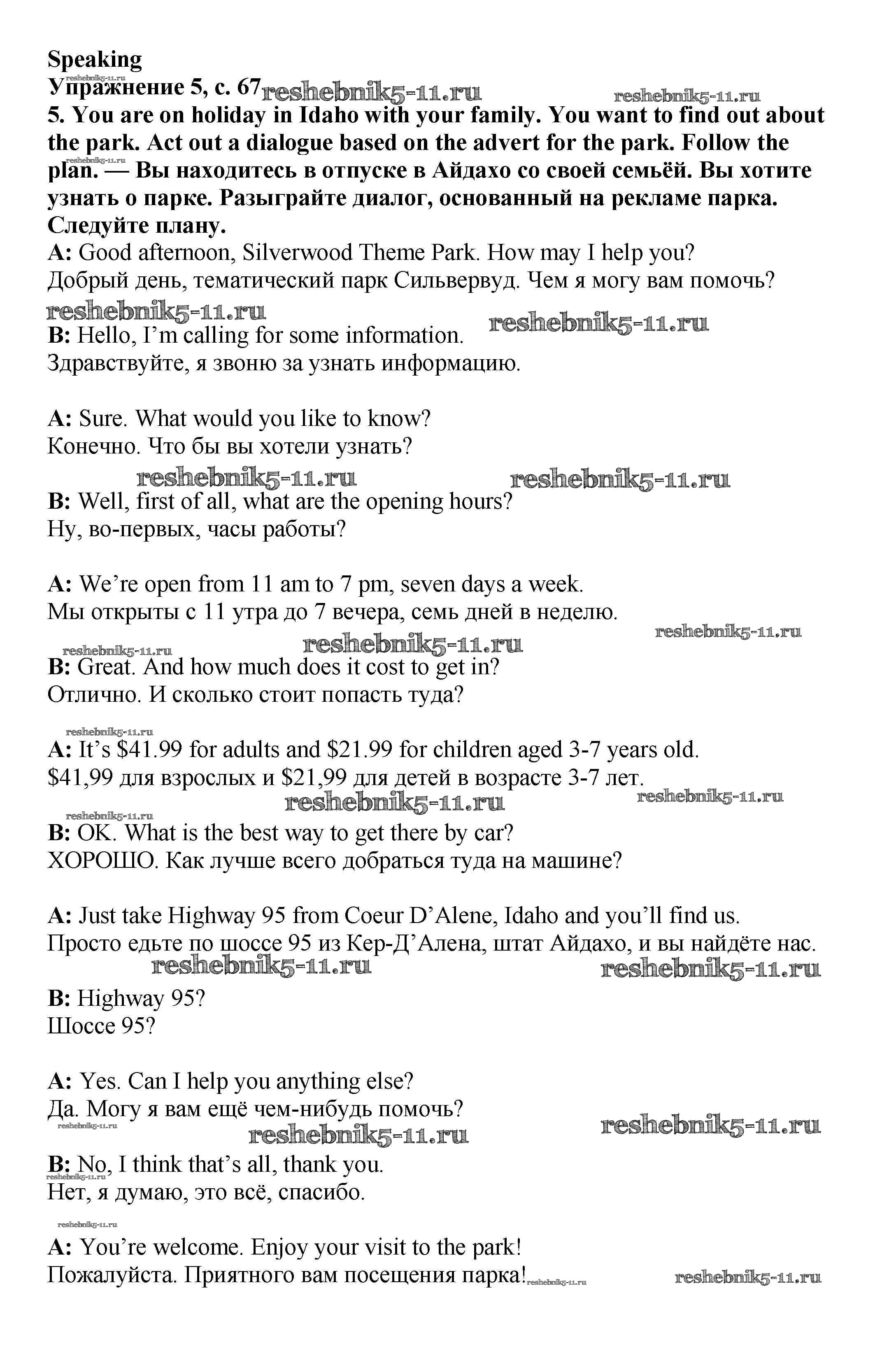Готовая домашняя работа с ответами по Английскому языку за 6 класс Баранова, Дули, Эванс, Копылова, Мильруд Учебник Starlight Углубленный уровень Просвещение 2017 ФГОС - Module 4. On holiday стр.67