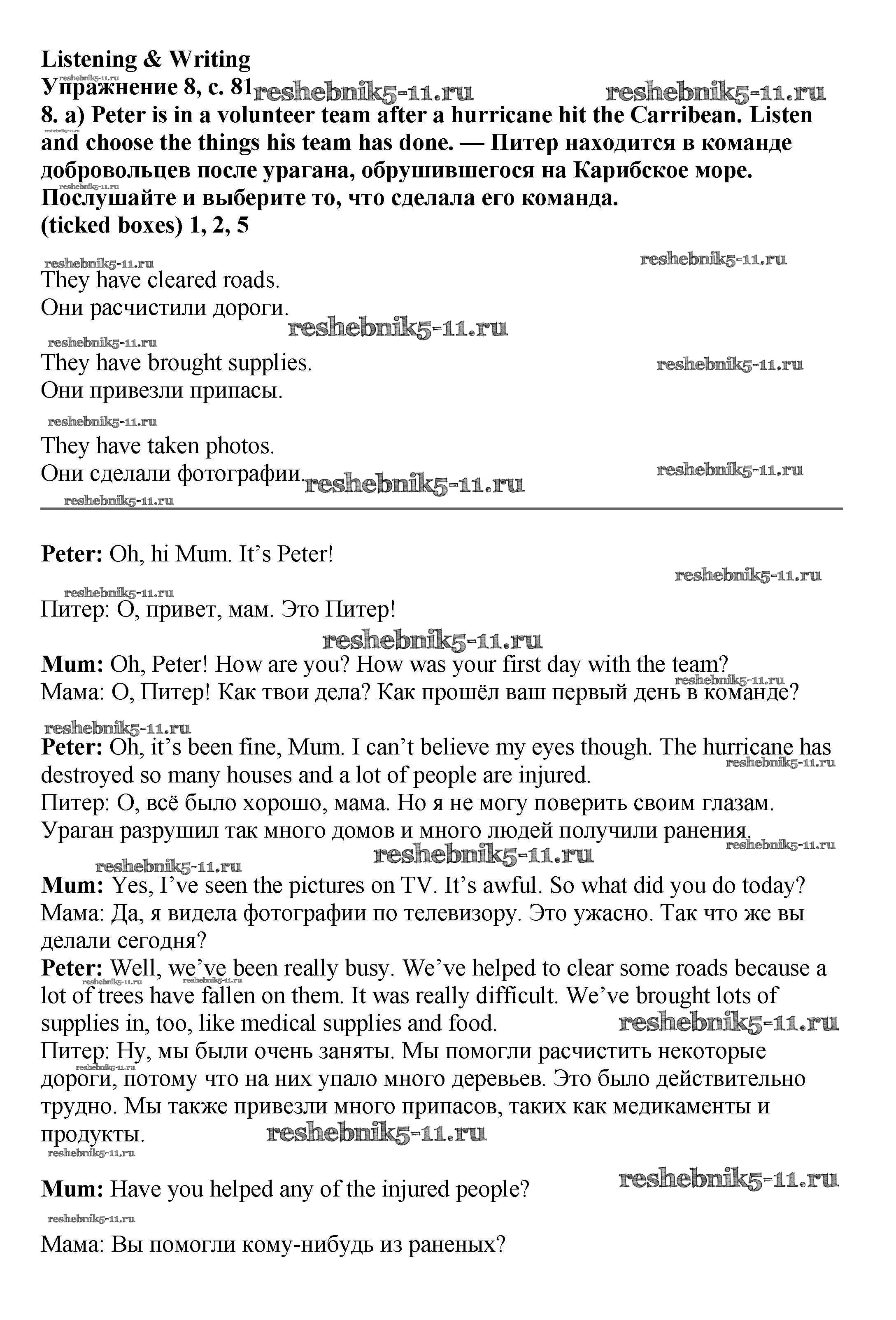 Готовая домашняя работа с ответами по Английскому языку за 6 класс Баранова, Дули, Эванс, Копылова, Мильруд Учебник Starlight Углубленный уровень Просвещение 2017 ФГОС - Module 5. Helping hands стр.80-81