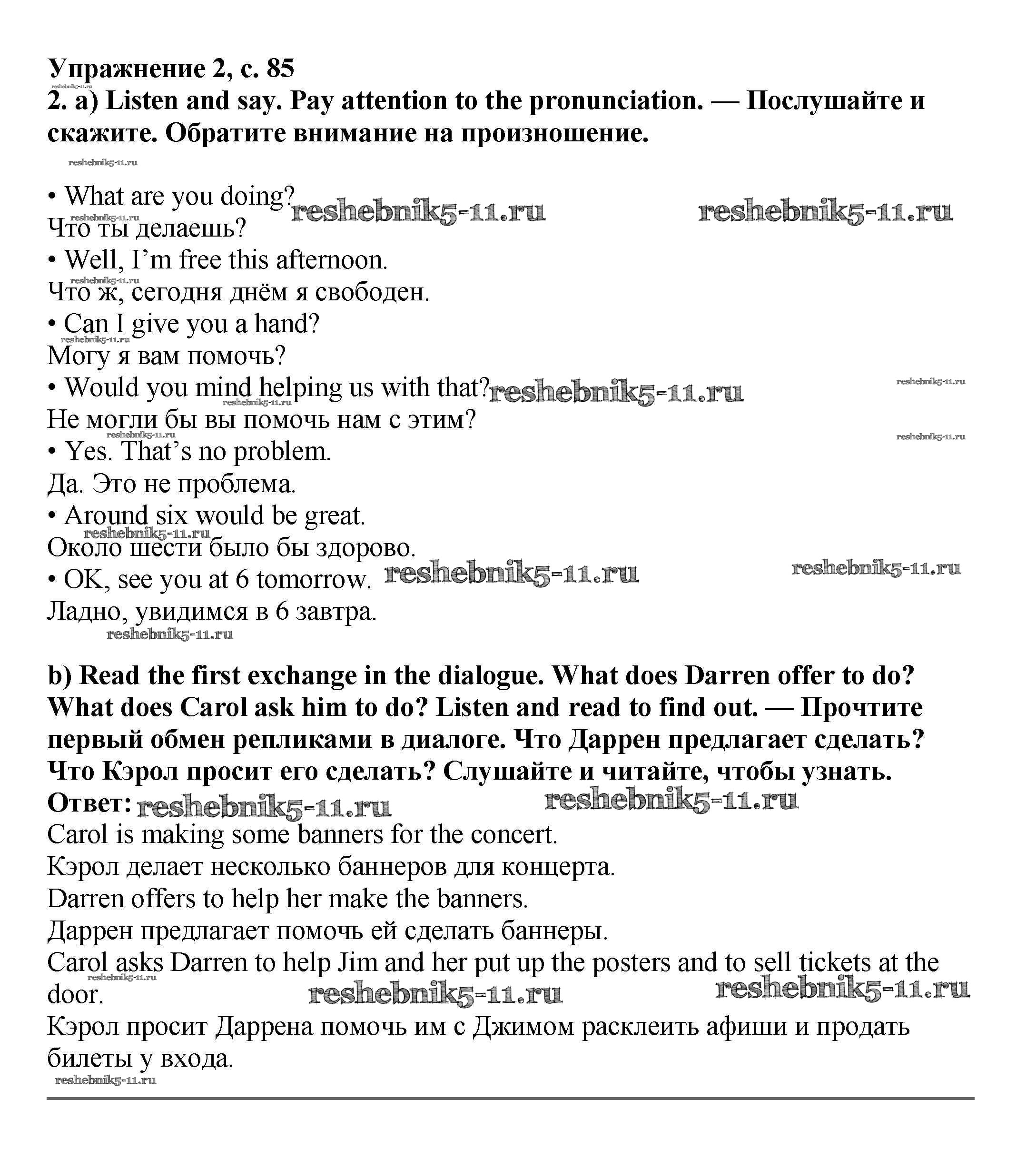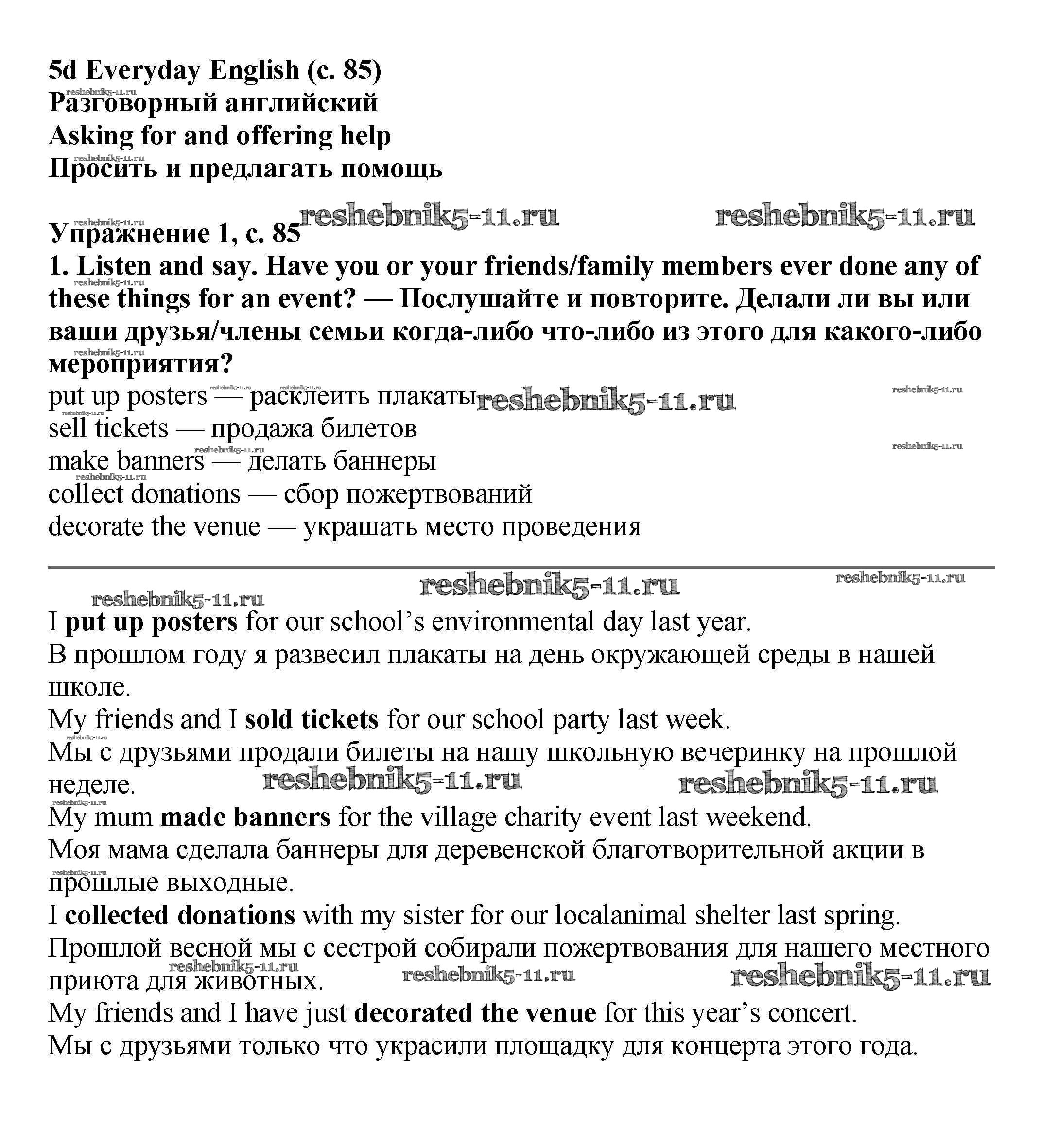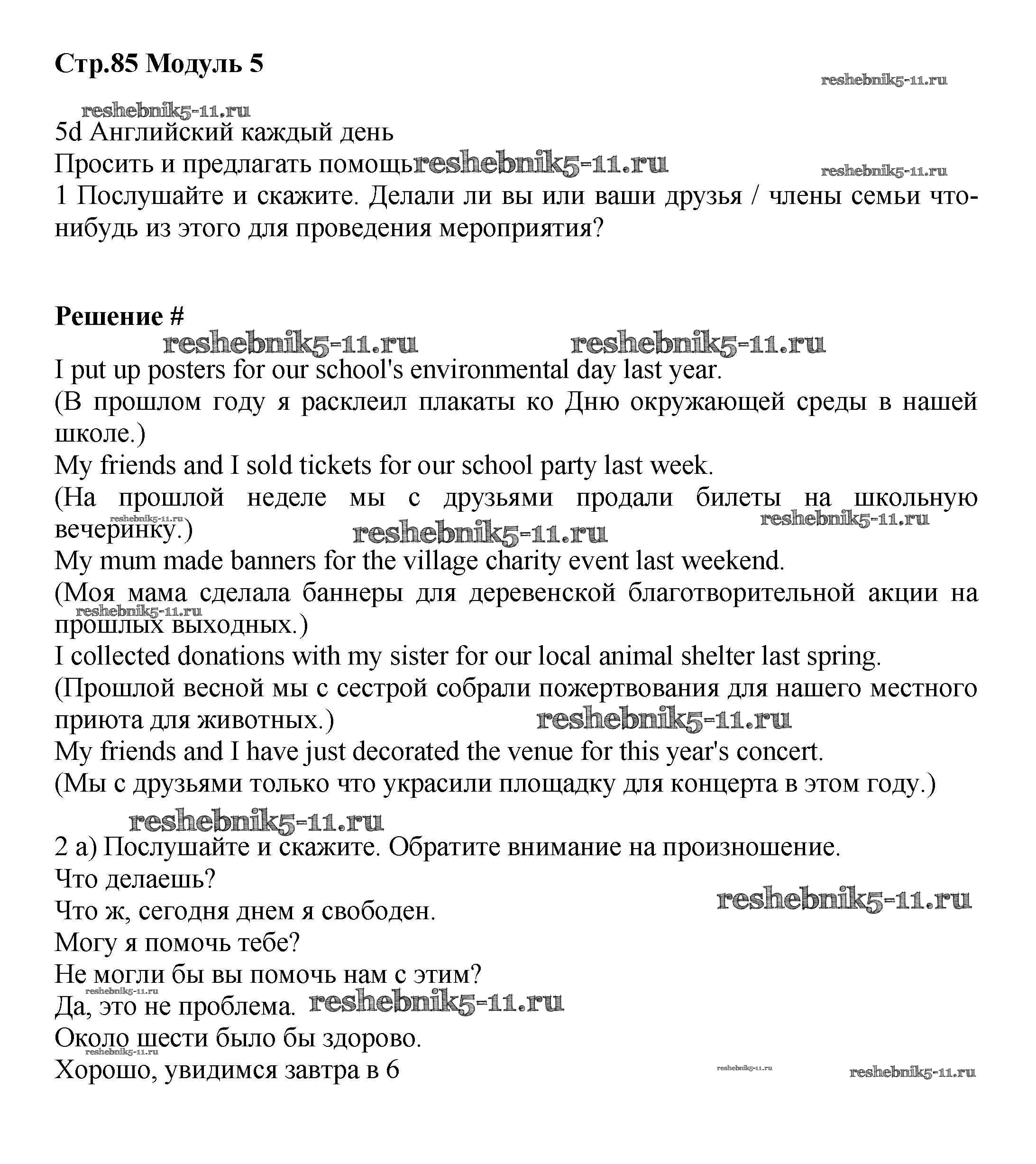 Готовая домашняя работа с ответами по Английскому языку за 6 класс Баранова, Дули, Эванс, Копылова, Мильруд Учебник Starlight Углубленный уровень Просвещение 2017 ФГОС - Module 5. Helping hands стр.85