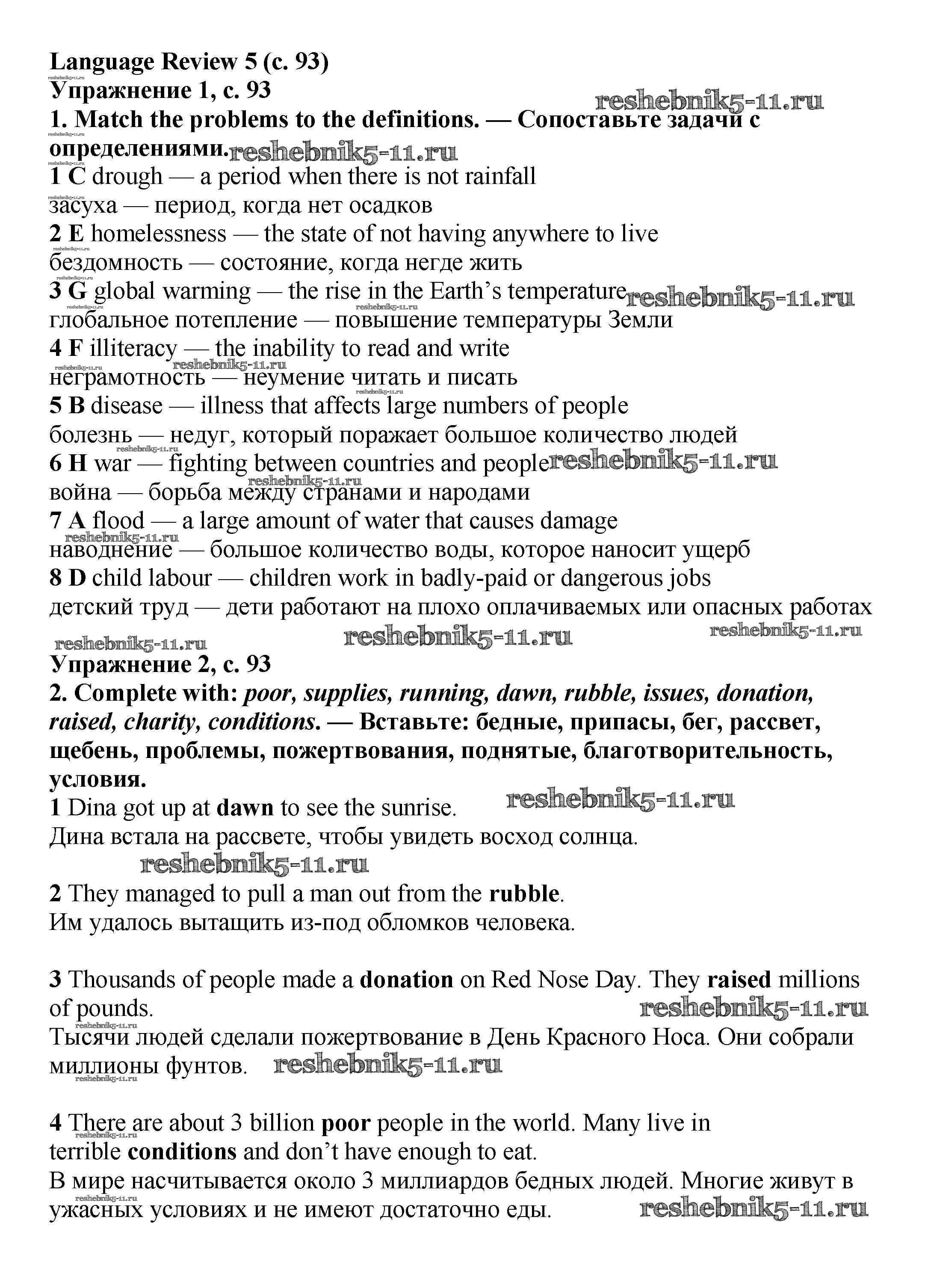 Готовая домашняя работа с ответами по Английскому языку за 6 класс Баранова, Дули, Эванс, Копылова, Мильруд Учебник Starlight Углубленный уровень Просвещение 2017 ФГОС - Module 5. Helping hands стр.93