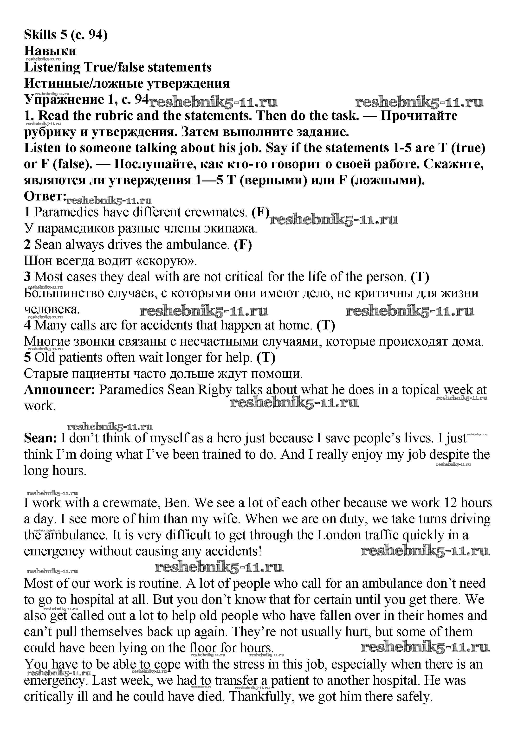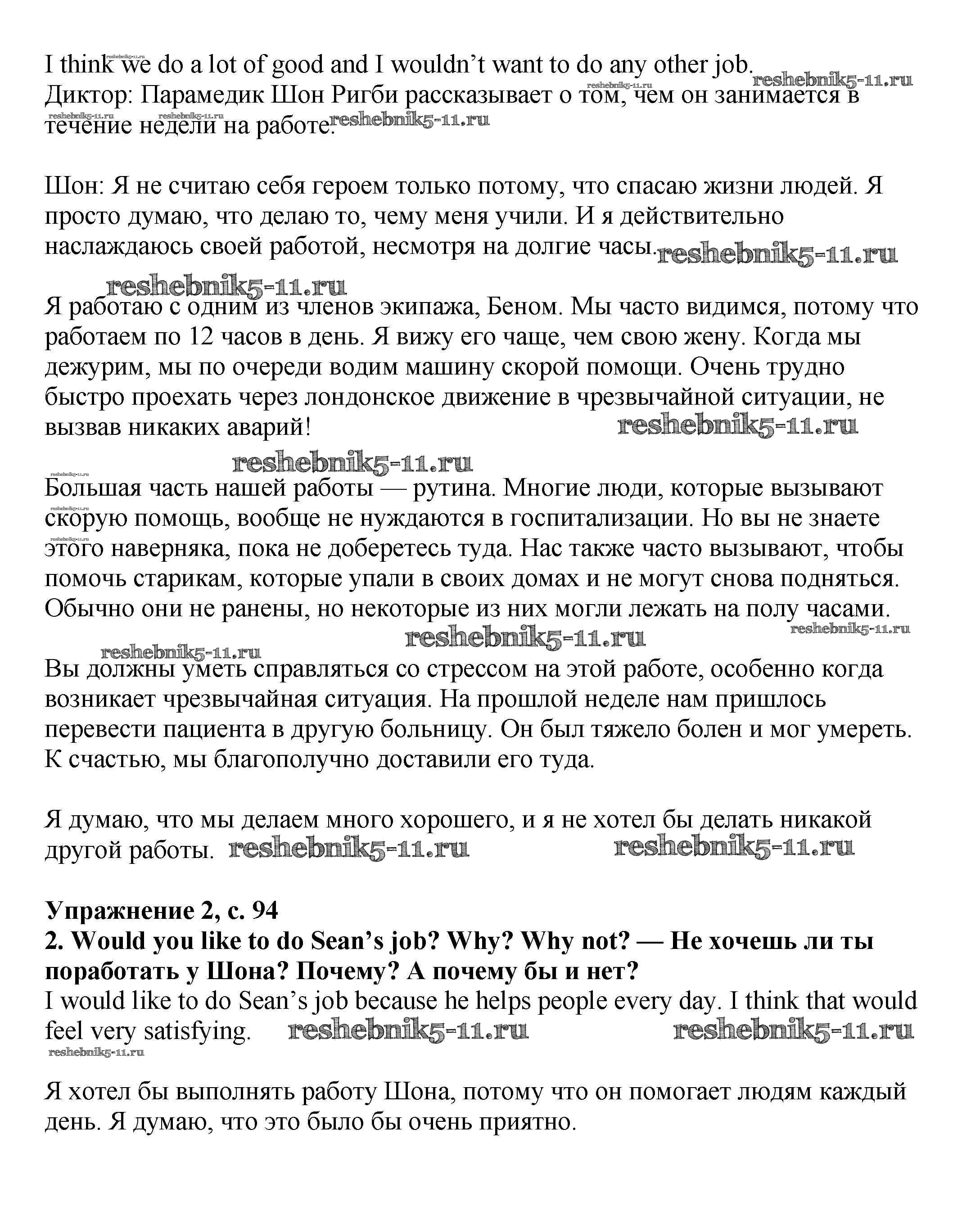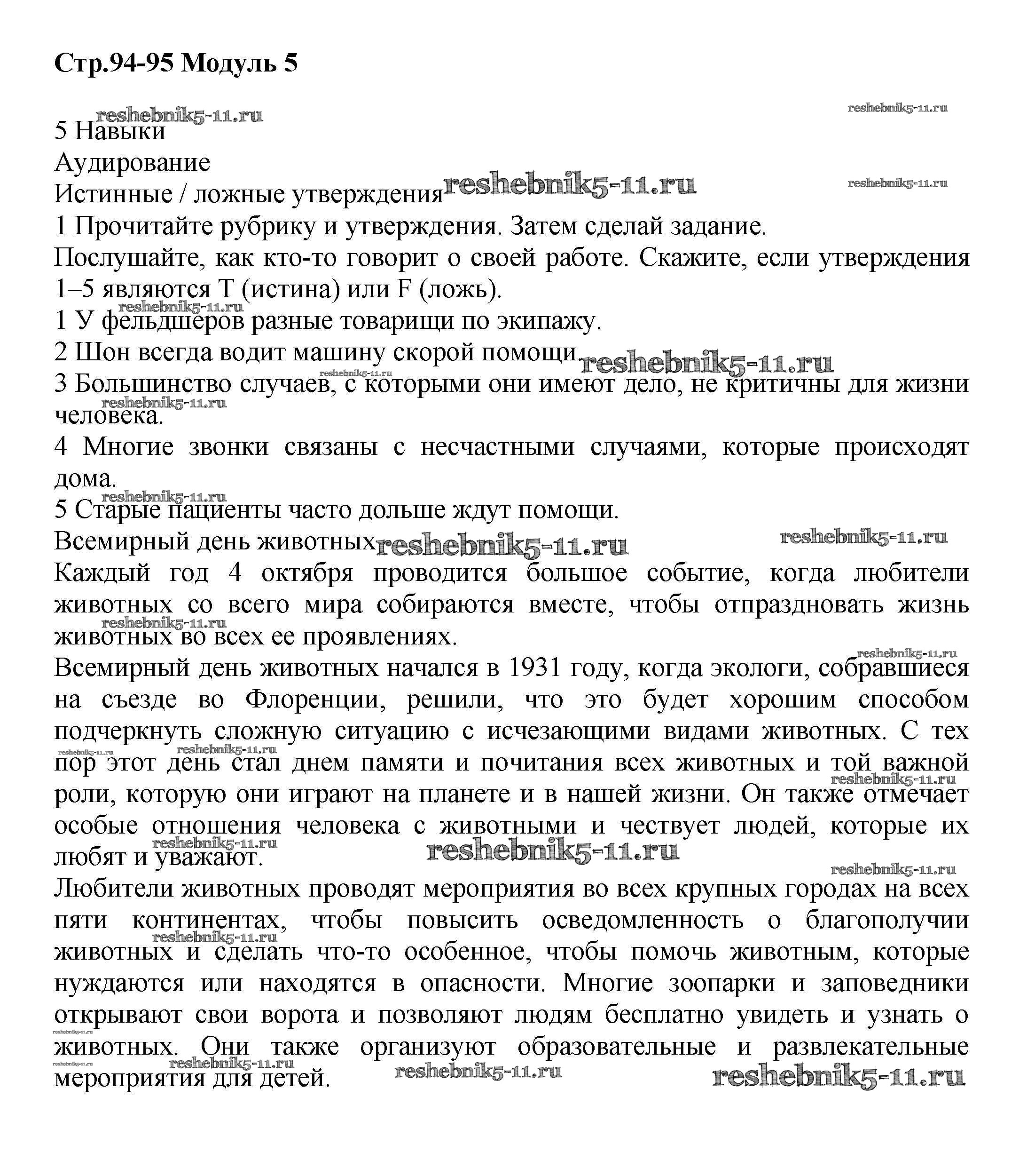 Готовая домашняя работа с ответами по Английскому языку за 6 класс Баранова, Дули, Эванс, Копылова, Мильруд Учебник Starlight Углубленный уровень Просвещение 2017 ФГОС - Module 5. Helping hands стр.94-95