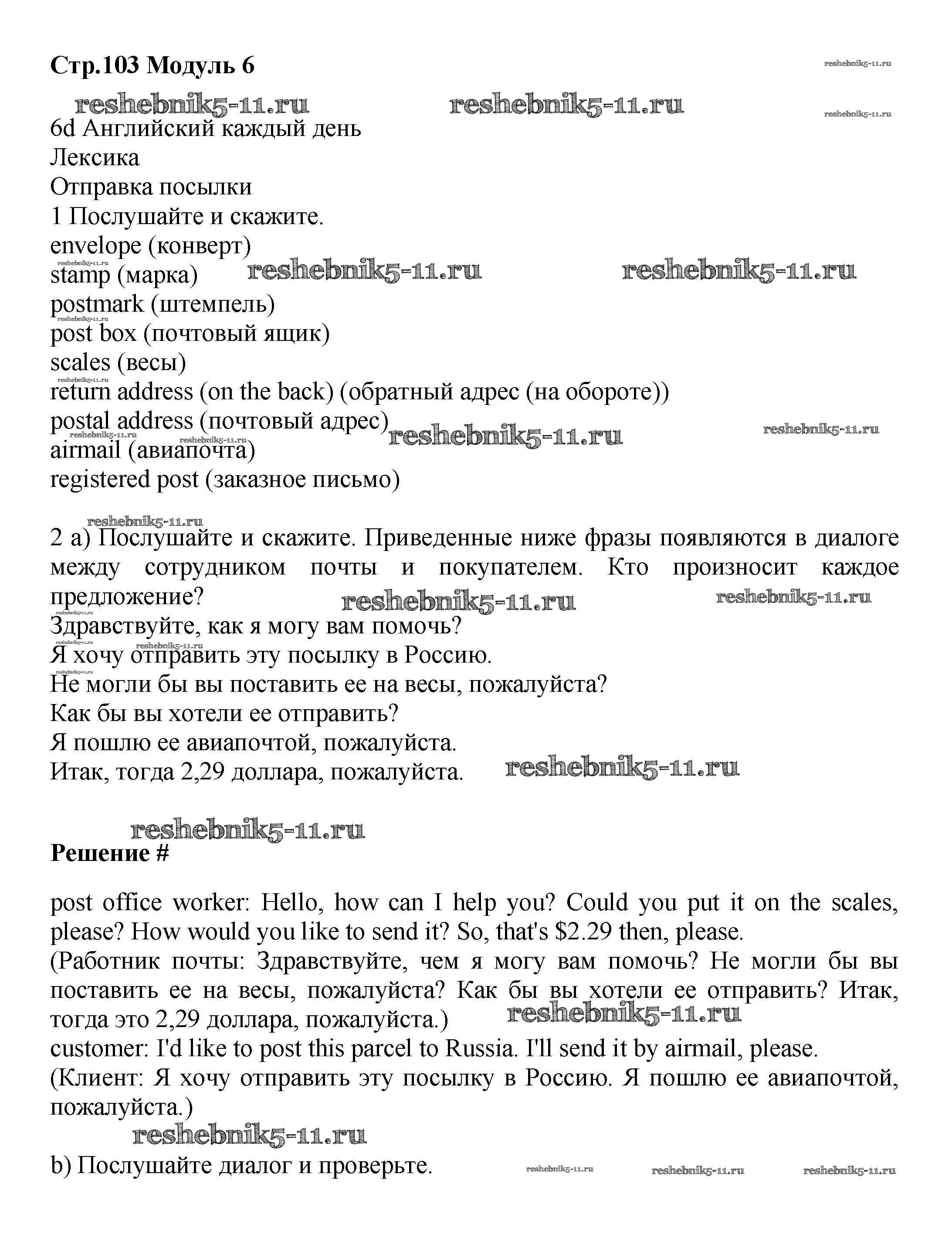 Английский язык за 6 класс Баранова Учебник Starlight Углубленный уровень Просвещение module 6 стр.103