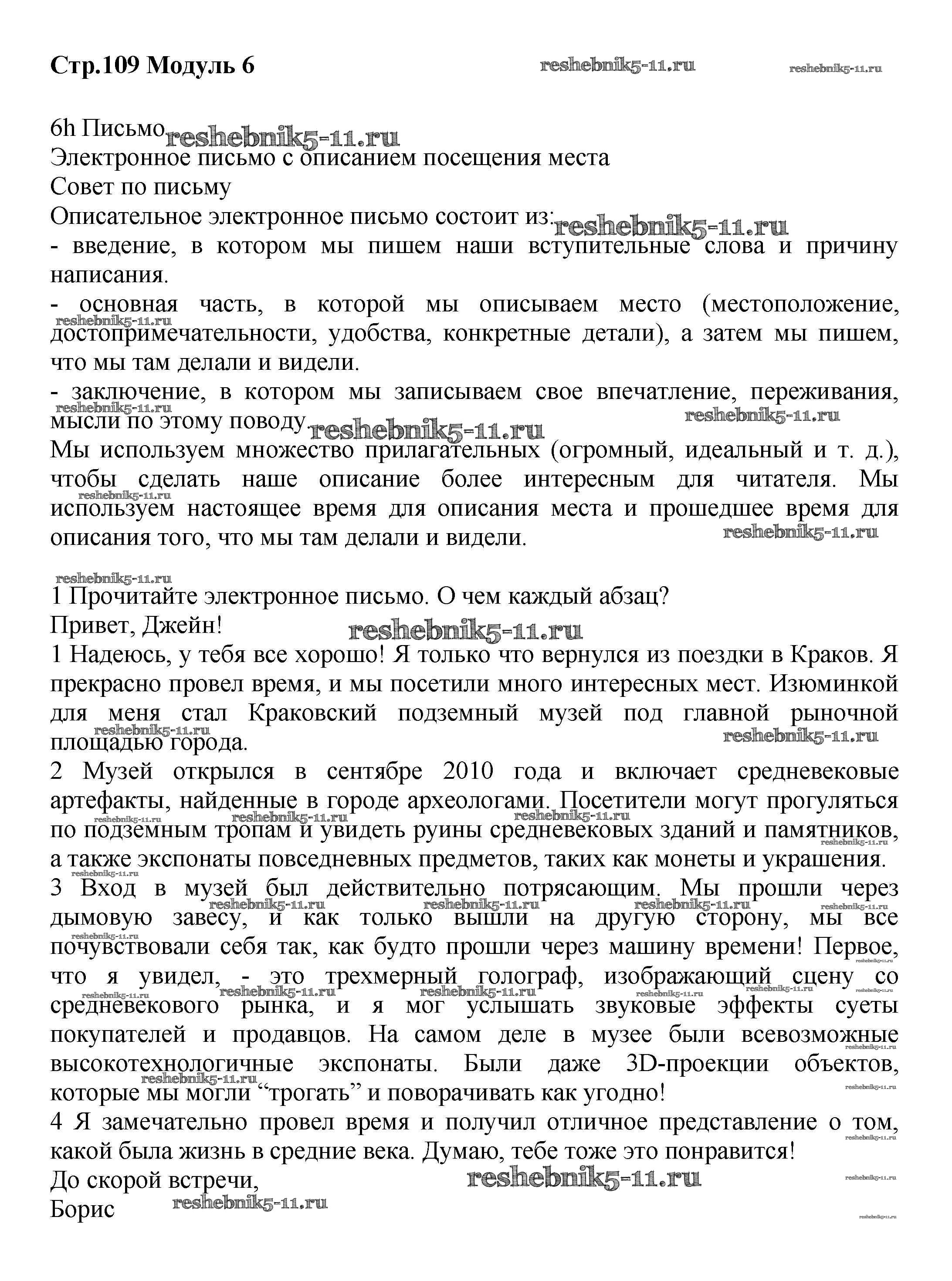 Английский язык за 6 класс Баранова Учебник Starlight Углубленный уровень Просвещение module 6 стр.109