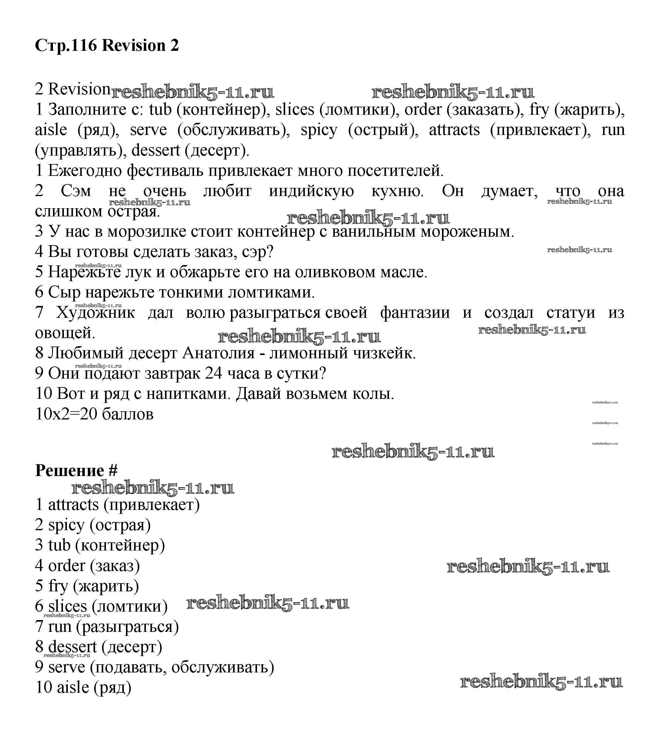 Готовая домашняя работа с ответами по Английскому языку за 6 класс Баранова, Дули, Эванс, Копылова, Мильруд Учебник Starlight Углубленный уровень Просвещение 2017 ФГОС - Revision стр.116