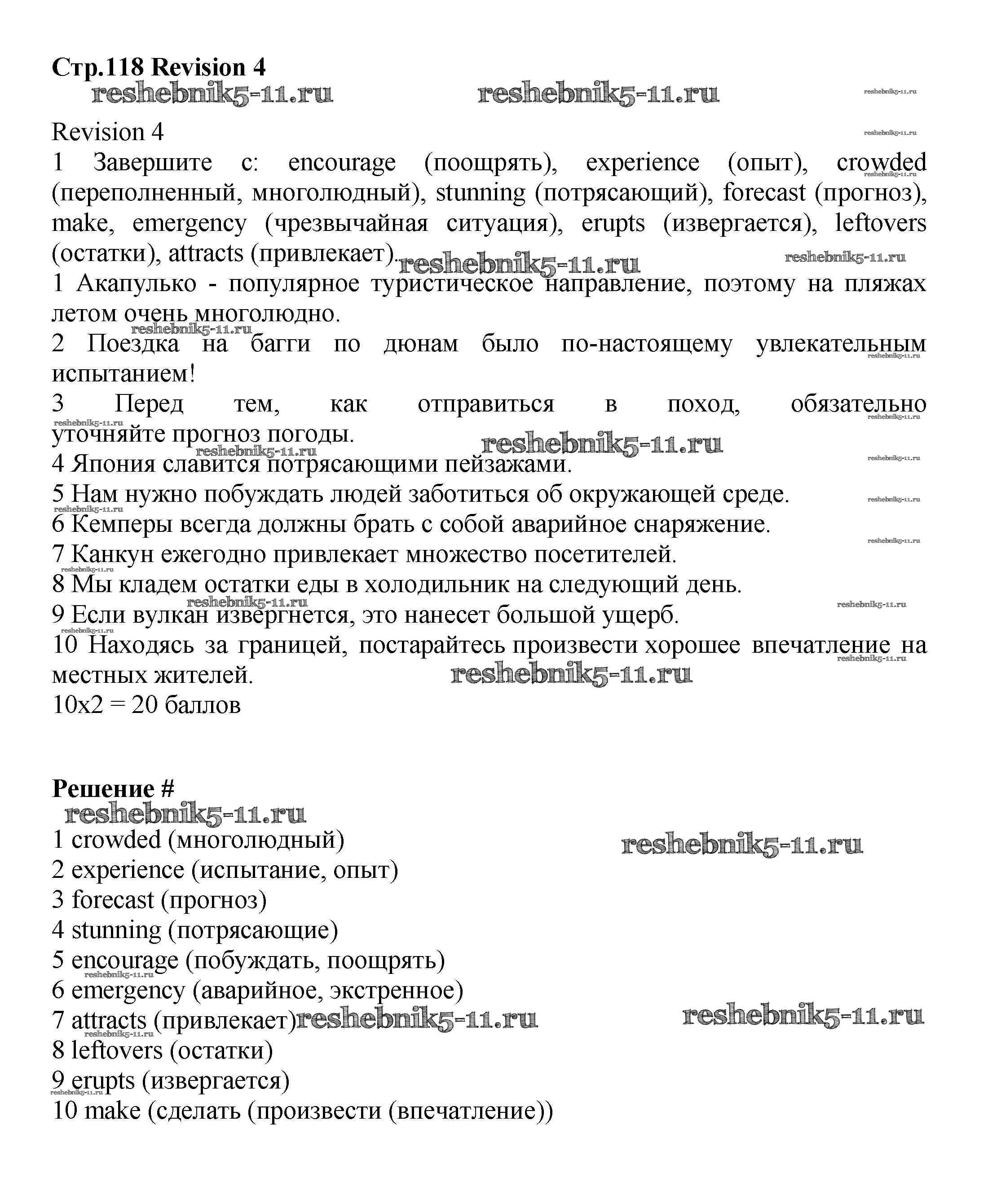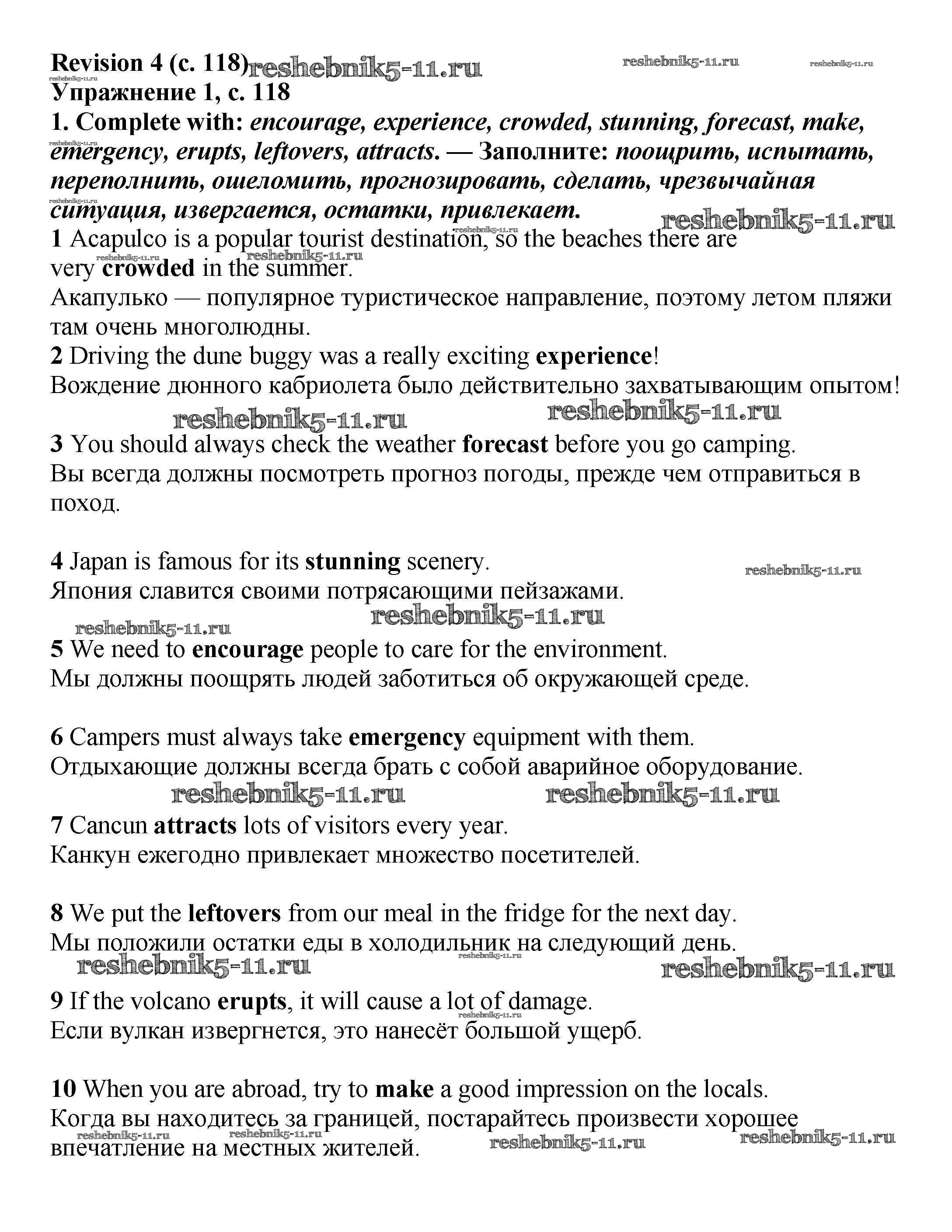 Готовая домашняя работа с ответами по Английскому языку за 6 класс Баранова, Дули, Эванс, Копылова, Мильруд Учебник Starlight Углубленный уровень Просвещение 2017 ФГОС - Revision стр.118