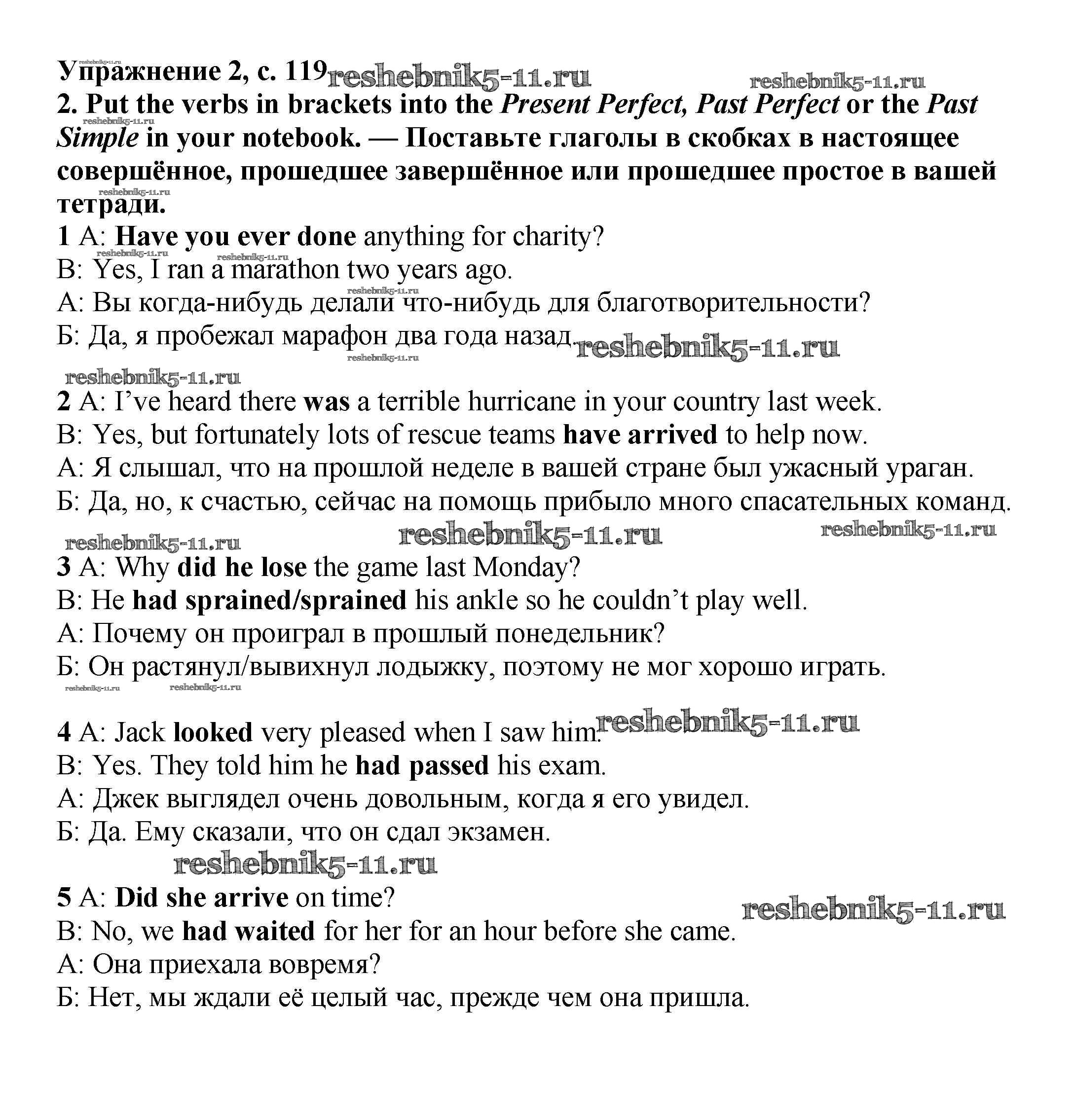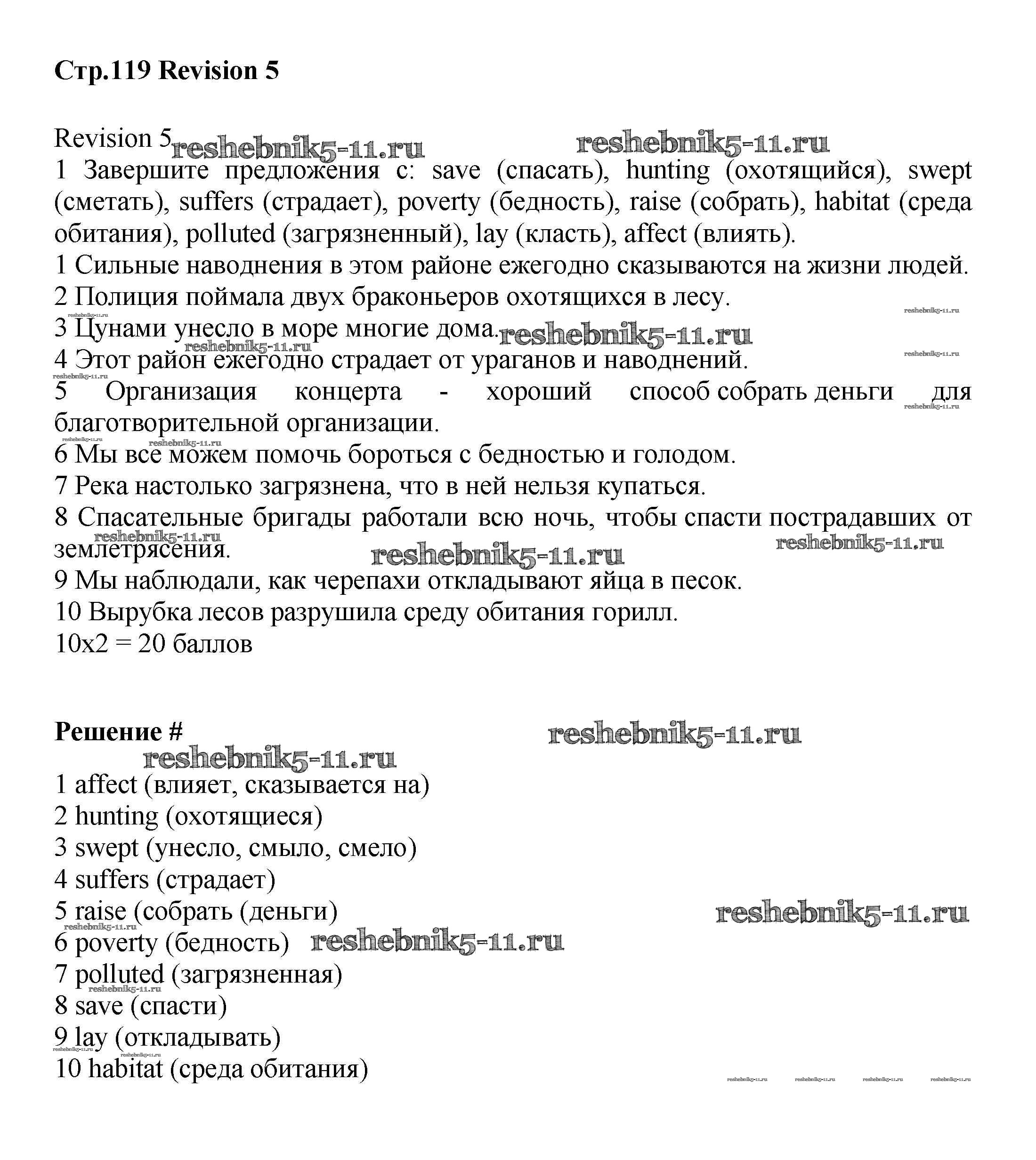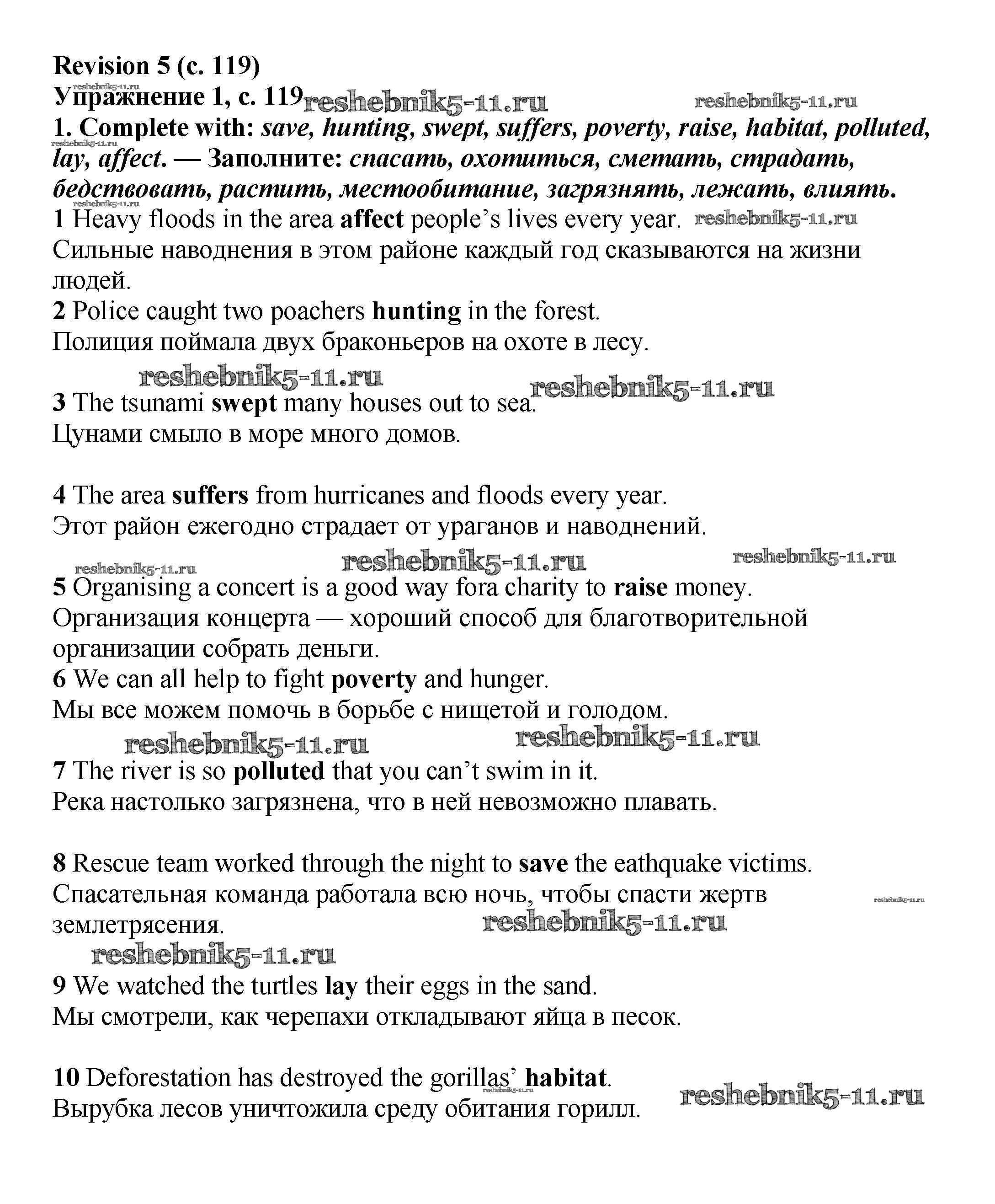 Готовая домашняя работа с ответами по Английскому языку за 6 класс Баранова, Дули, Эванс, Копылова, Мильруд Учебник Starlight Углубленный уровень Просвещение 2017 ФГОС - Revision стр.119