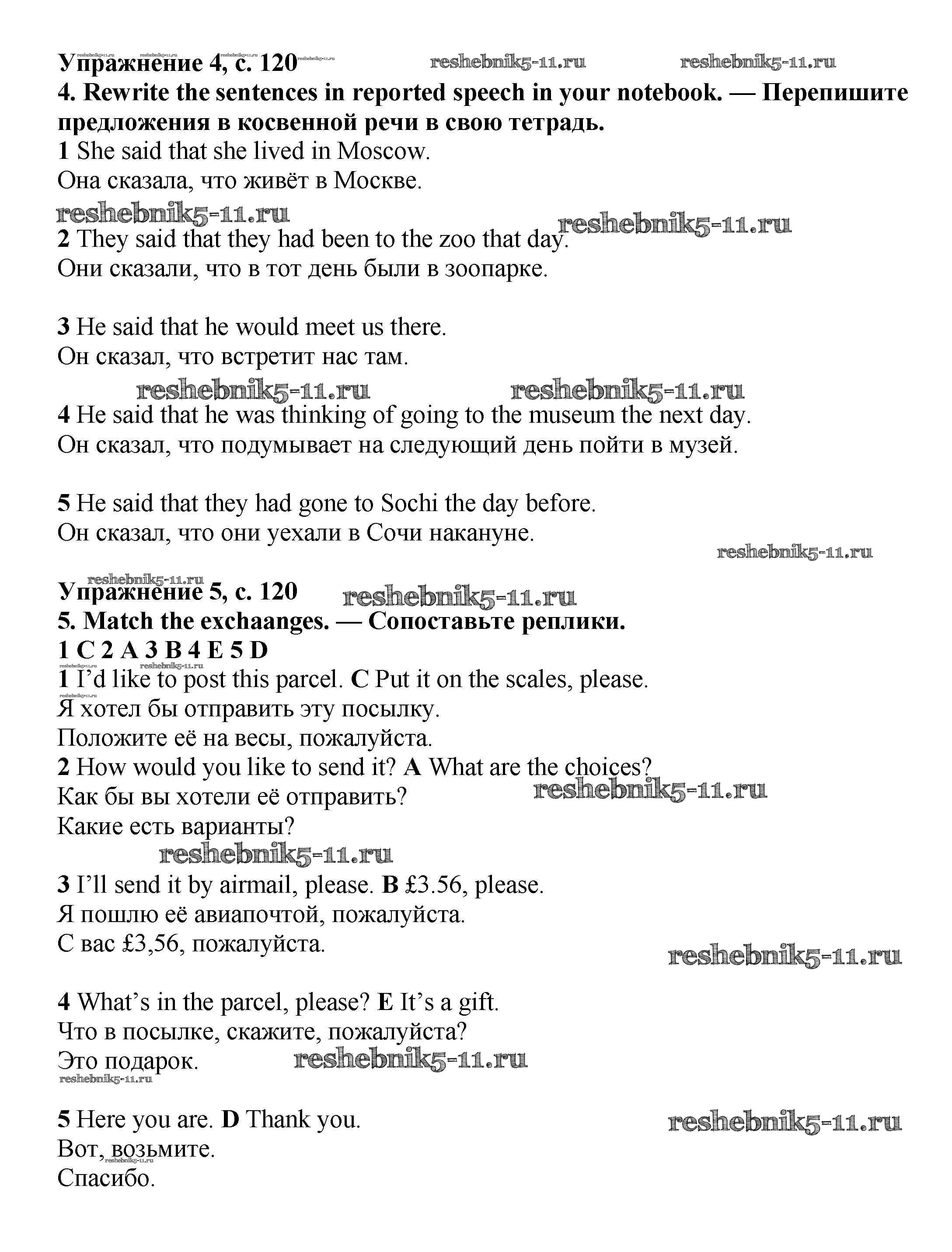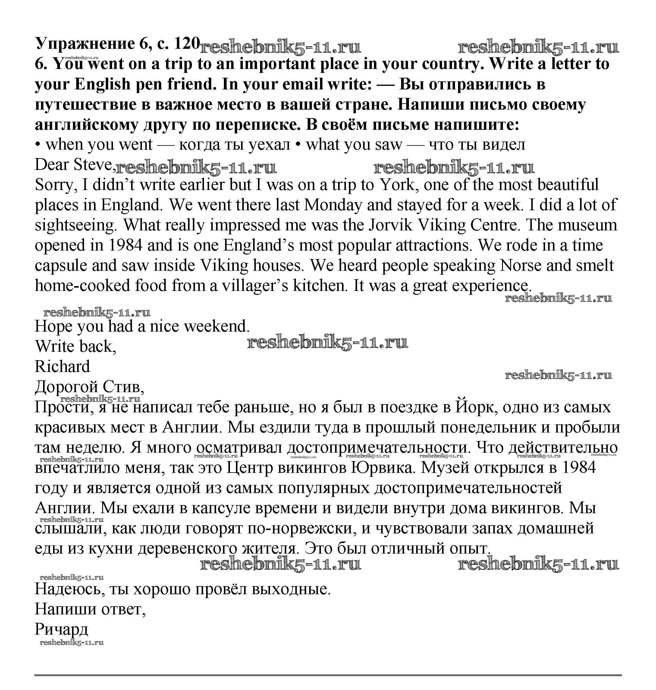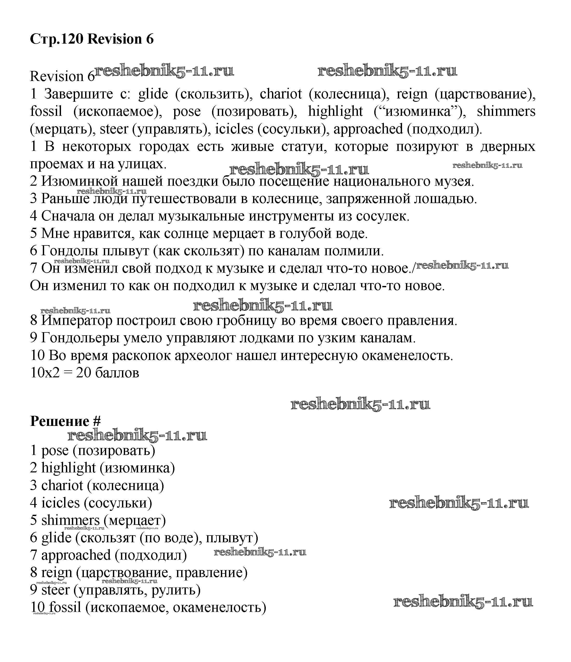 Готовая домашняя работа с ответами по Английскому языку за 6 класс Баранова, Дули, Эванс, Копылова, Мильруд Учебник Starlight Углубленный уровень Просвещение 2017 ФГОС - Revision стр.120