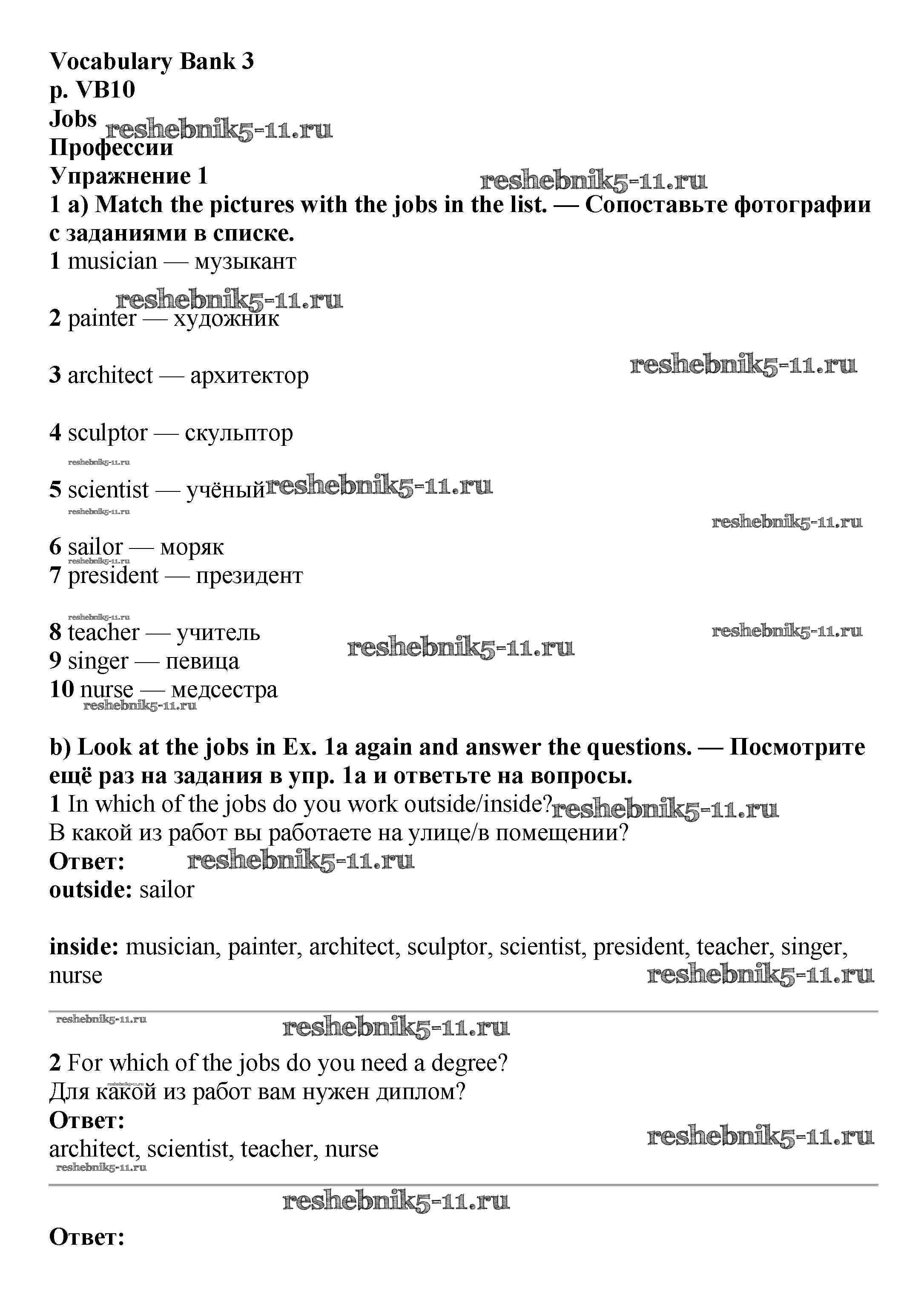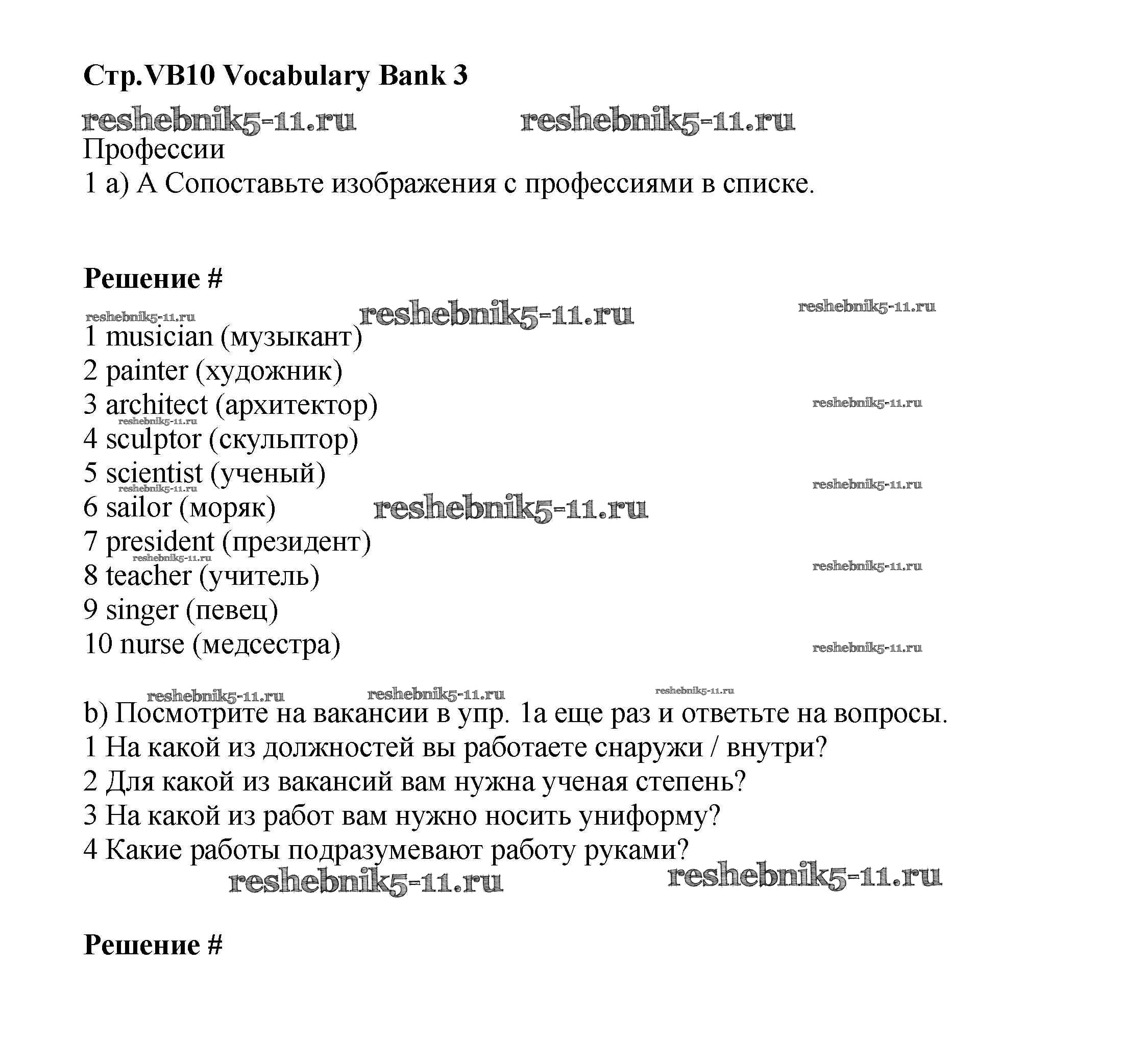 Готовая домашняя работа с ответами по Английскому языку за 6 класс Баранова, Дули, Эванс, Копылова, Мильруд Учебник Starlight Углубленный уровень Просвещение 2017 ФГОС - Vocabulary Bank VB10