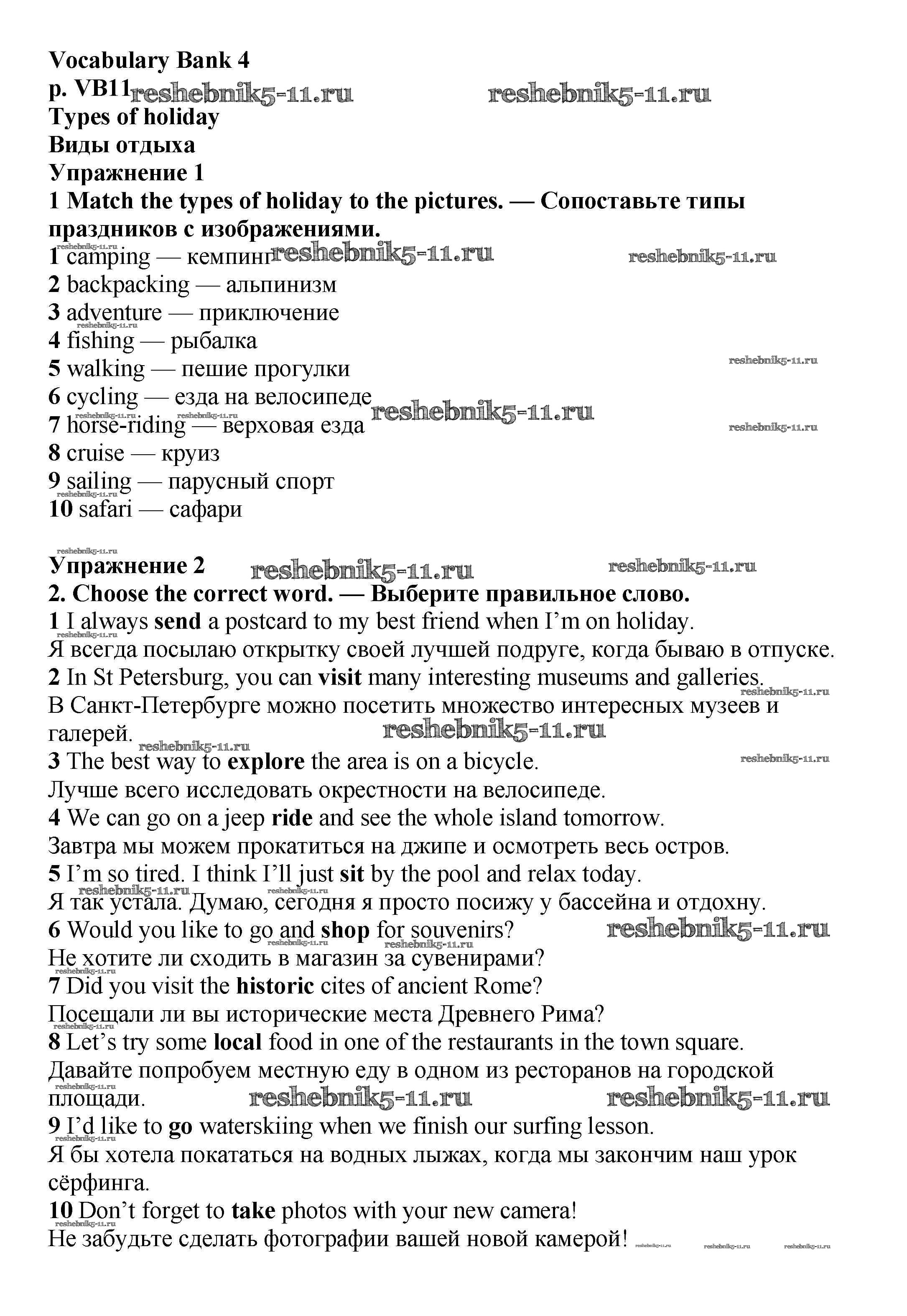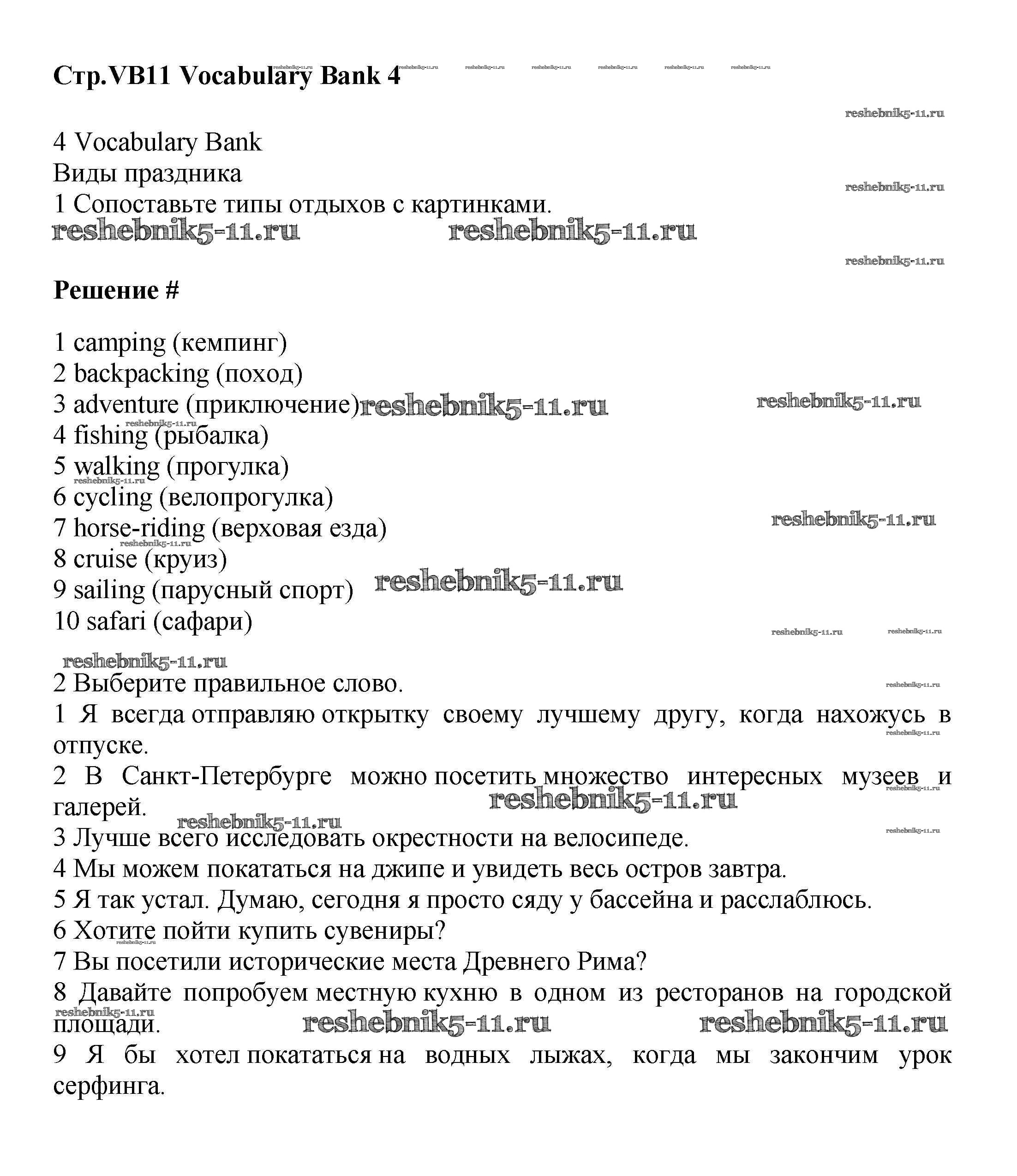 Готовая домашняя работа с ответами по Английскому языку за 6 класс Баранова, Дули, Эванс, Копылова, Мильруд Учебник Starlight Углубленный уровень Просвещение 2017 ФГОС - Vocabulary Bank VB11