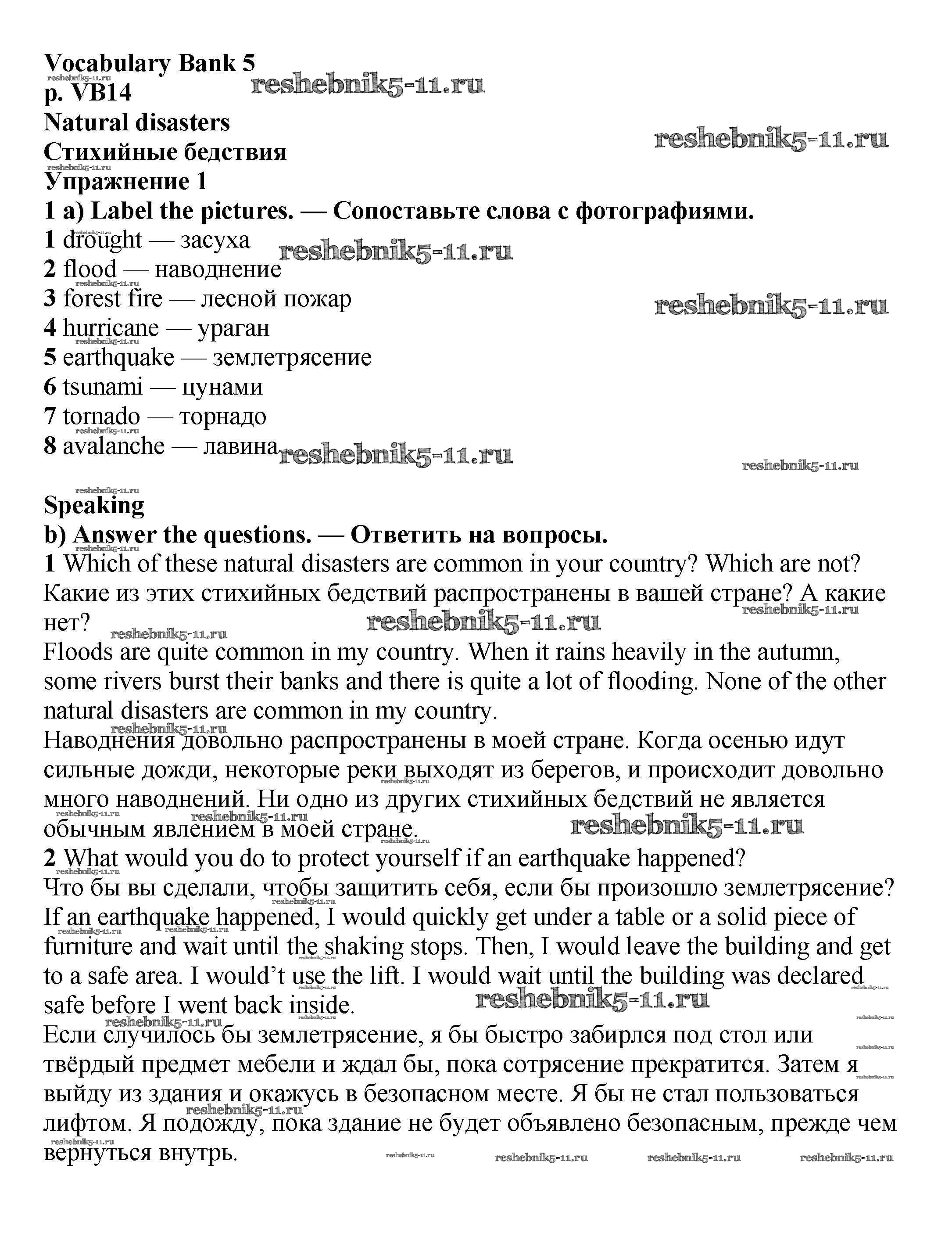 Готовая домашняя работа с ответами по Английскому языку за 6 класс Баранова, Дули, Эванс, Копылова, Мильруд Учебник Starlight Углубленный уровень Просвещение 2017 ФГОС - Vocabulary Bank VB14