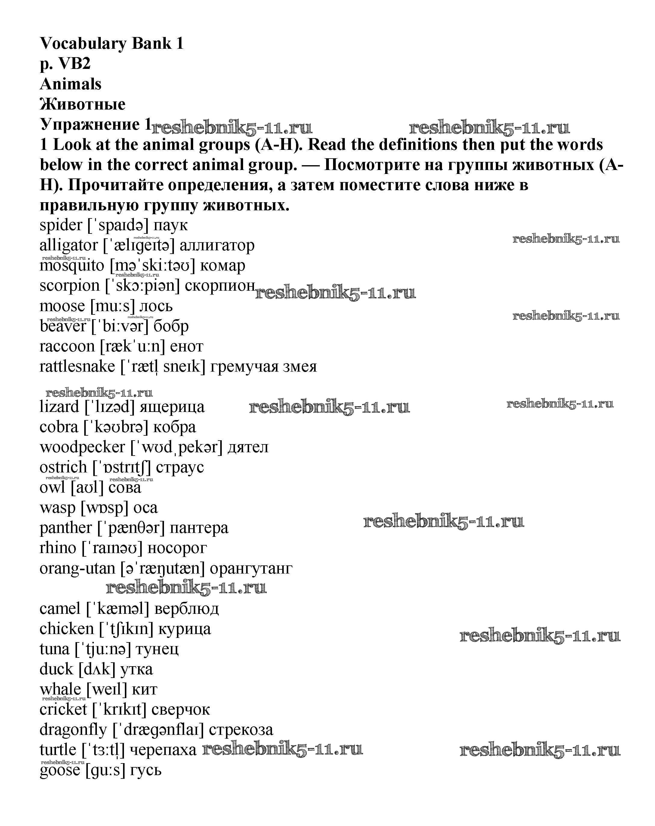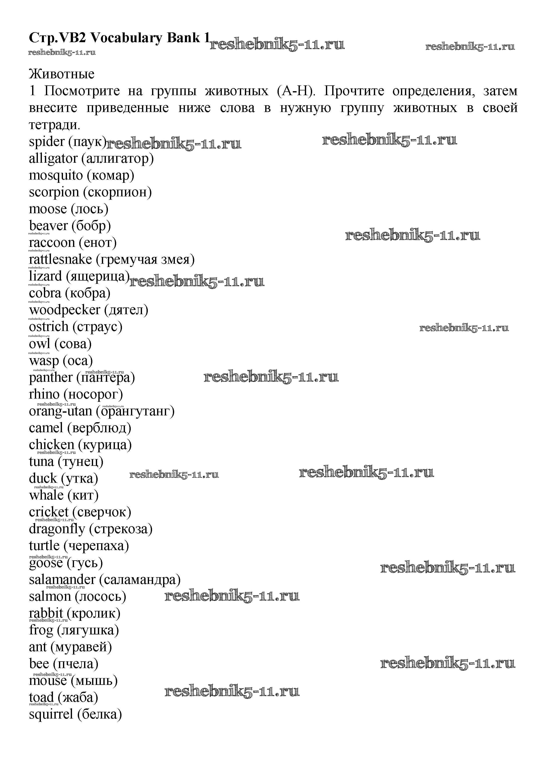 Решебник №1 / vocabulary bank / VB2