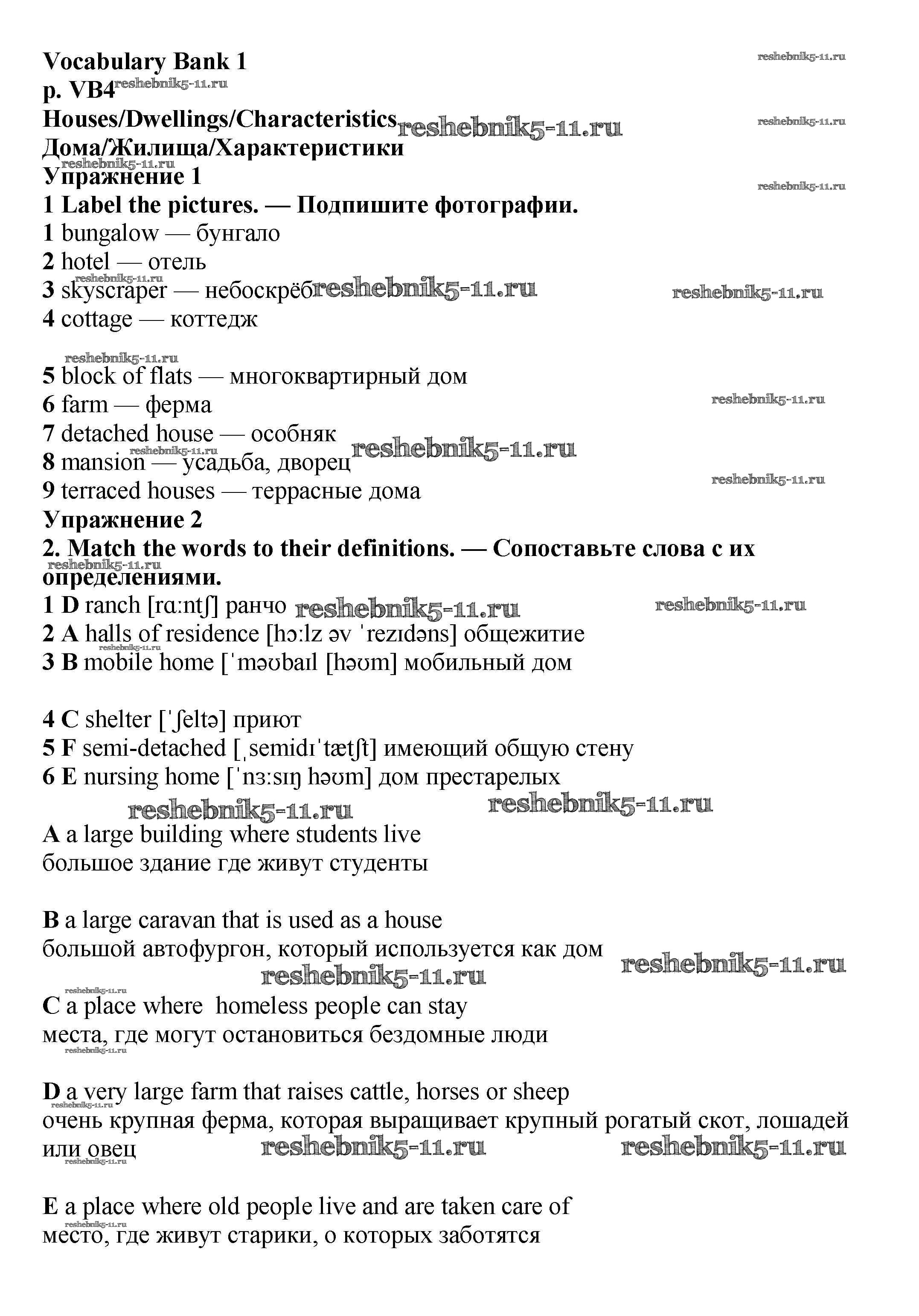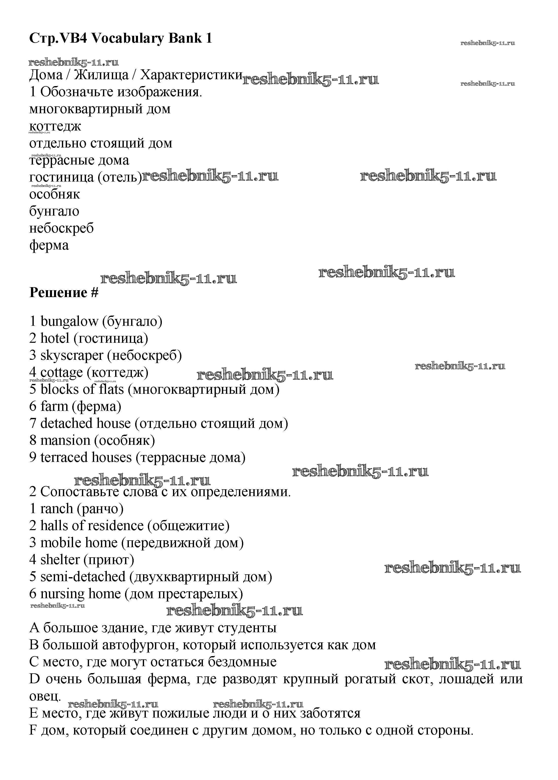 Решебник №1 / vocabulary bank / VB4