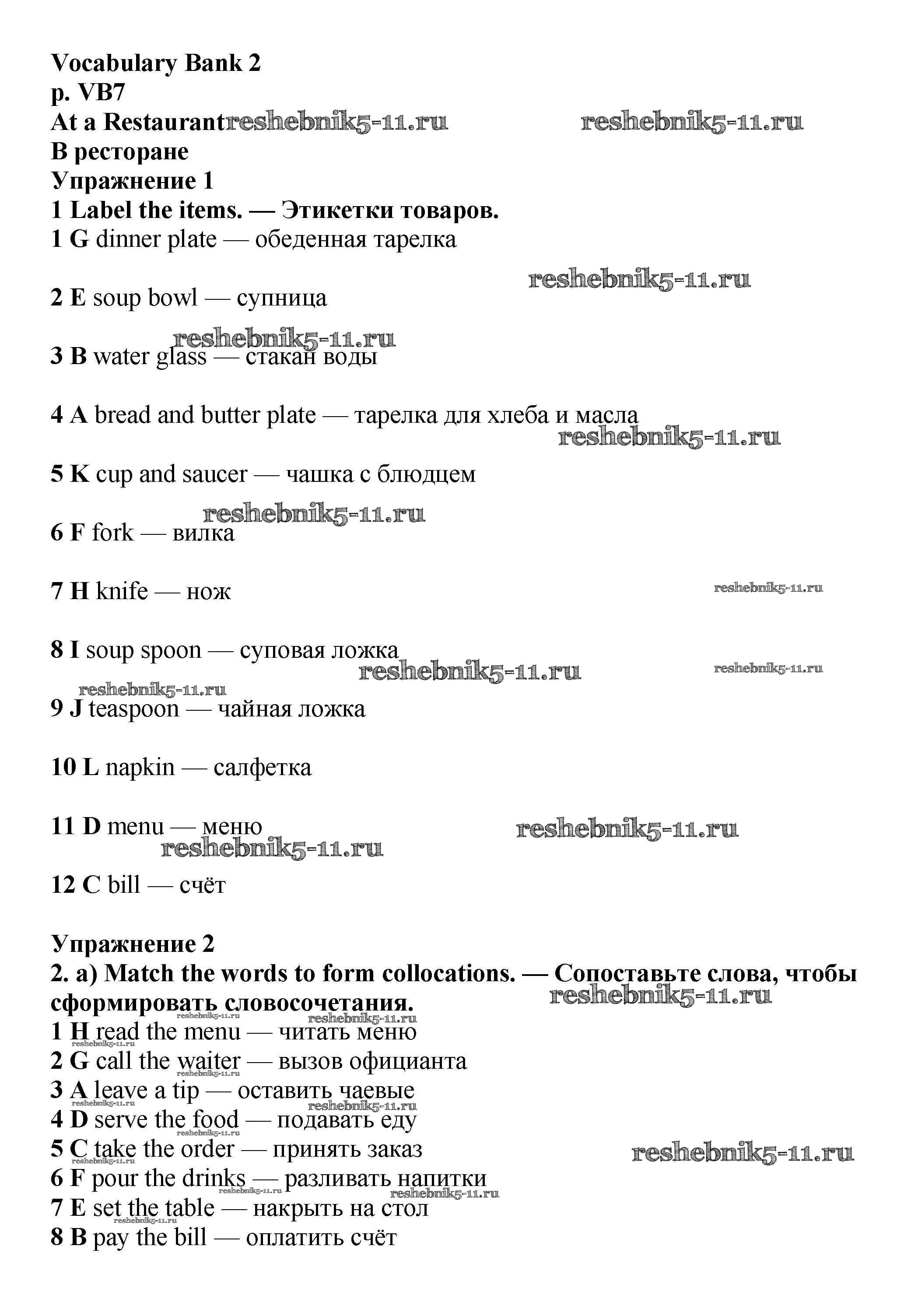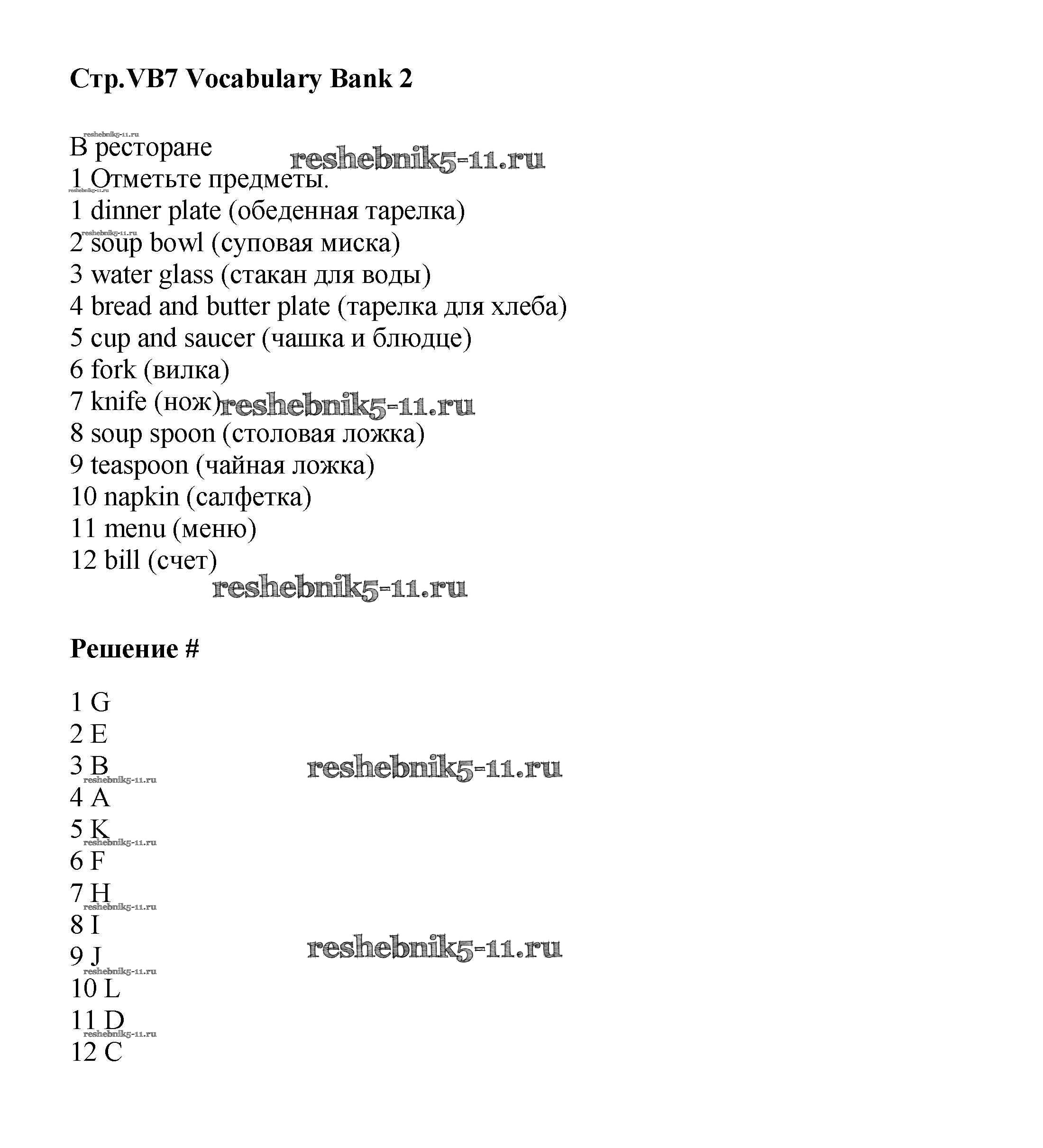 Готовая домашняя работа с ответами по Английскому языку за 6 класс Баранова, Дули, Эванс, Копылова, Мильруд Учебник Starlight Углубленный уровень Просвещение 2017 ФГОС - Vocabulary Bank VB7