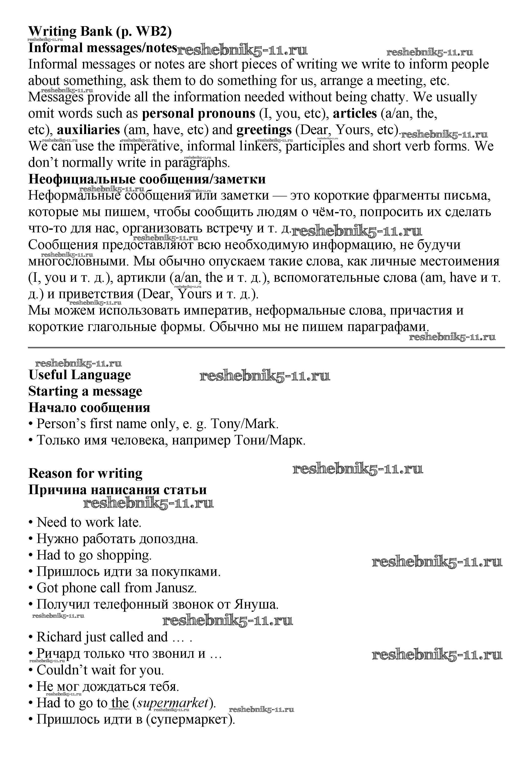 Готовая домашняя работа с ответами по Английскому языку за 6 класс Баранова, Дули, Эванс, Копылова, Мильруд Учебник Starlight Углубленный уровень Просвещение 2017 ФГОС - Writing Bank WB2