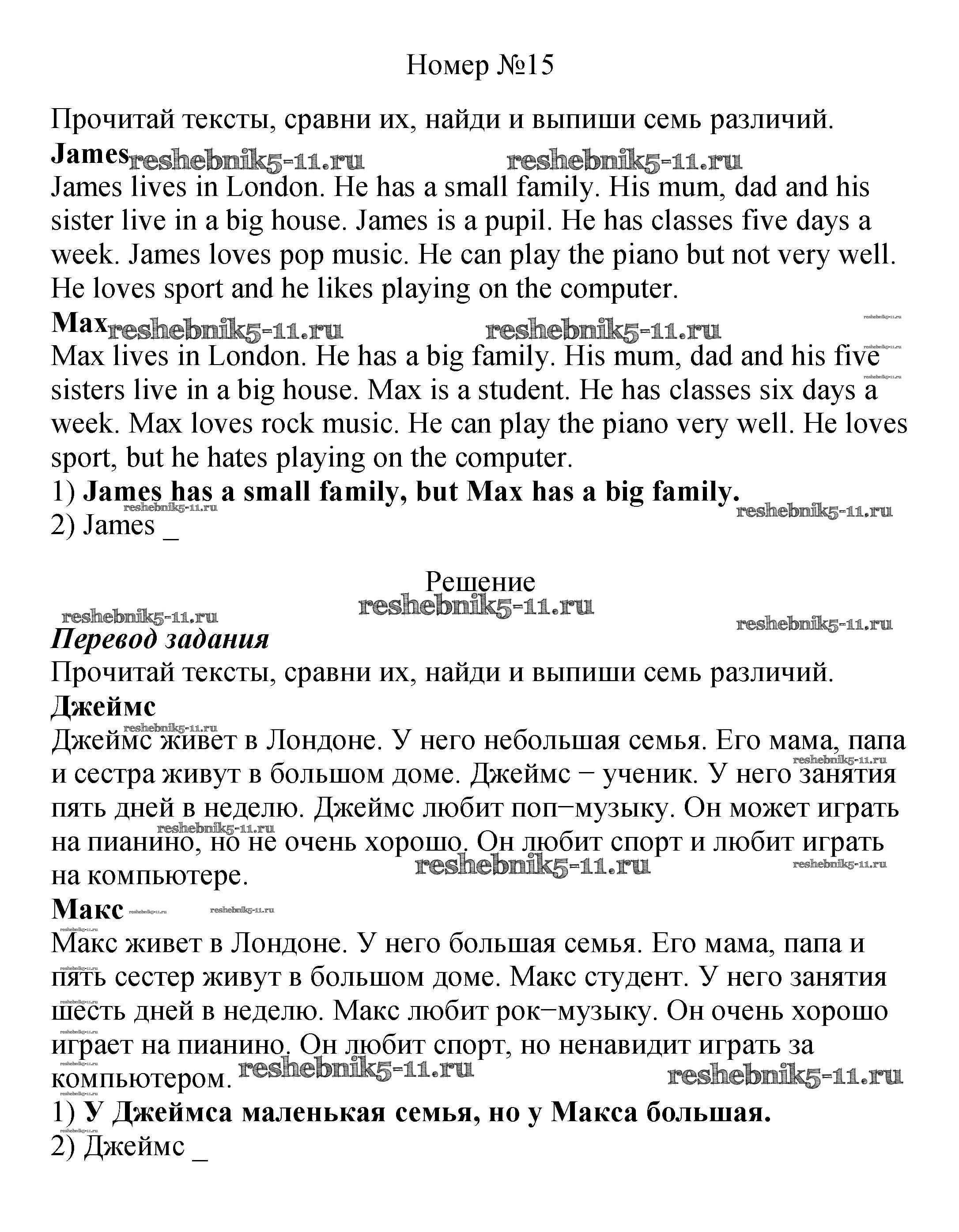 Готовая домашняя работа с ответами по Английскому языку за 6 класс Афанасьева, Михеева Рабочая тетрадь Новый курс Часть 1, 2 Дрофа 2017 ФГОС - Unit 1 15