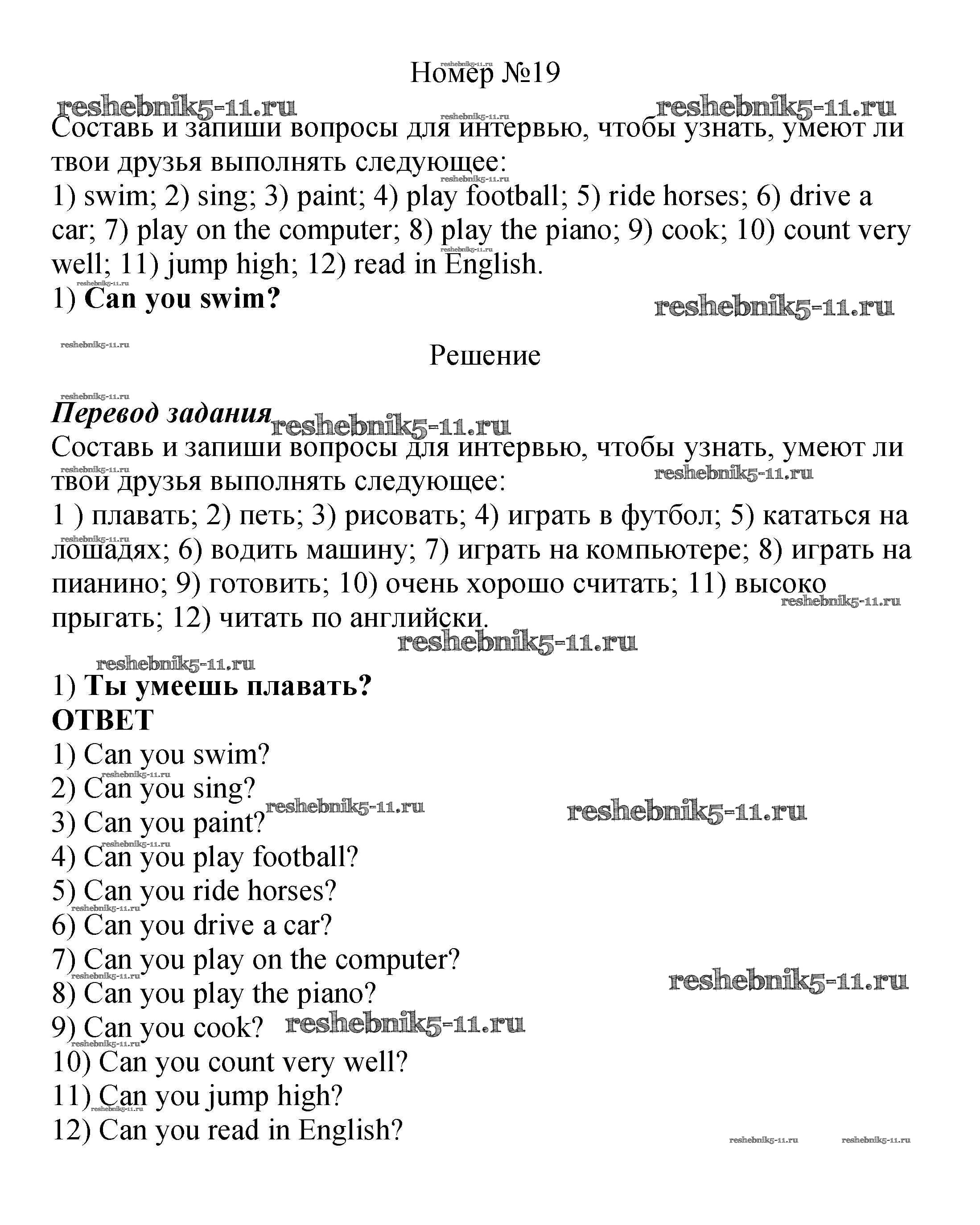 Готовая домашняя работа с ответами по Английскому языку за 6 класс Афанасьева, Михеева Рабочая тетрадь Новый курс Часть 1, 2 Дрофа 2017 ФГОС - Unit 1 19