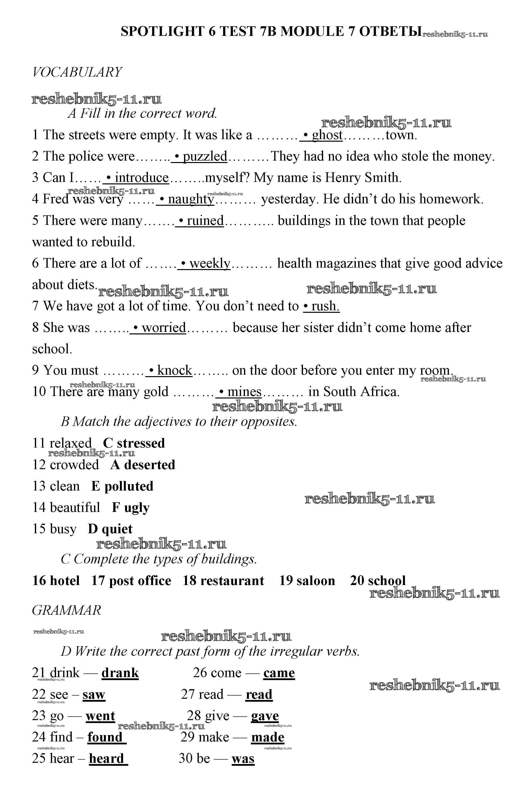 Готовая домашняя работа с ответами по Английскому языку за 6 класс Ваулина, Дули, Подоляко, Эванс Контрольные задания Spotlight Просвещение 2017 ФГОС - Тесты 7В