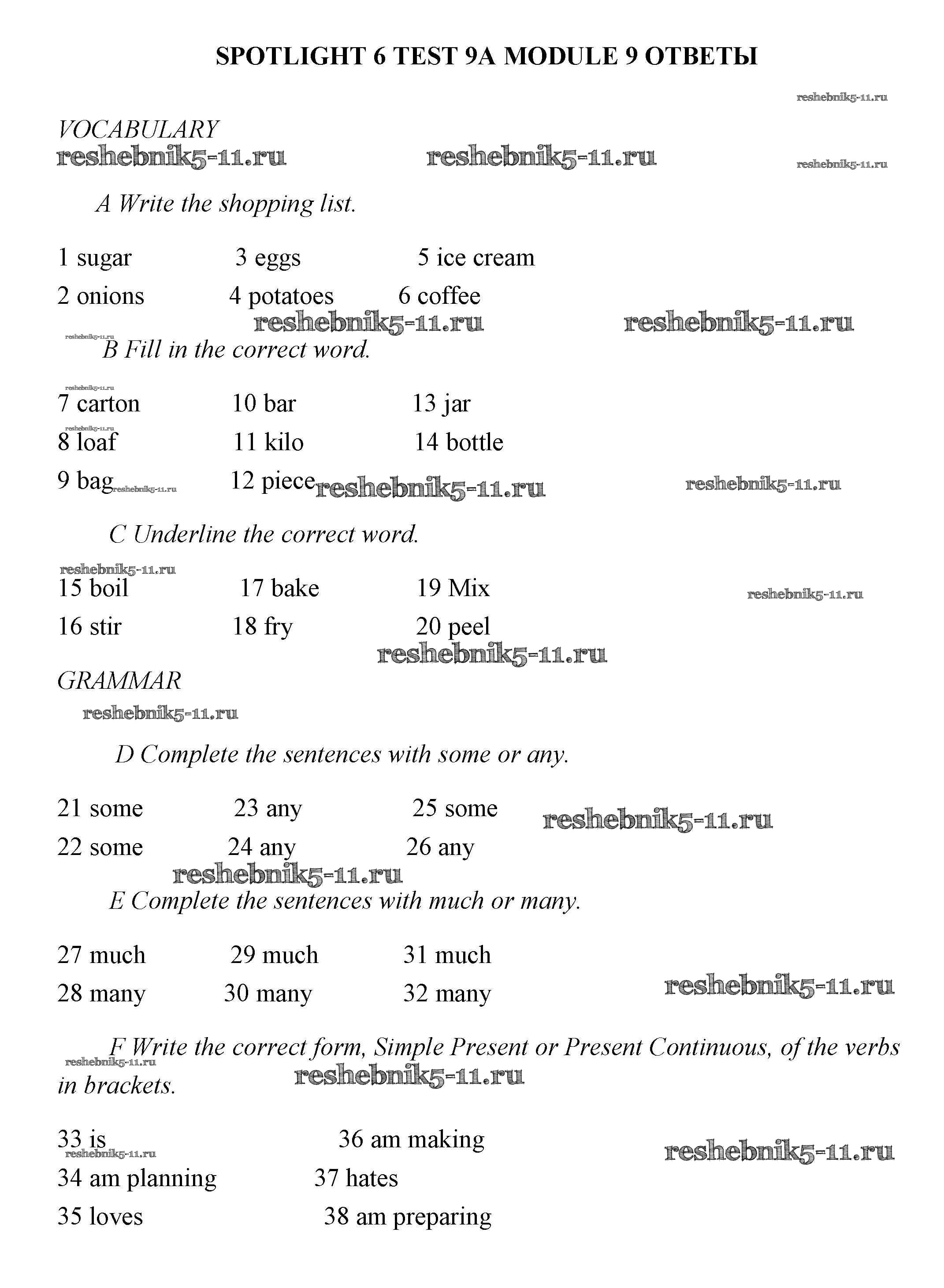 Английский язык за 6 класс Ваулина Контрольные задания Spotlight Просвещение тесты 8В