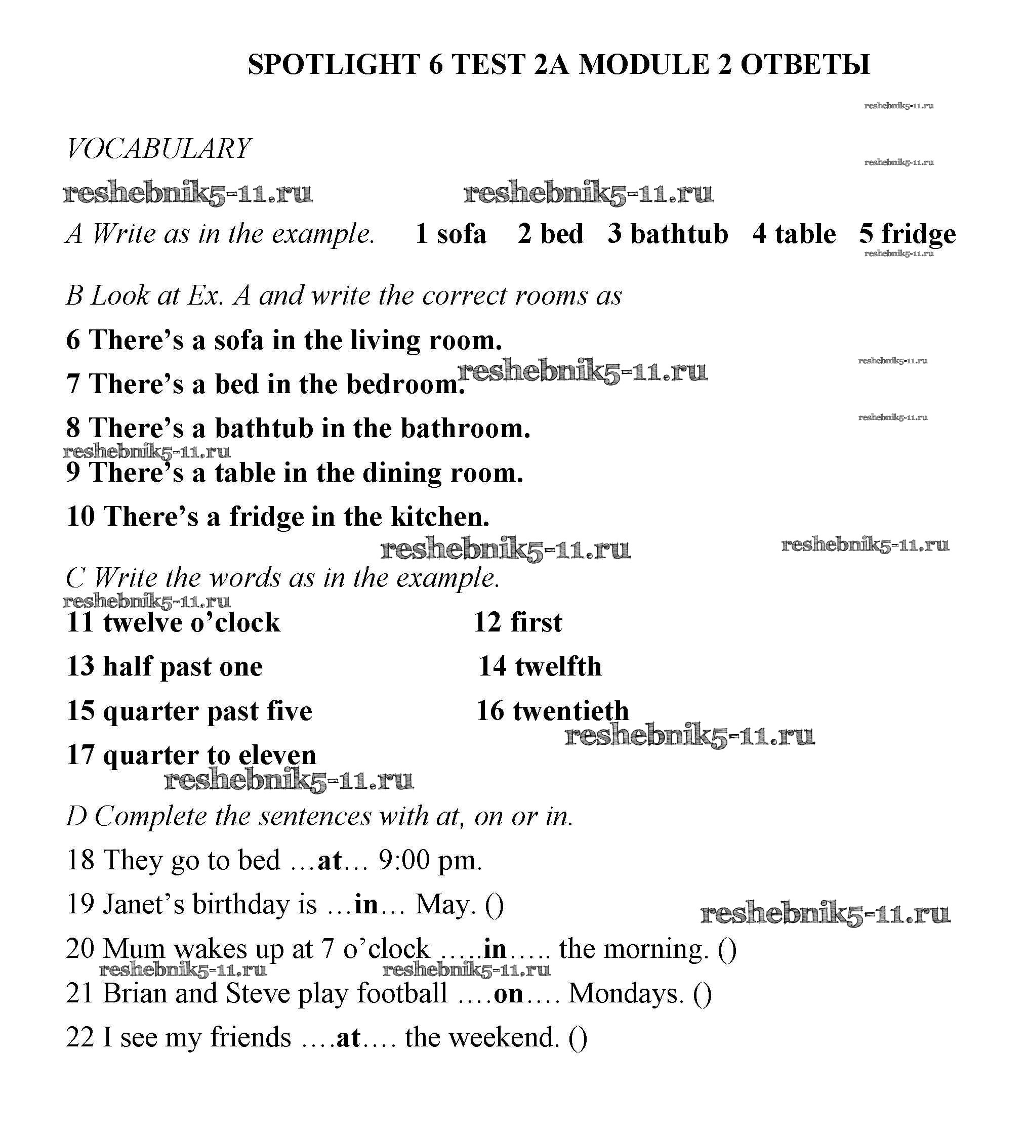 Готовая домашняя работа с ответами по Английскому языку за 6 класс Ваулина, Дули, Подоляко, Эванс Контрольные задания Spotlight Просвещение 2017 ФГОС - Тесты 2А