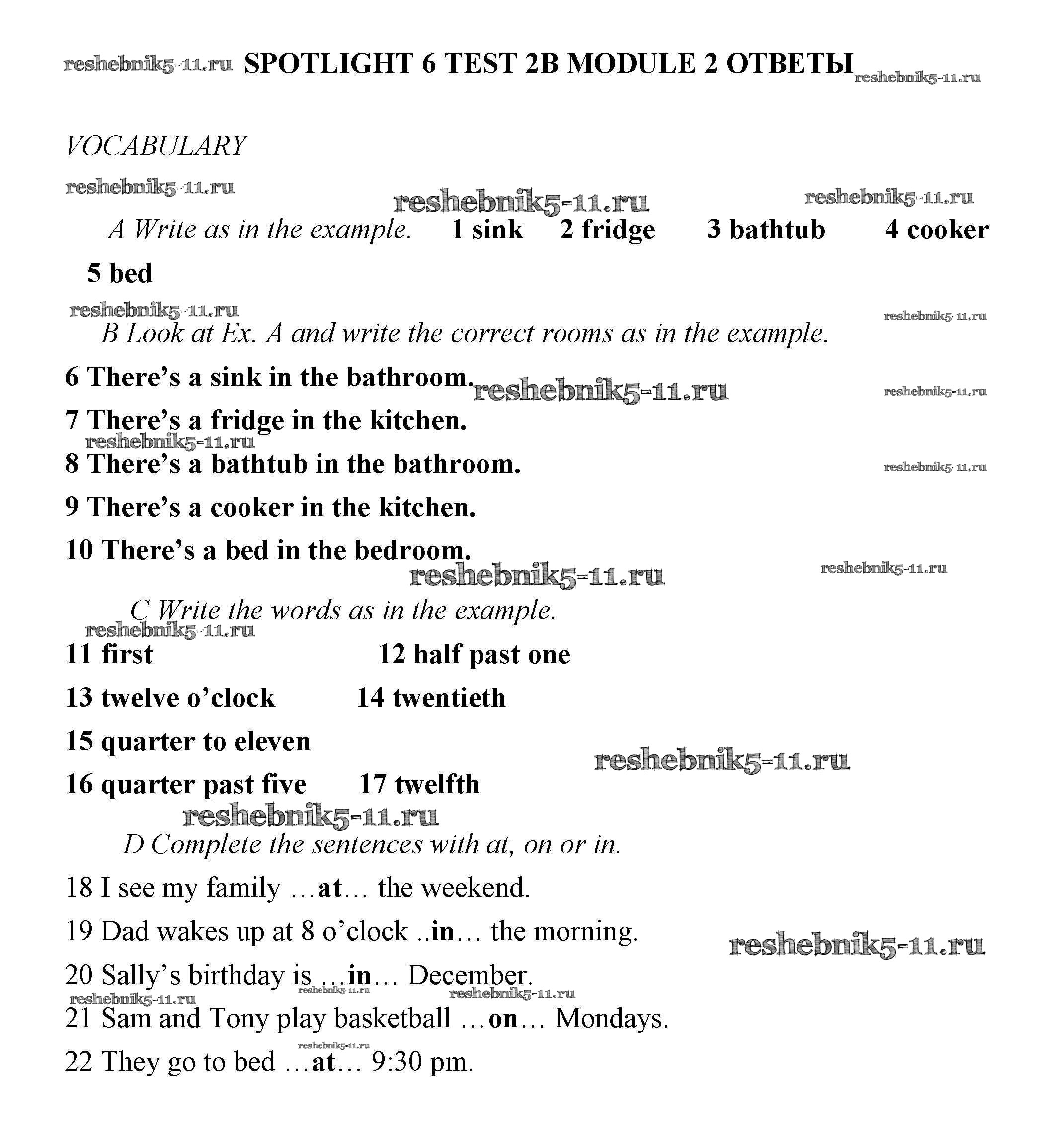 Готовая домашняя работа с ответами по Английскому языку за 6 класс Ваулина, Дули, Подоляко, Эванс Контрольные задания Spotlight Просвещение 2017 ФГОС - Тесты 2В
