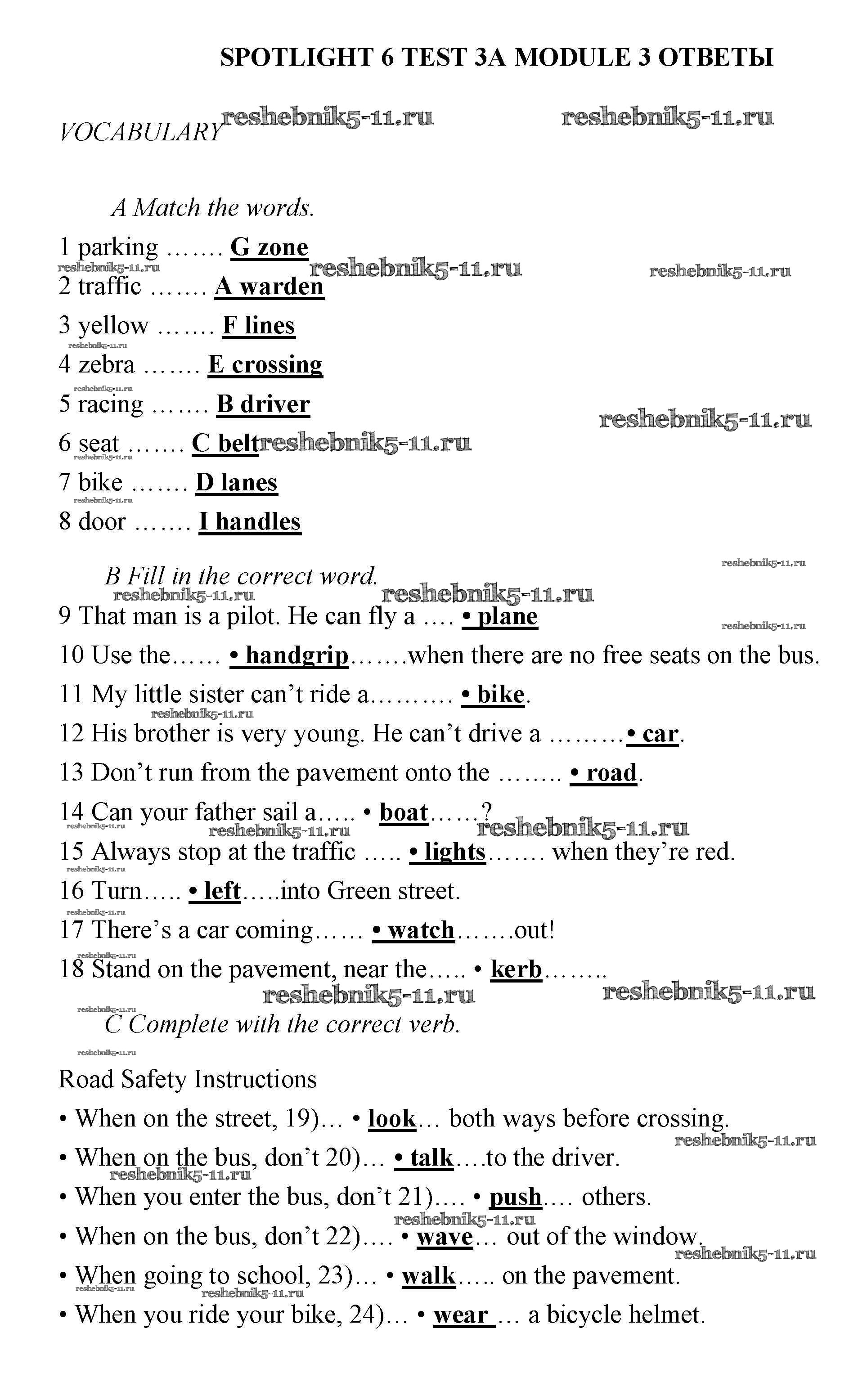 Готовая домашняя работа с ответами по Английскому языку за 6 класс Ваулина, Дули, Подоляко, Эванс Контрольные задания Spotlight Просвещение 2017 ФГОС - Тесты 3А