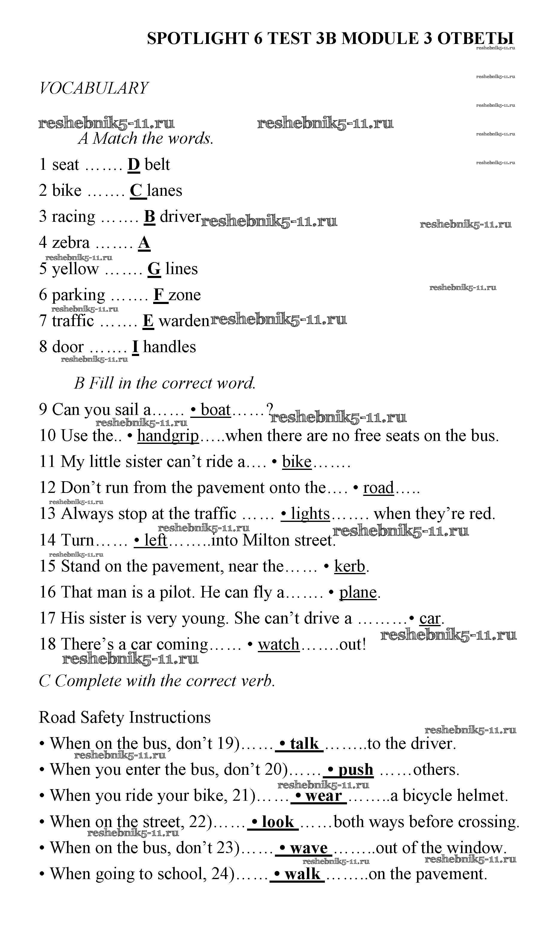 Готовая домашняя работа с ответами по Английскому языку за 6 класс Ваулина, Дули, Подоляко, Эванс Контрольные задания Spotlight Просвещение 2017 ФГОС - Тесты 3В