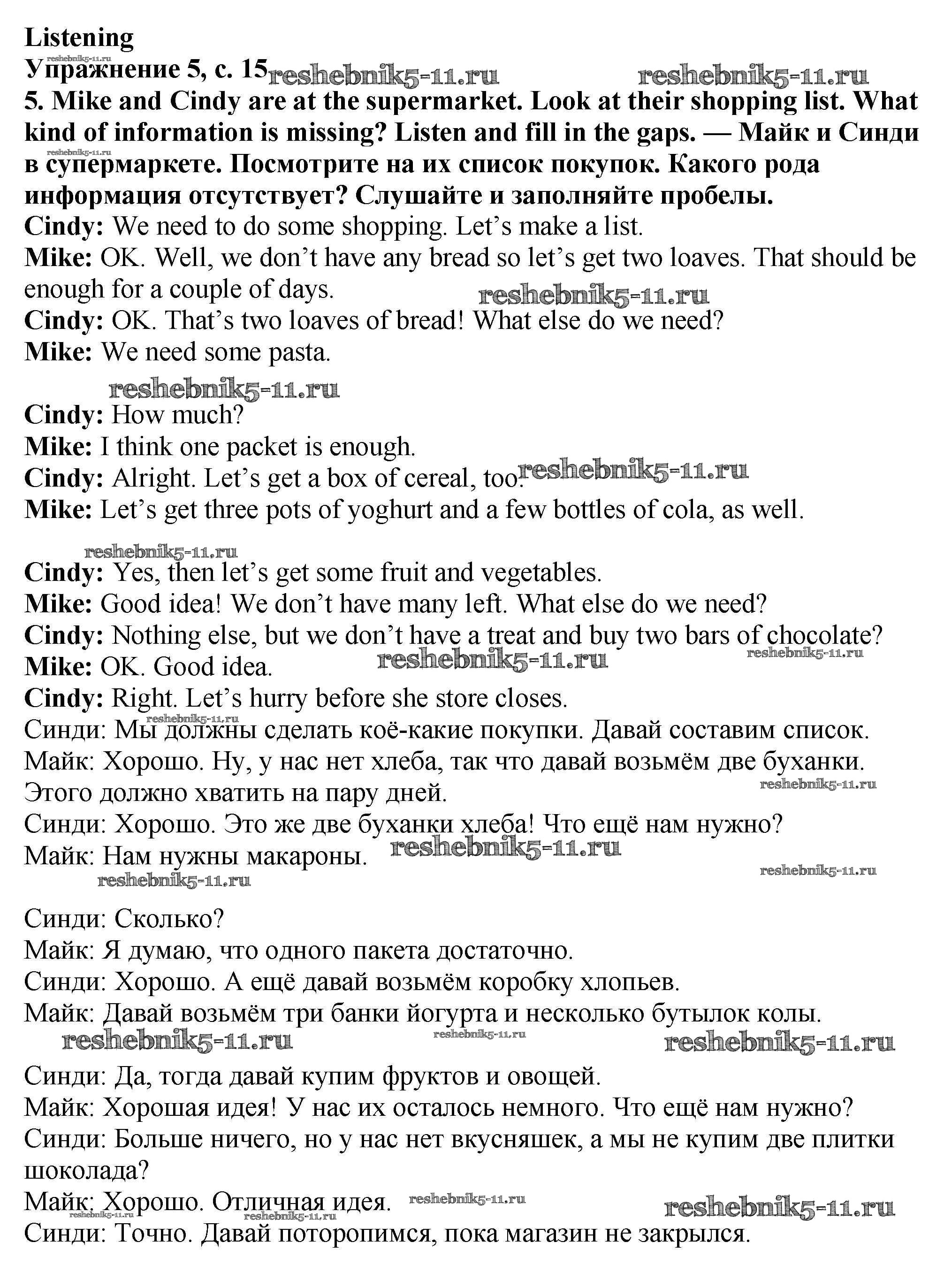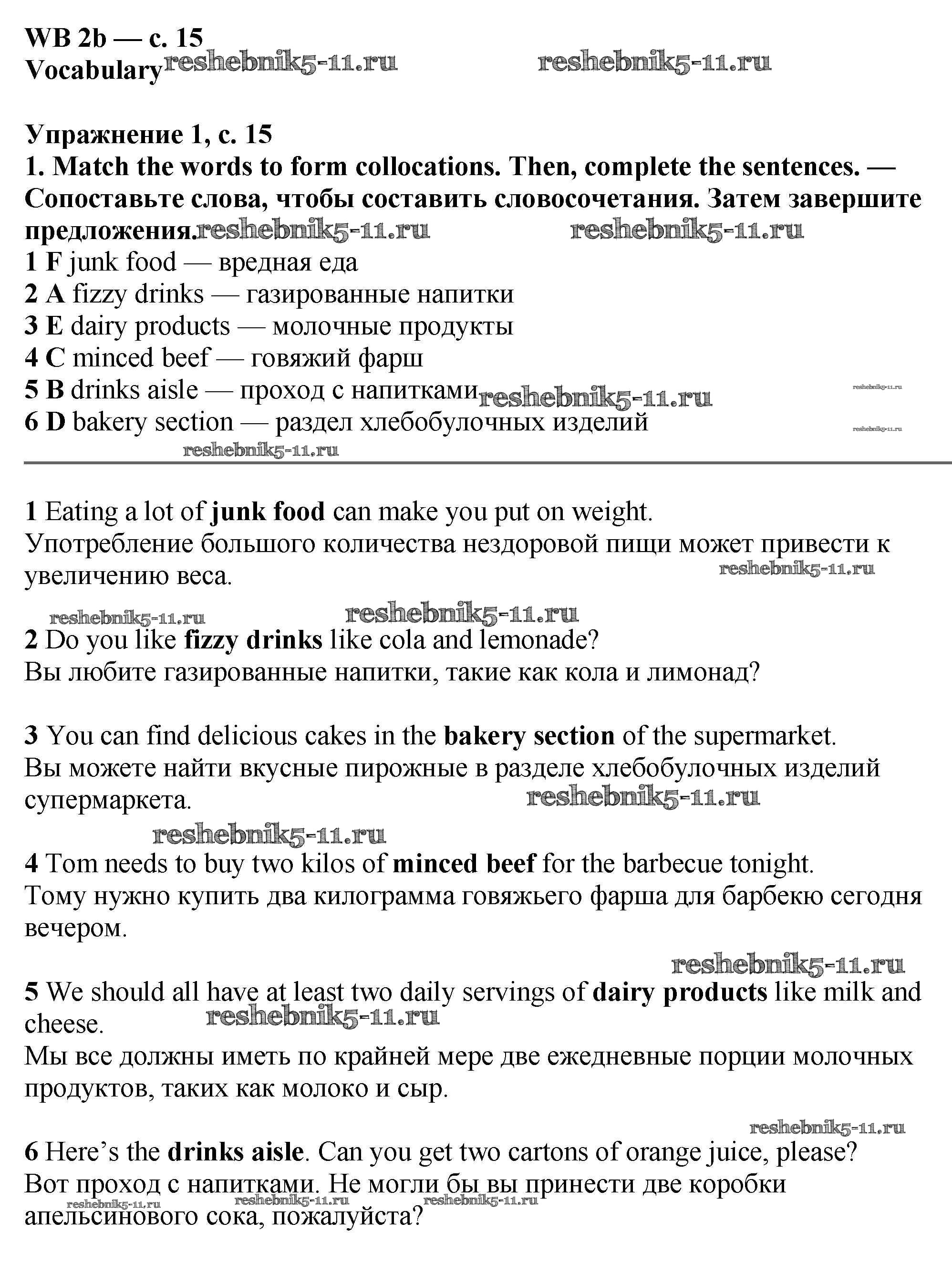 Готовая домашняя работа с ответами по Английскому языку за 6 класс Мильруд, Эванс, Дули, Баранова, Копылова Рабочая тетрадь Starlight Углубленный уровень Просвещение 2020 ФГОС - Страницы 15