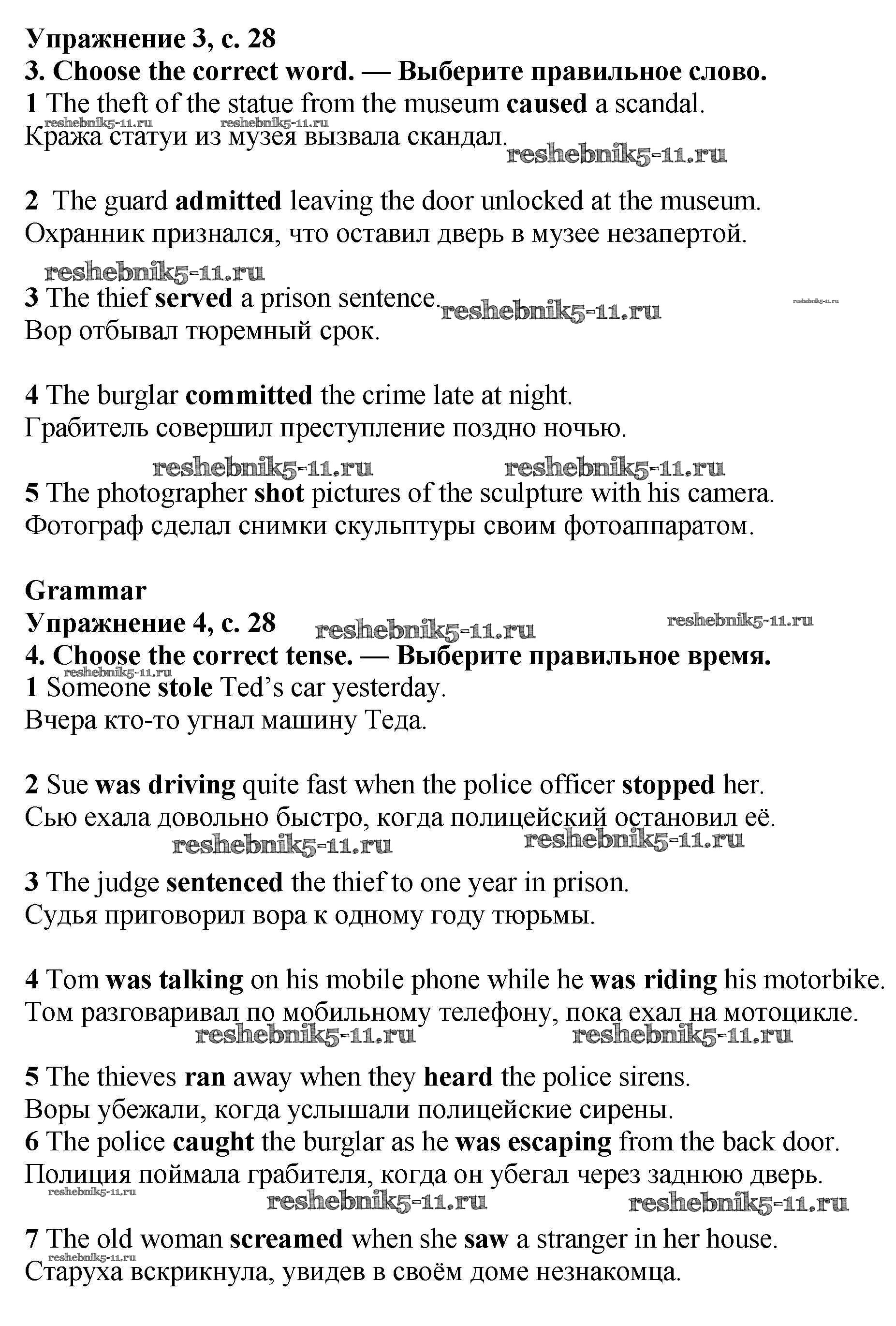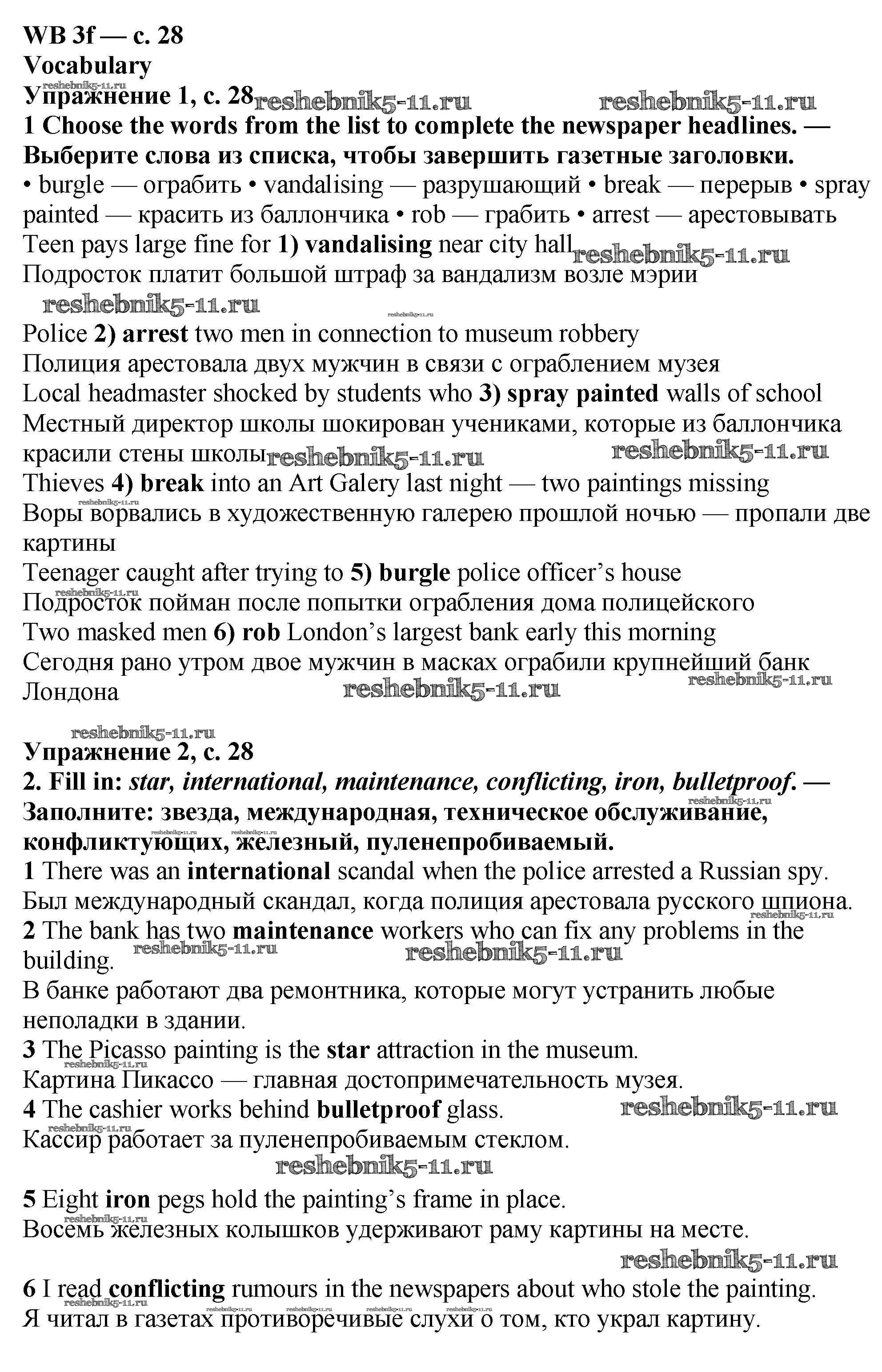 Готовая домашняя работа с ответами по Английскому языку за 6 класс Мильруд, Эванс, Дули, Баранова, Копылова Рабочая тетрадь Starlight Углубленный уровень Просвещение 2020 ФГОС - Страницы 28