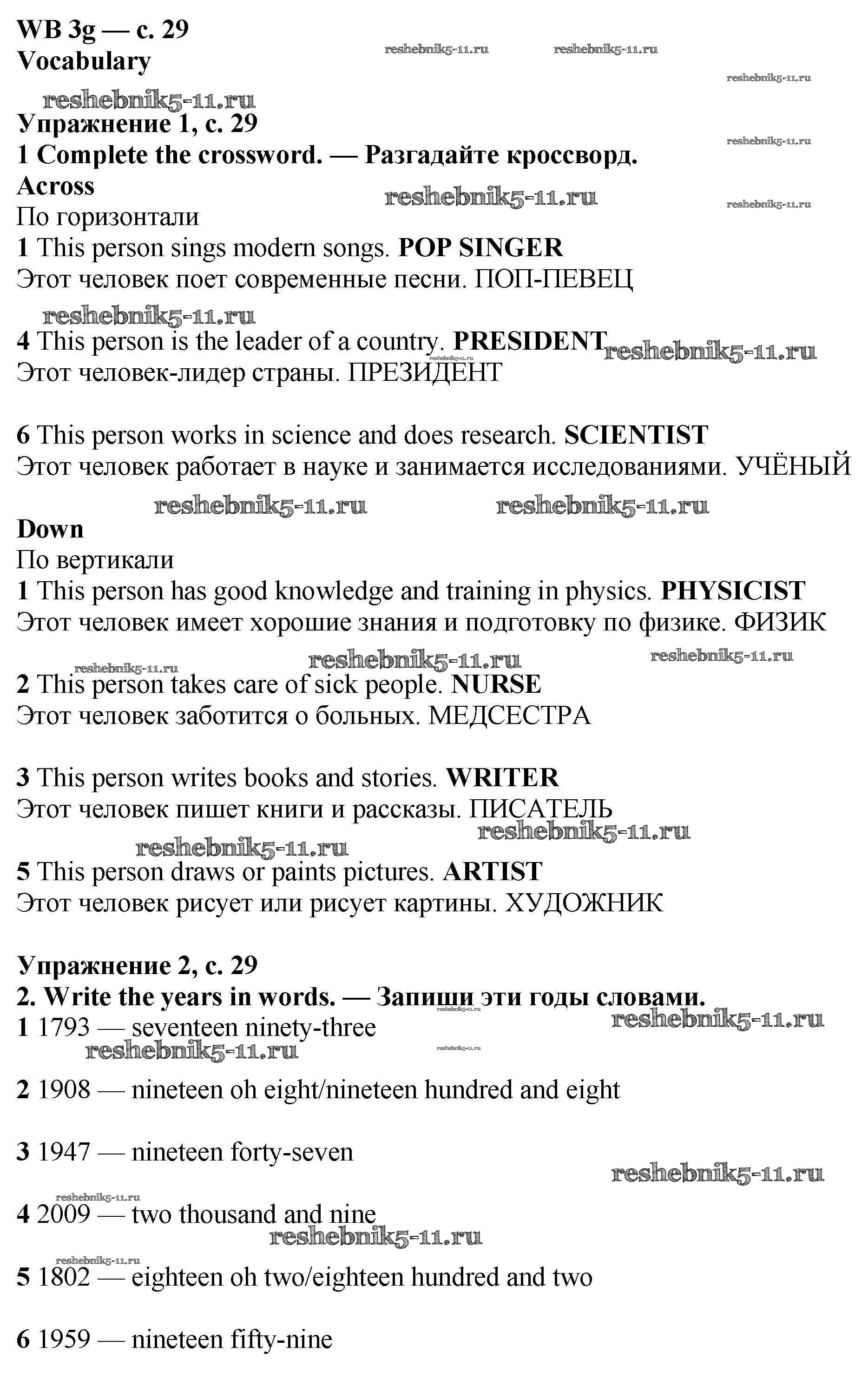 Готовая домашняя работа с ответами по Английскому языку за 6 класс Мильруд, Эванс, Дули, Баранова, Копылова Рабочая тетрадь Starlight Углубленный уровень Просвещение 2020 ФГОС - Страницы 29