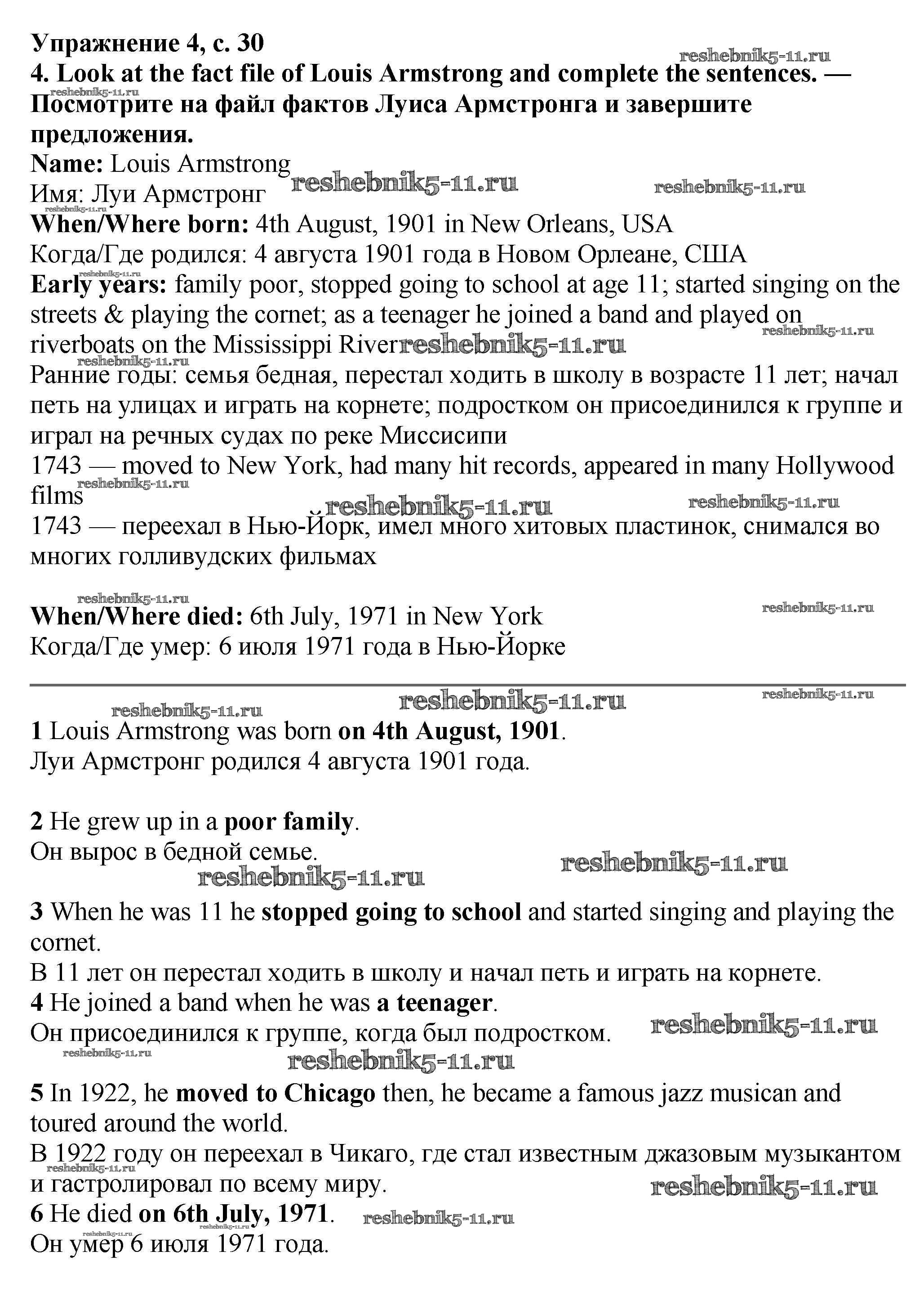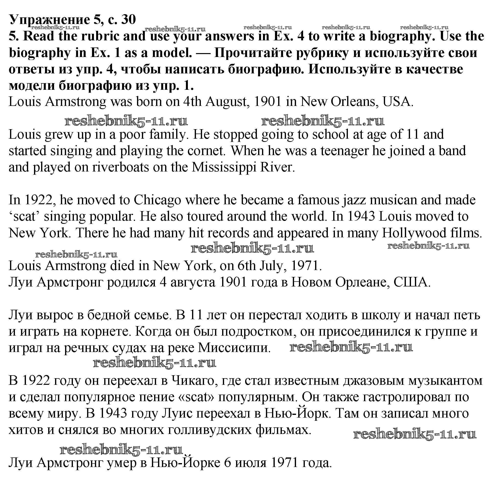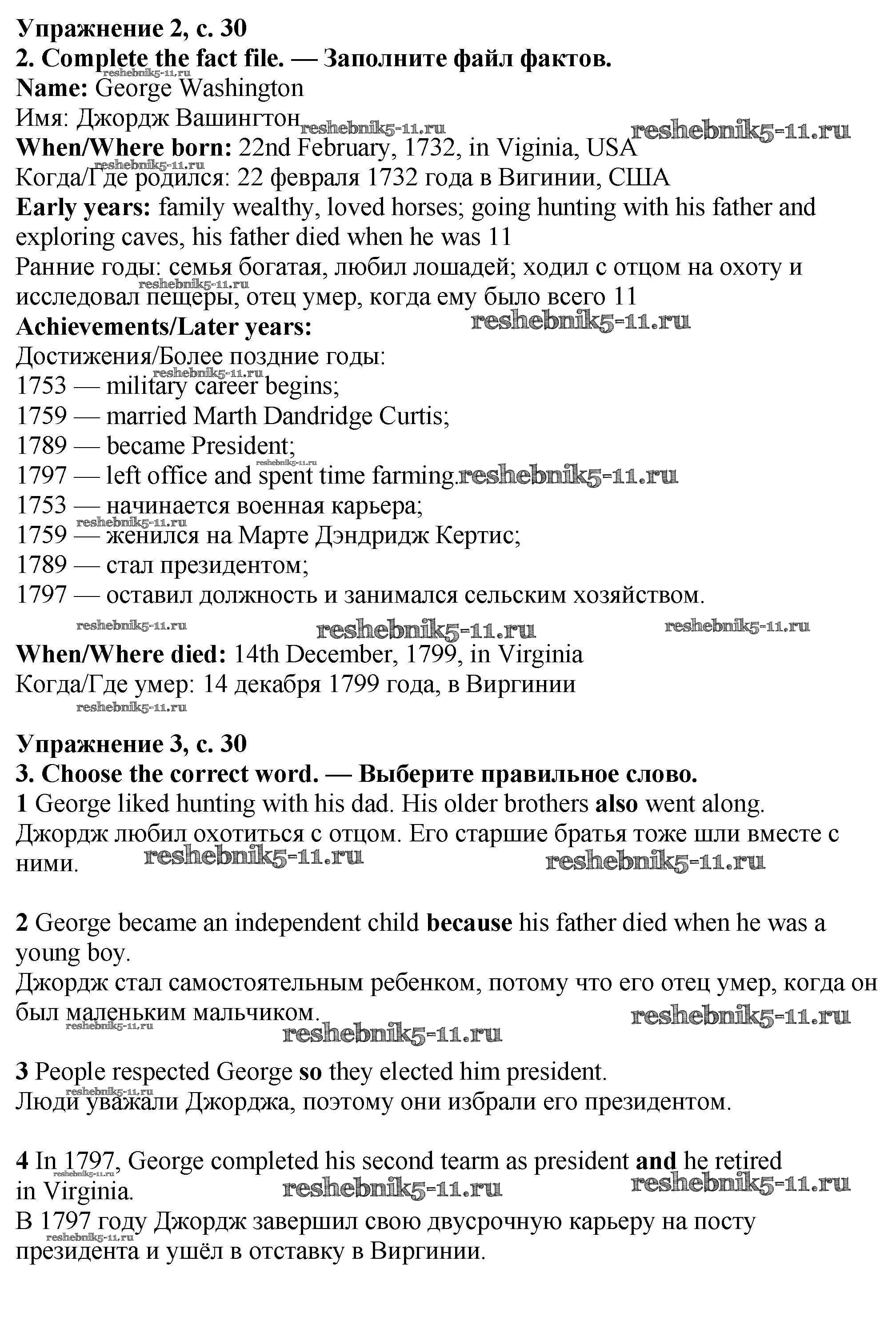 Готовая домашняя работа с ответами по Английскому языку за 6 класс Мильруд, Эванс, Дули, Баранова, Копылова Рабочая тетрадь Starlight Углубленный уровень Просвещение 2020 ФГОС - Страницы 30