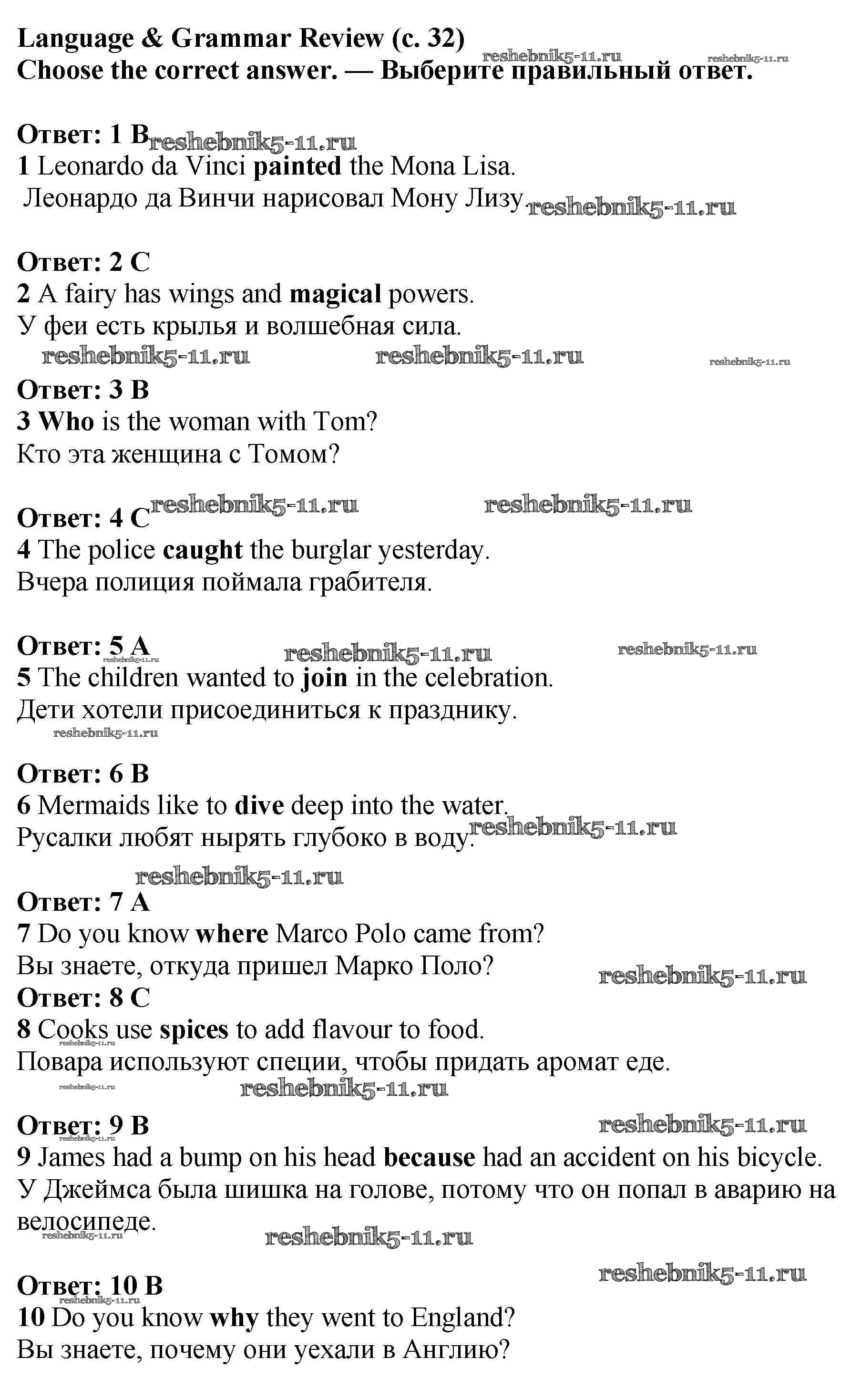 Готовая домашняя работа с ответами по Английскому языку за 6 класс Мильруд, Эванс, Дули, Баранова, Копылова Рабочая тетрадь Starlight Углубленный уровень Просвещение 2020 ФГОС - Страницы 32